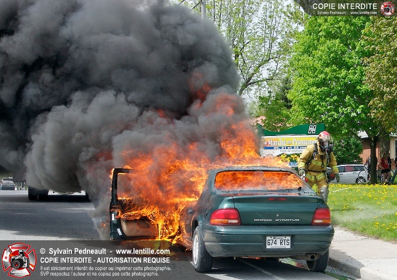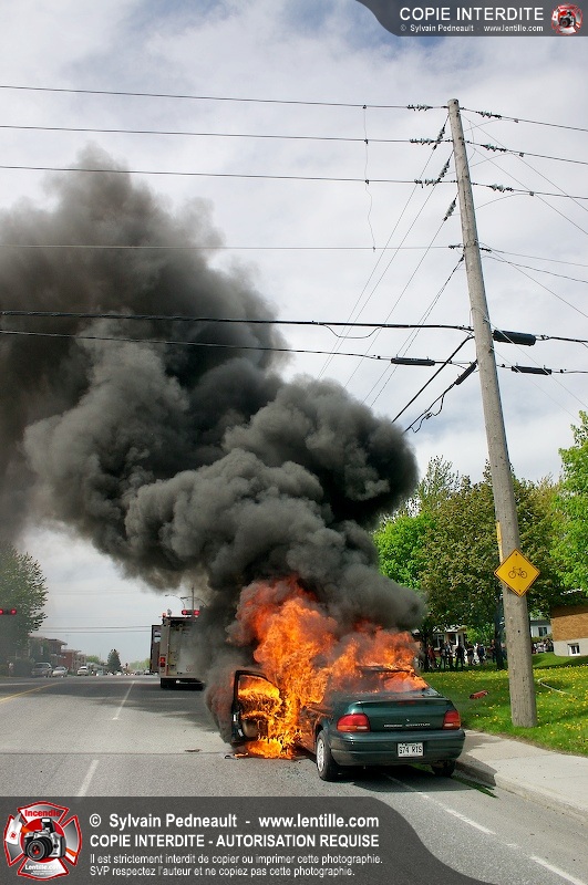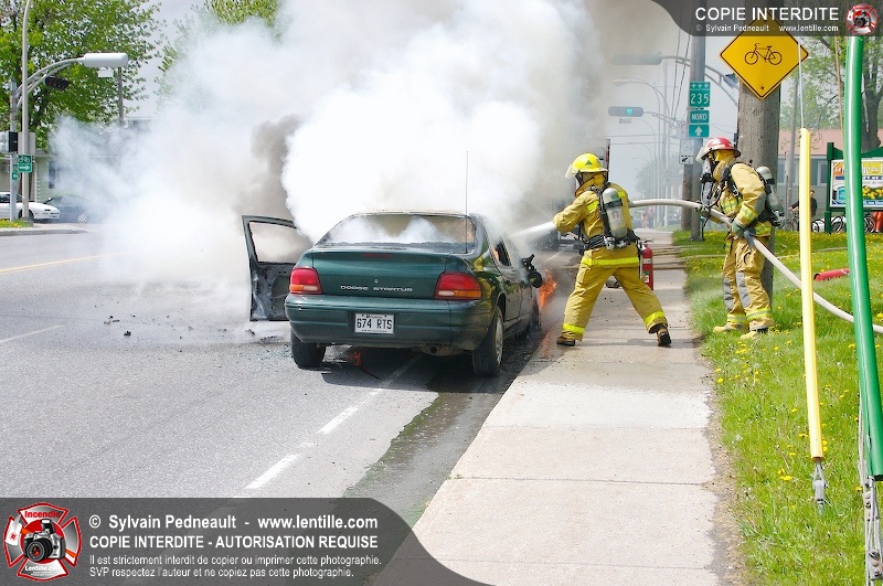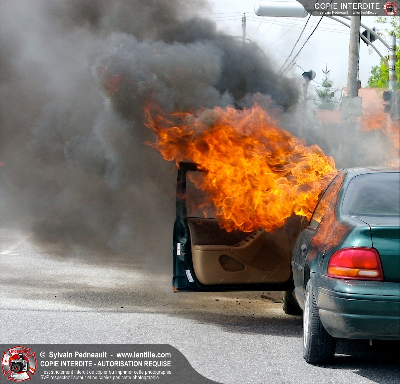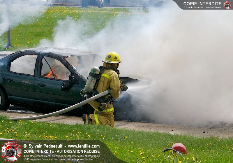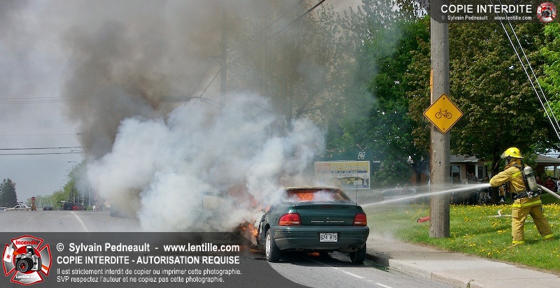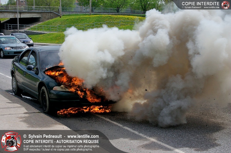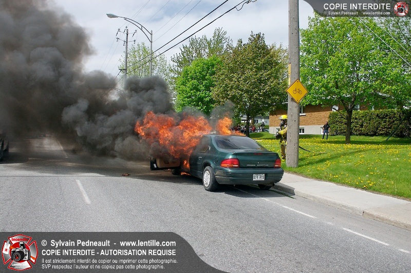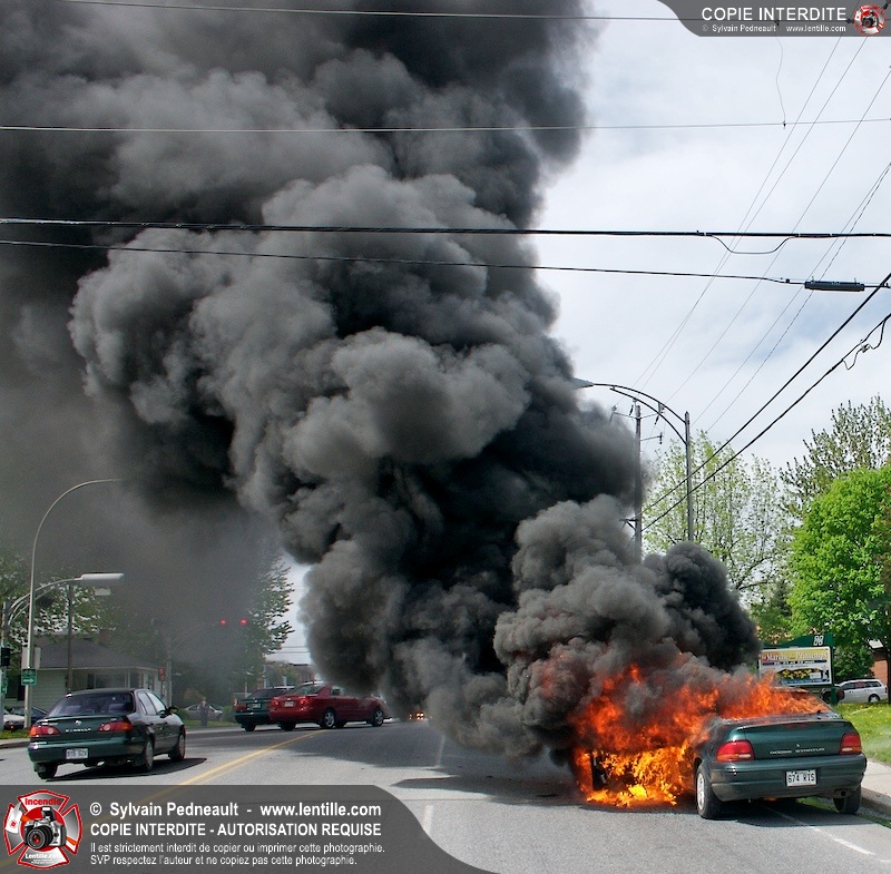 Un incendie a complètement détruit une automobile sur le boulevard Choquette à Saint-Hyacinthe. À l'arrivée des pompiers, les flammes envahissaient déjà l'habitacle.
