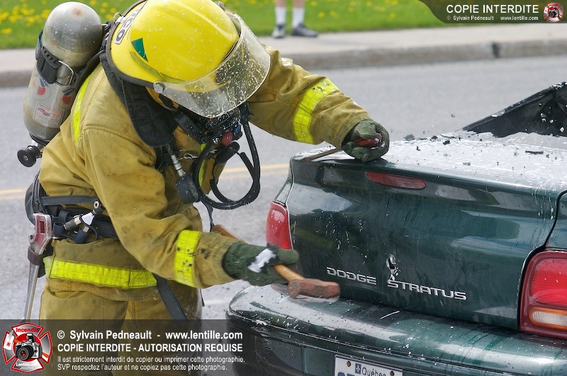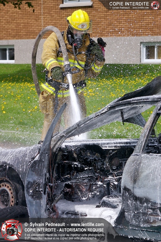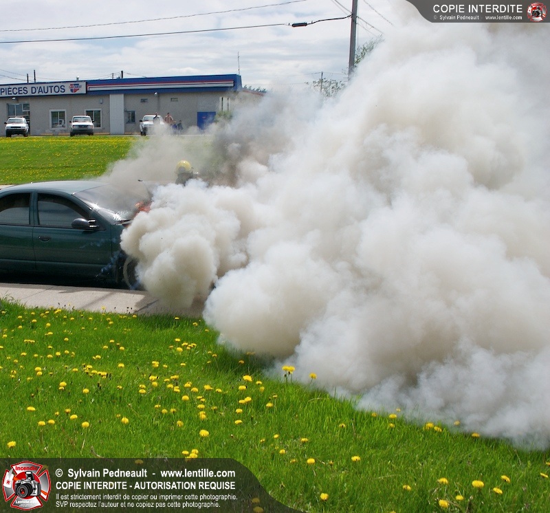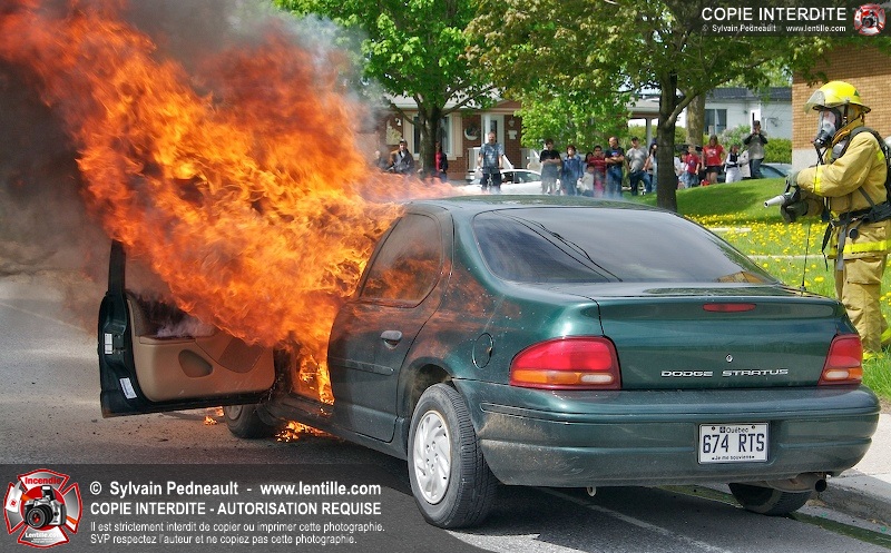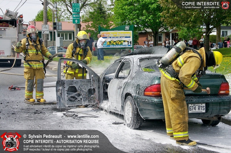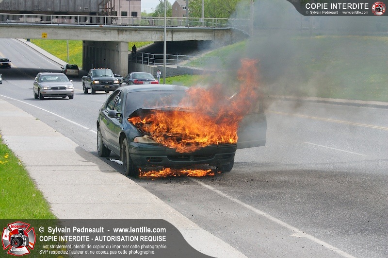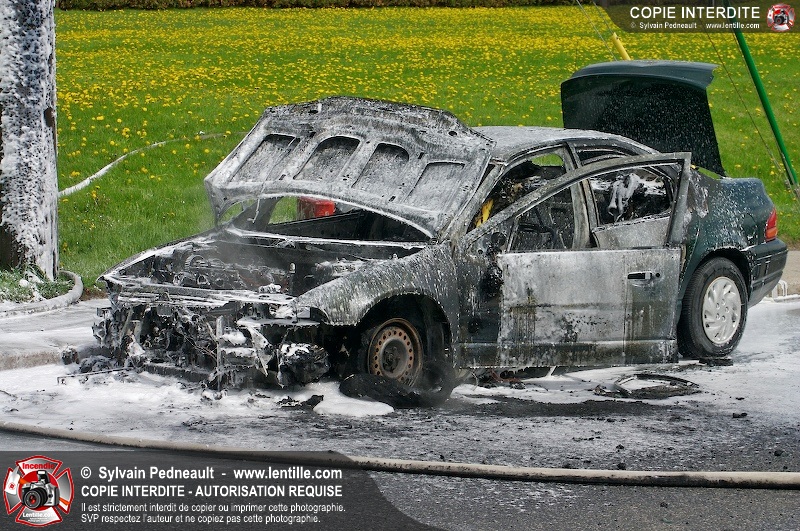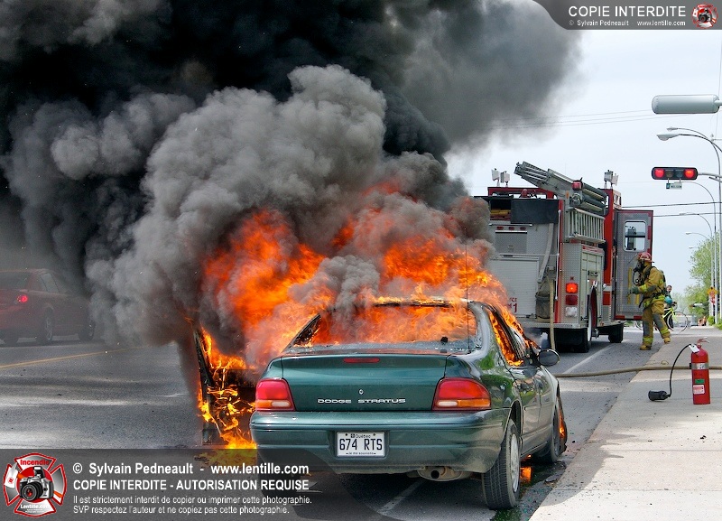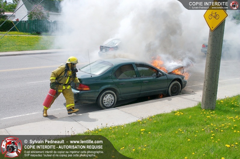 Un incendie a complètement détruit une automobile sur le boulevard Choquette à Saint-Hyacinthe. À l'arrivée des pompiers, les flammes envahissaient déjà l'habitacle.