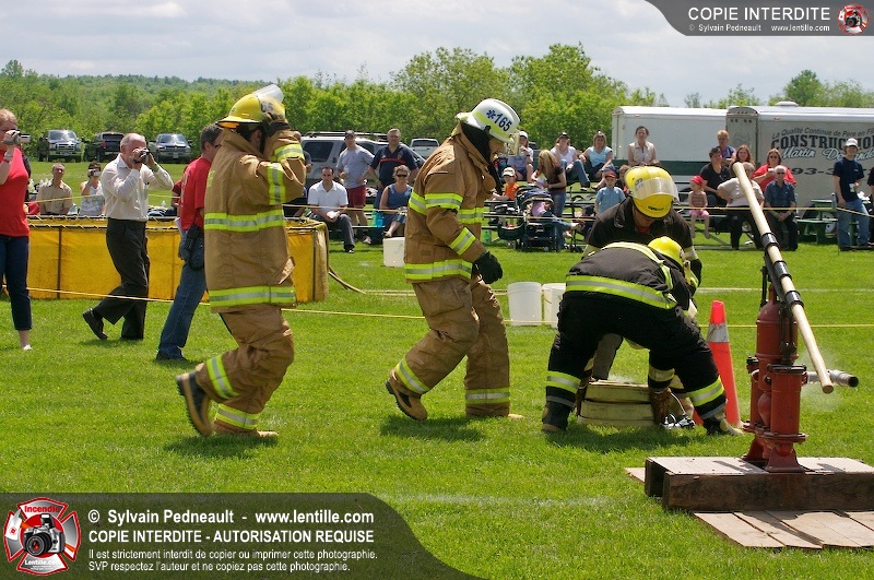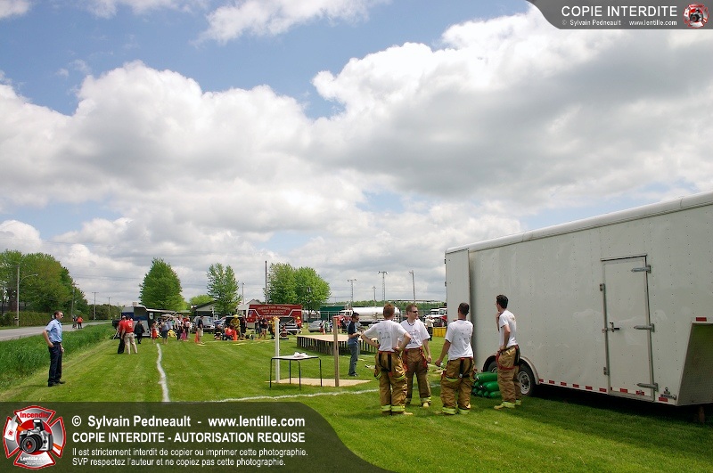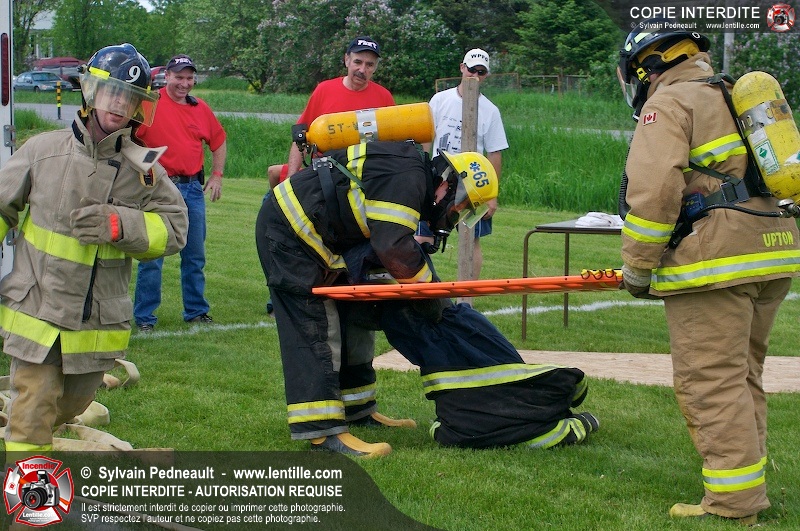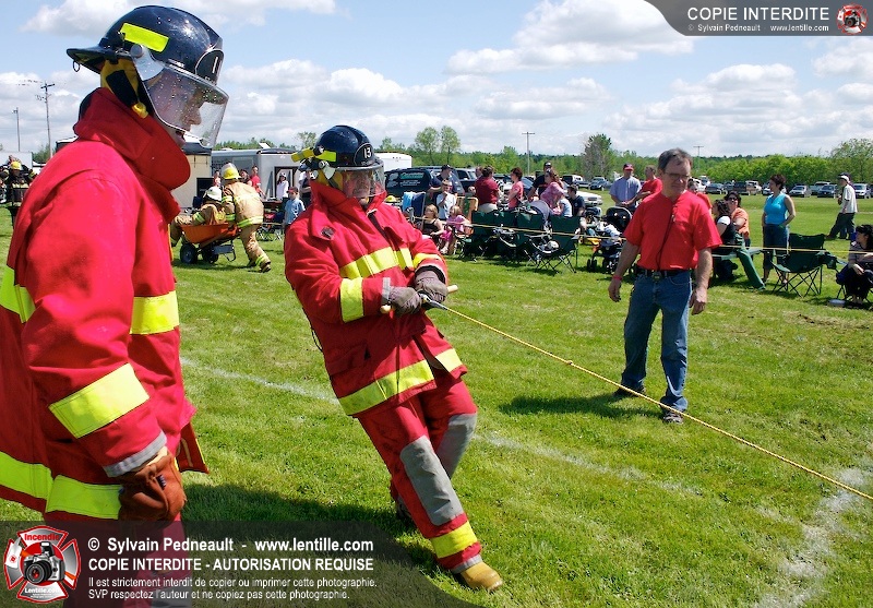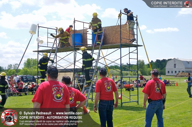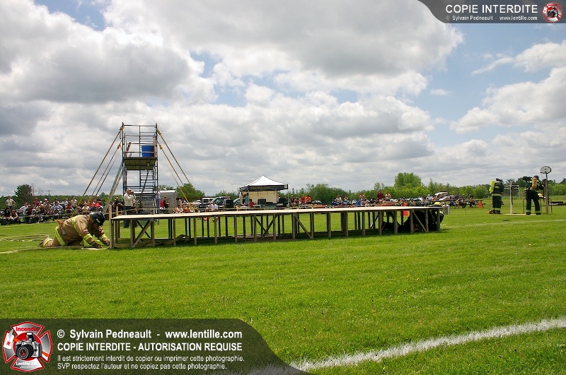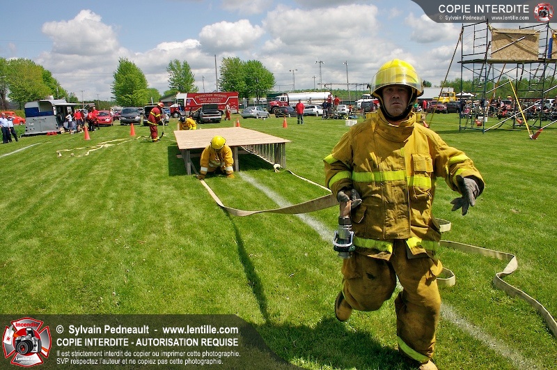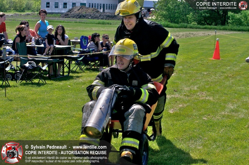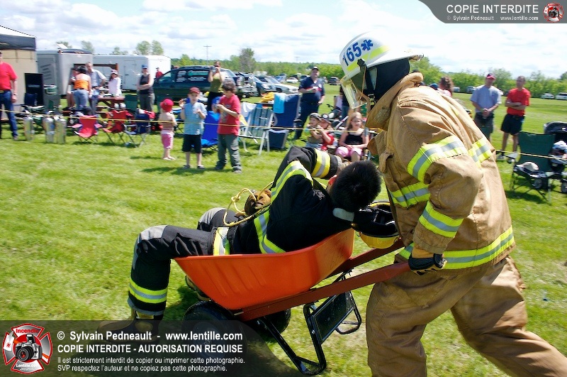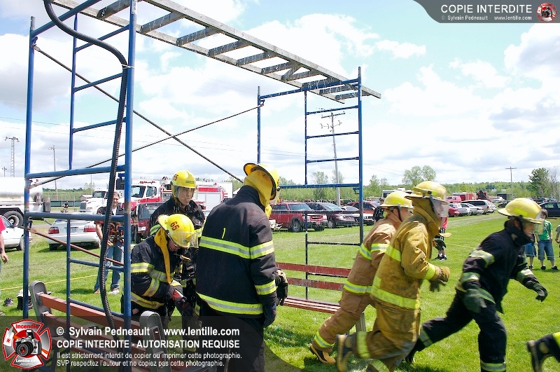 L'événement qui s'est déroulé sous un magnifique soleil a été un véritable succès. En tout, dix équipes de pompiers se sont affrontées dans divers parcours d'habileté et d'endurance, dont une difficile épreuve de recherche et sauvetage dans une remorque-labyrinthe-de-3-étages construite sur mesure pour l'événement.