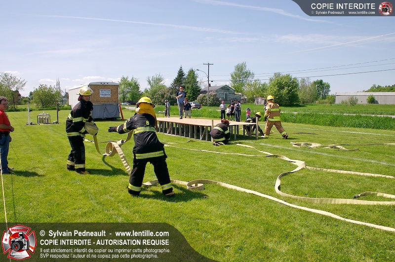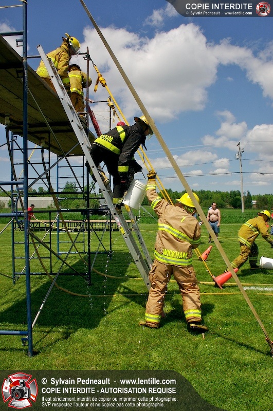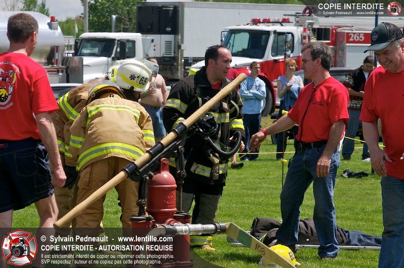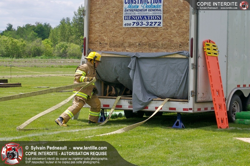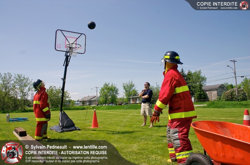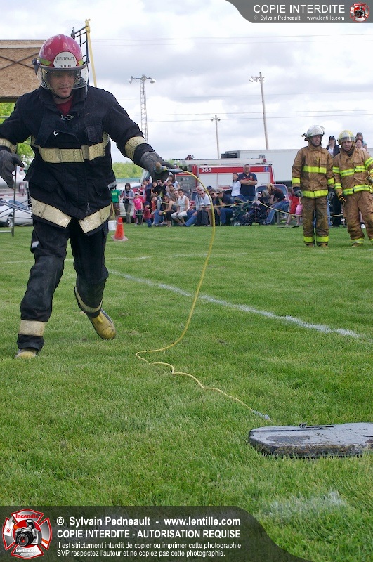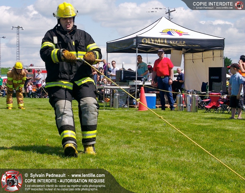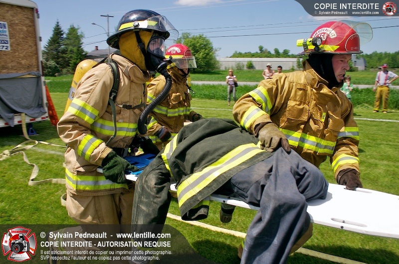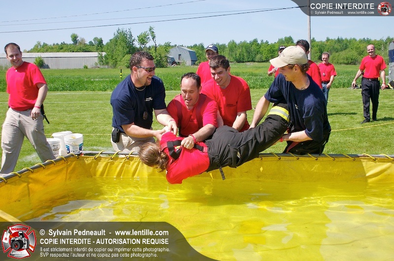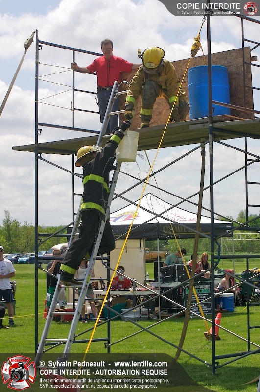 L'événement qui s'est déroulé sous un magnifique soleil a été un véritable succès. En tout, dix équipes de pompiers se sont affrontées dans divers parcours d'habileté et d'endurance, dont une difficile épreuve de recherche et sauvetage dans une remorque-labyrinthe-de-3-étages construite sur mesure pour l'événement.