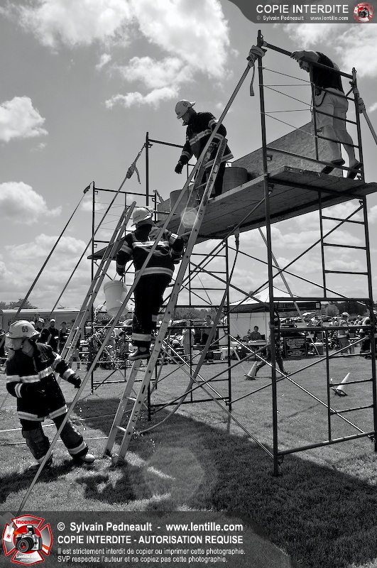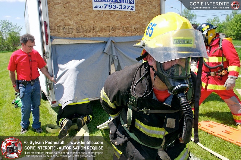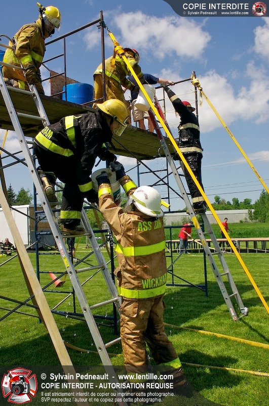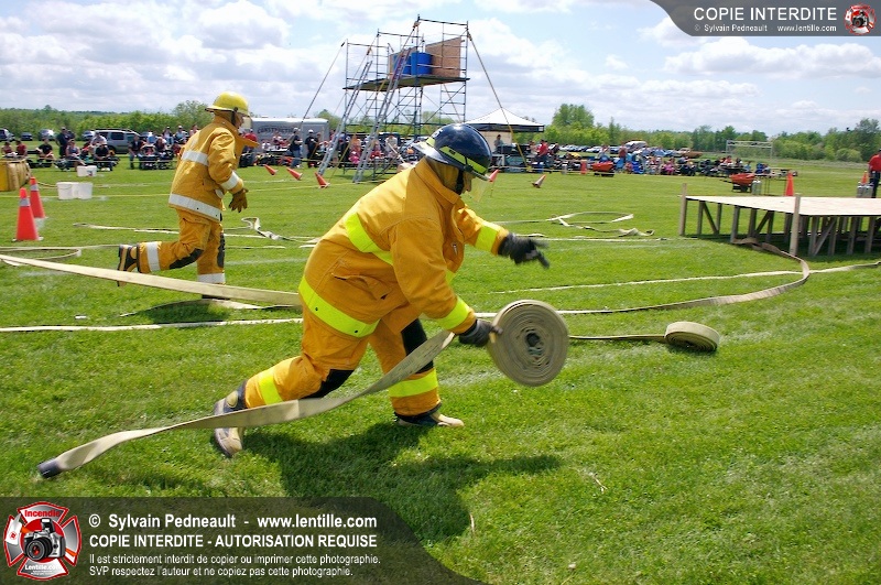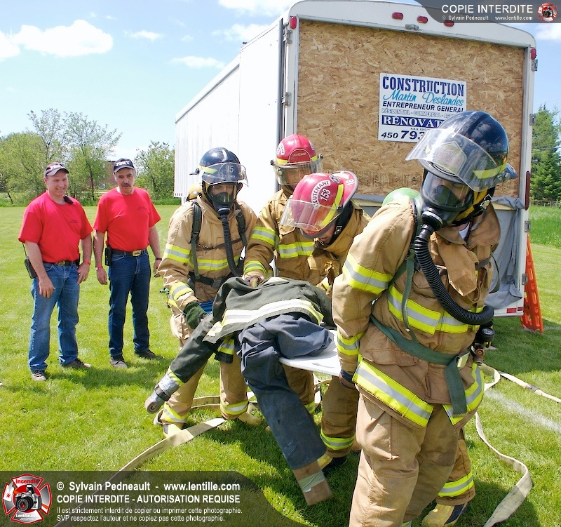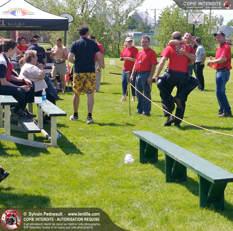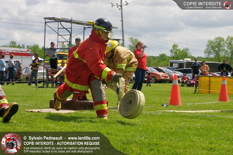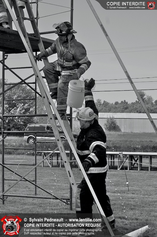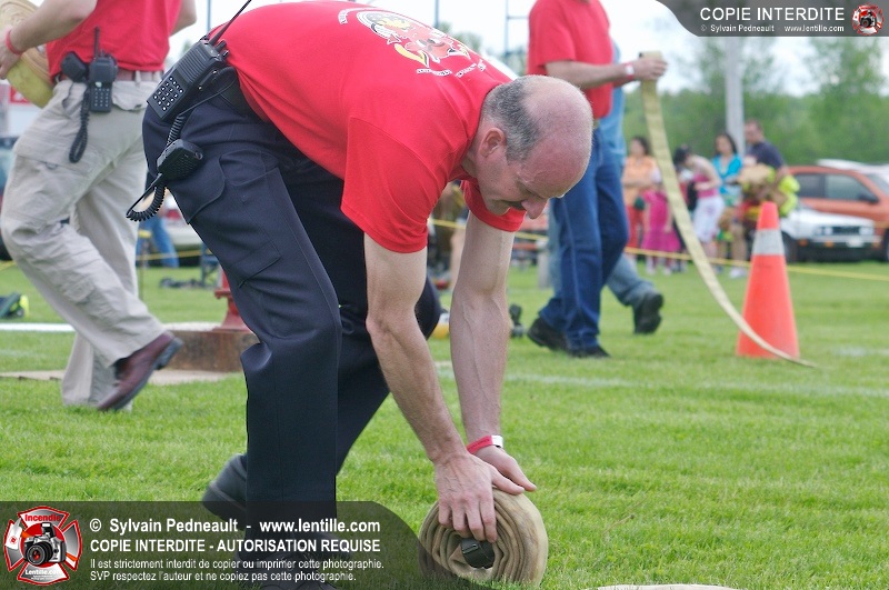 L'événement qui s'est déroulé sous un magnifique soleil a été un véritable succès. En tout, dix équipes de pompiers se sont affrontées dans divers parcours d'habileté et d'endurance, dont une difficile épreuve de recherche et sauvetage dans une remorque-labyrinthe-de-3-étages construite sur mesure pour l'événement.