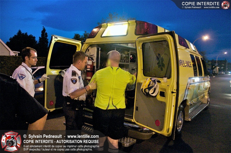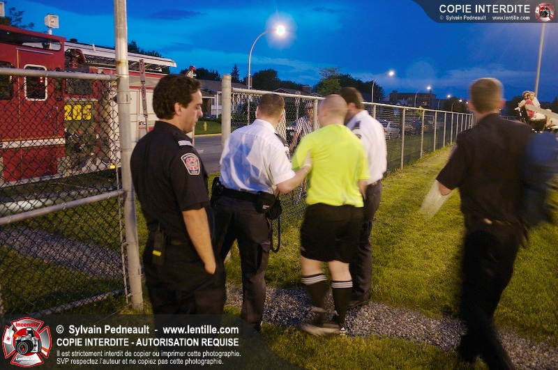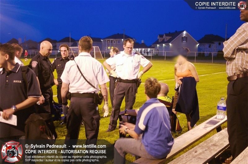 Des citoyens ont intercepté le 205 sur la route pour signaler qu'un homme venait de perdre conscience sur un terrain de soccer. Les pompiers ont aussitôt porté assistance à l'individu et appelé les paramédics, lesquels sont arrivés quelques minutes plus tard pour prendre la personne en charge.
