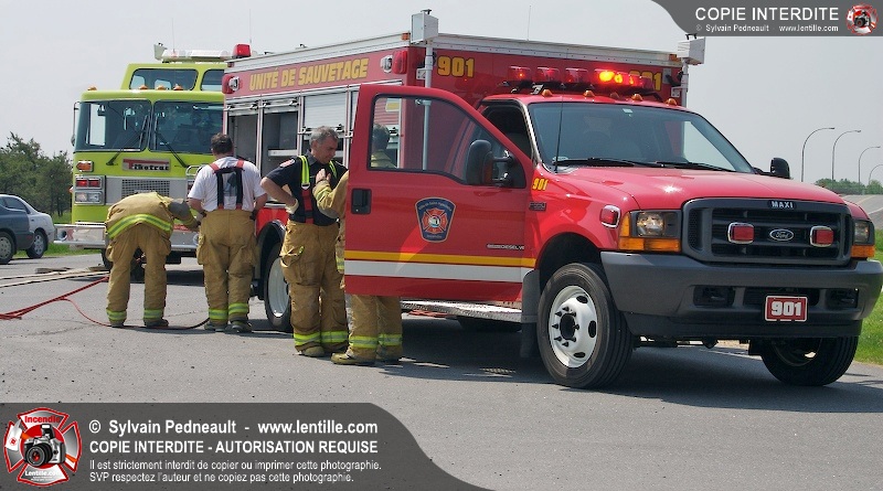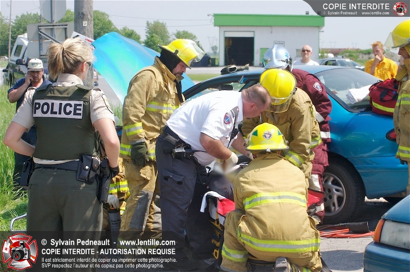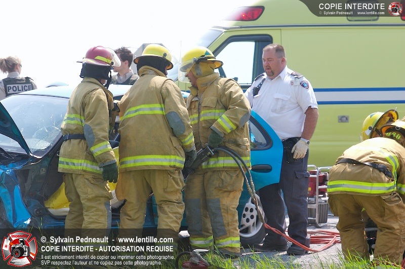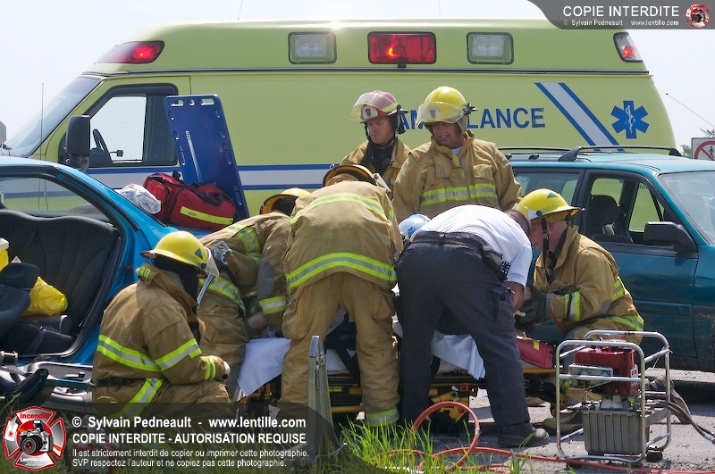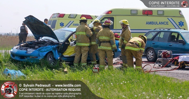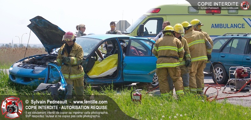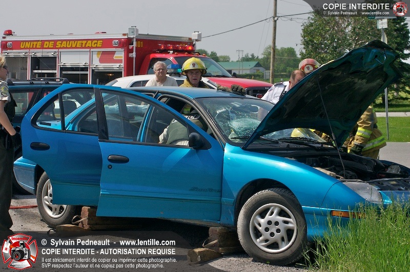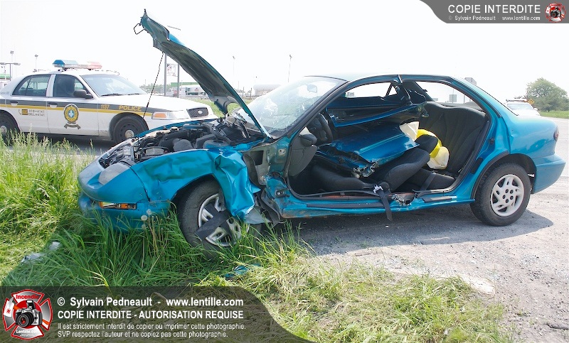 Une collision entre deux véhicules a nécessité l'intervention de l'unité de désincarcération du service de sécurité incendie de Saint-Hyacinthe, ainsi que des paramédics d'Ambulances Saint-Hyacinthe et des policiers de la Sûreté du Québec.