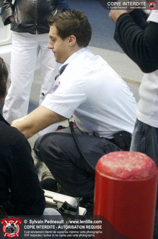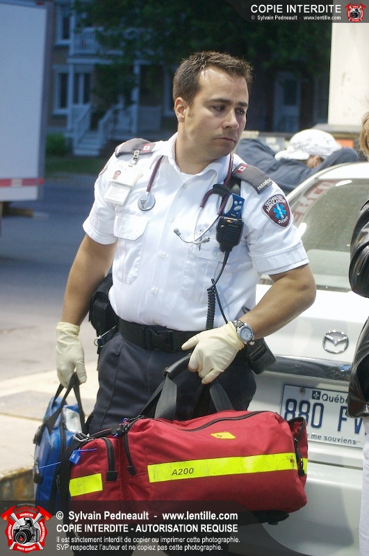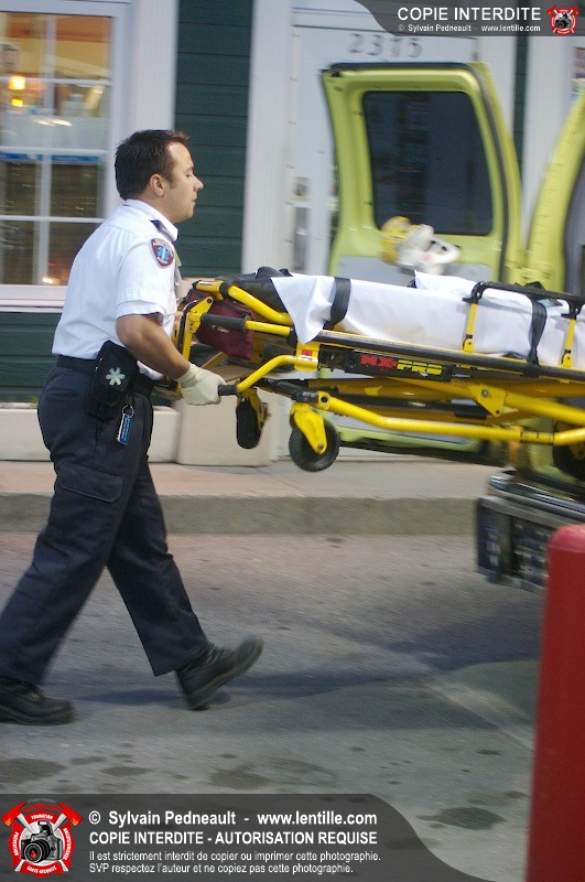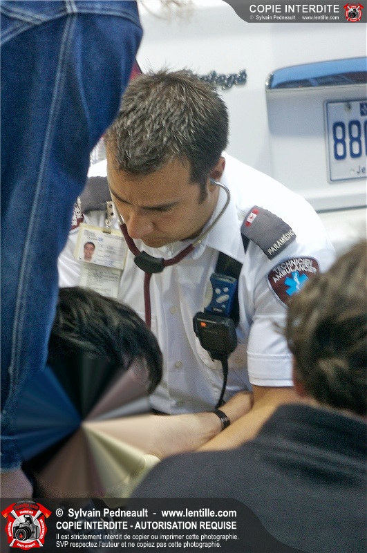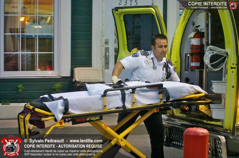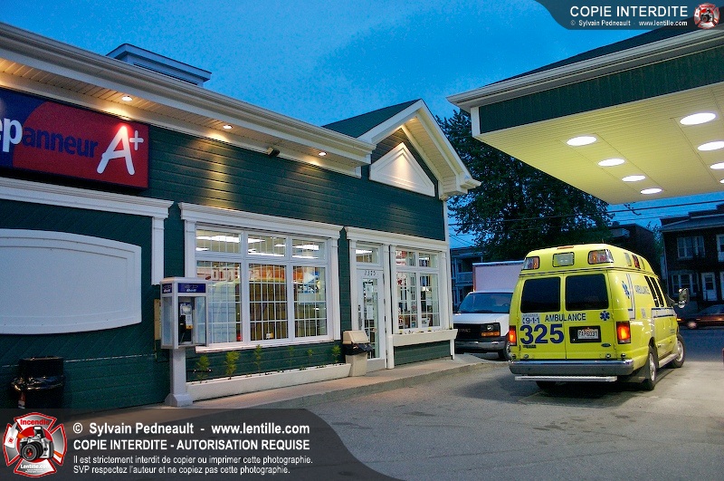 Les paramédics d'Ambulances Saint-Hyacinthe ont répondu en urgence dans une station service pour un homme qui s'est affessé derrière un véhicule.