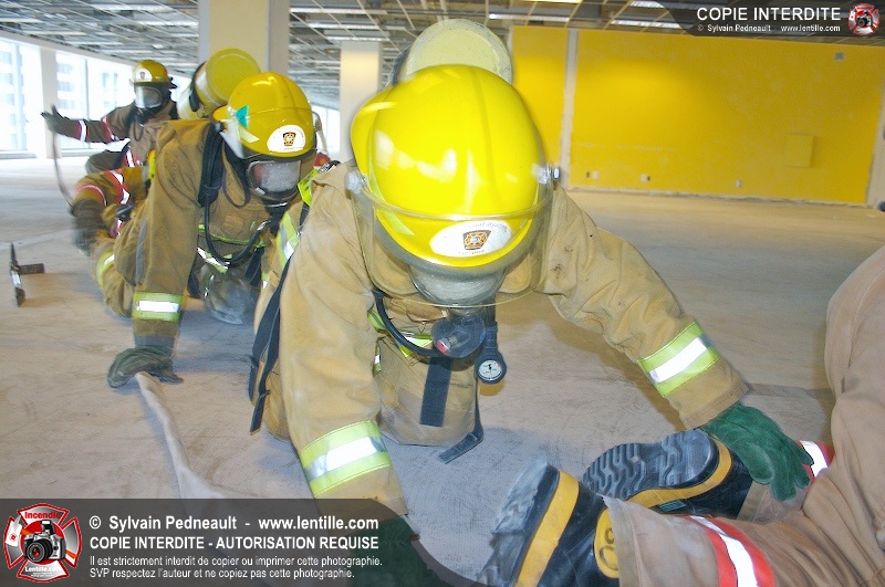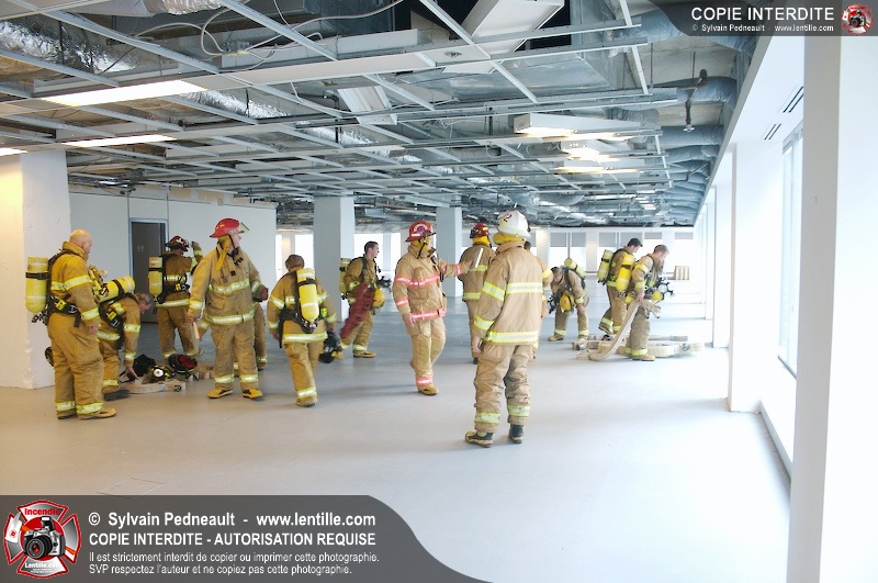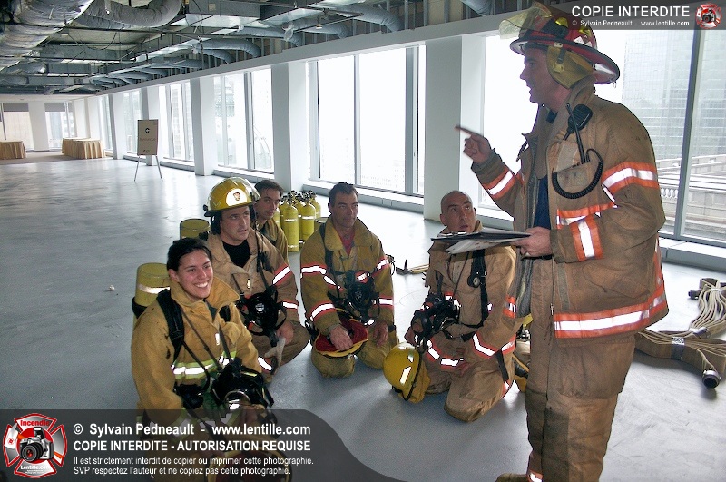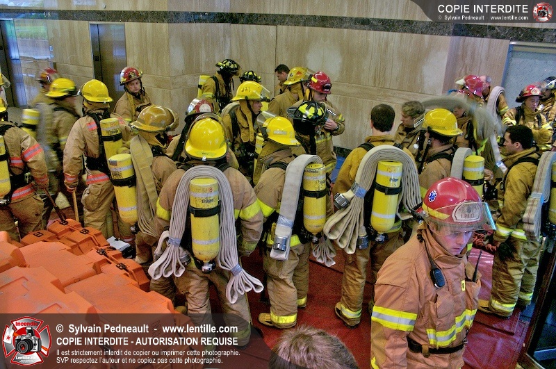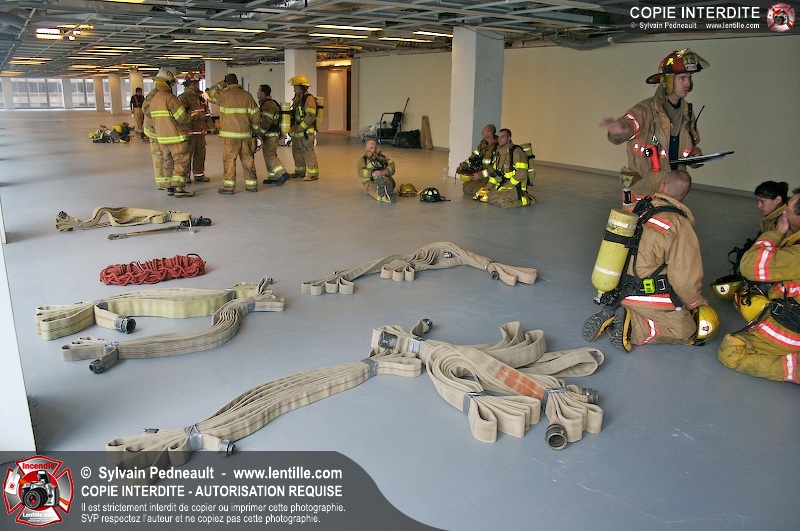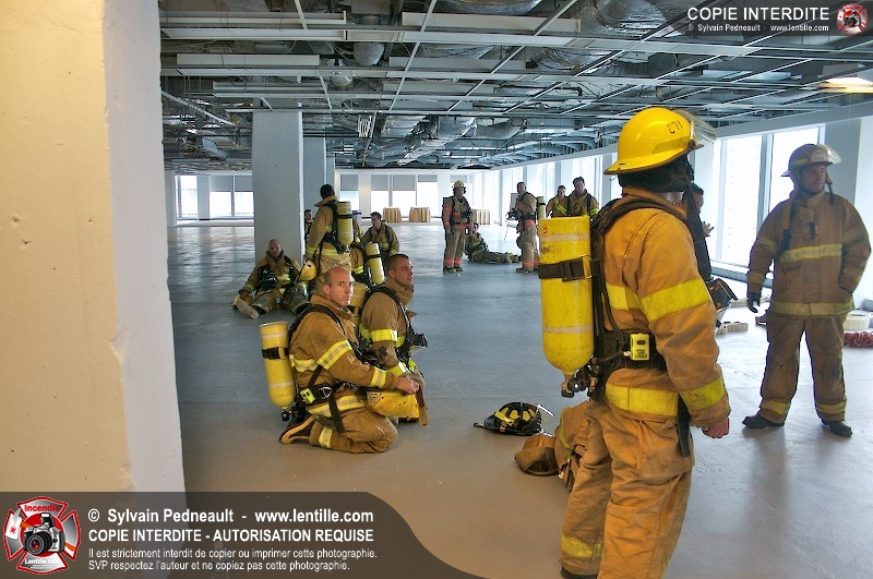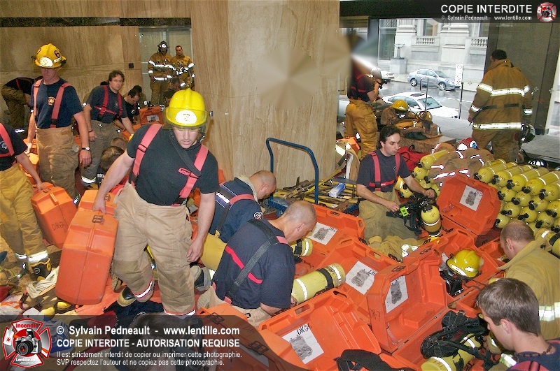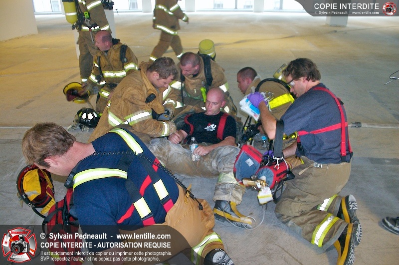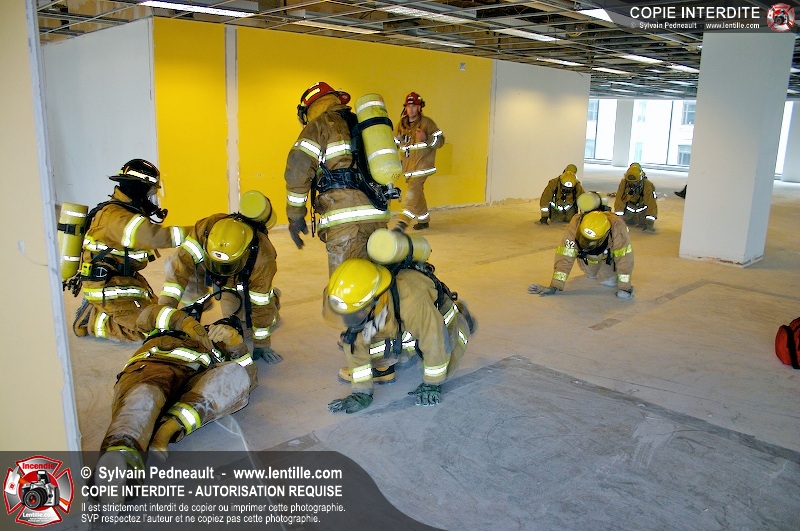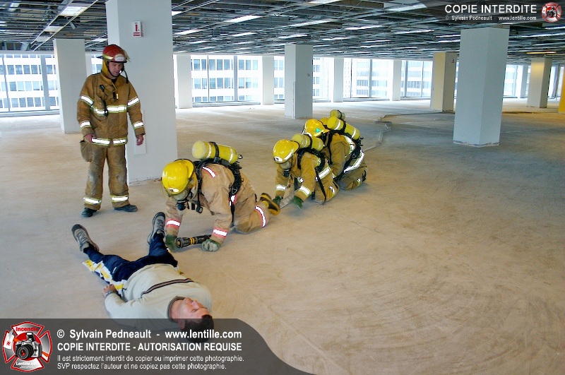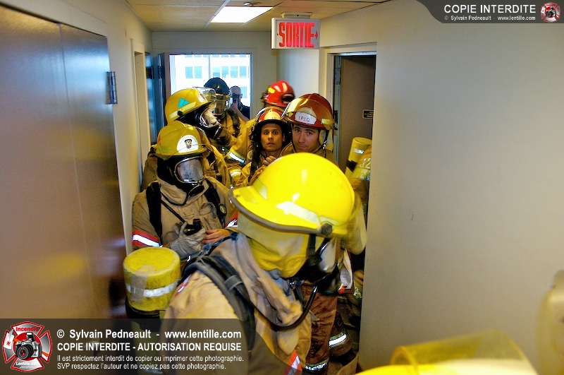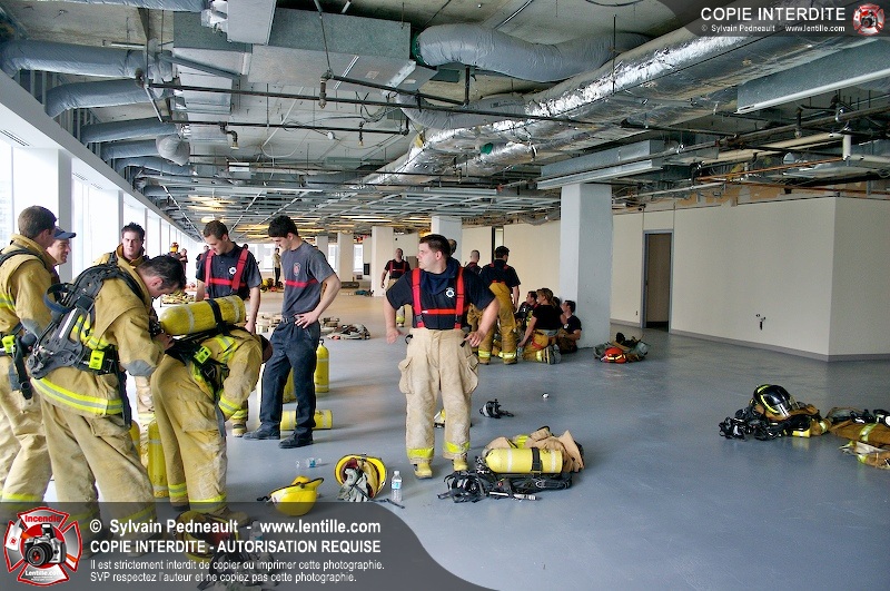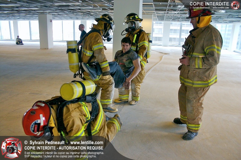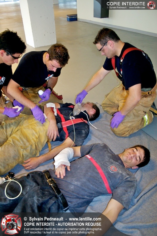 Une cinquantaine de pompiers de différents services incendie ont participé à Montréal à une simulation d'intervention de grande envergure en BGH, dans le cadre de leur évaluation finale pour le module 18.
