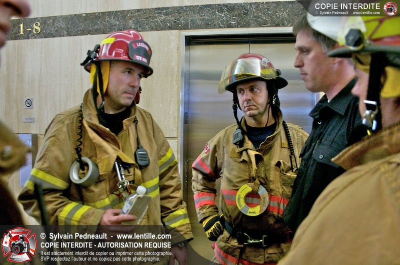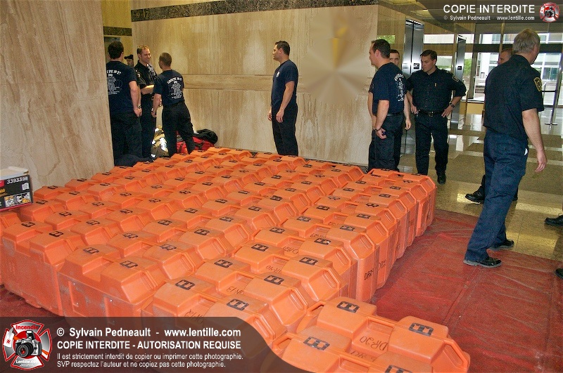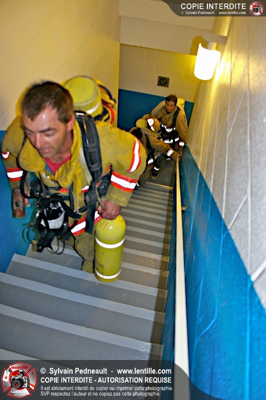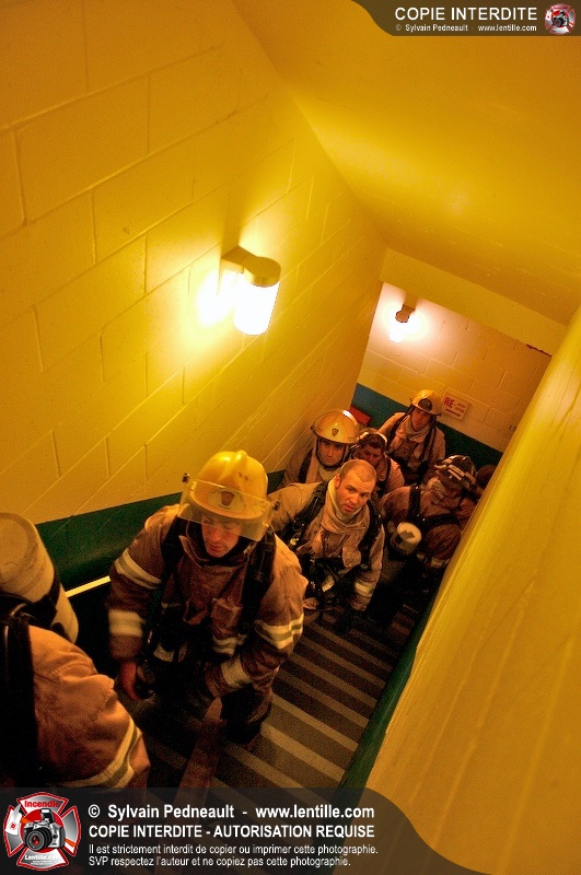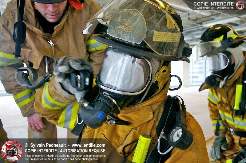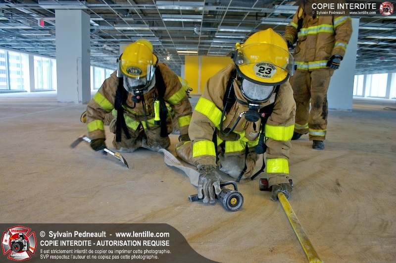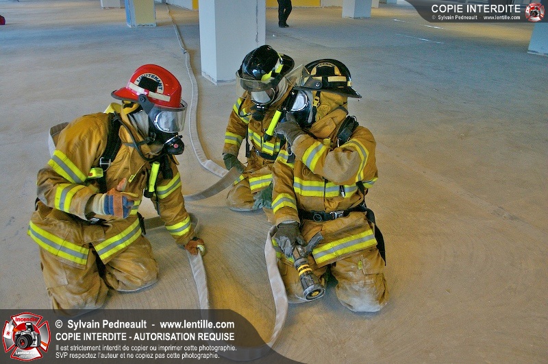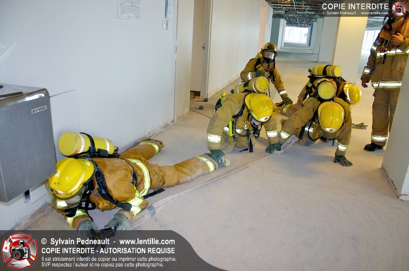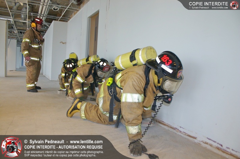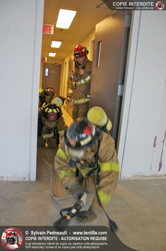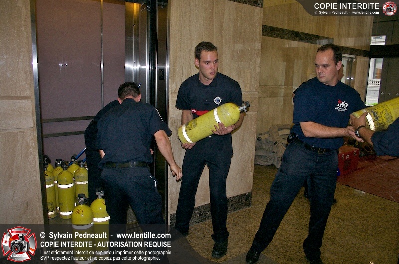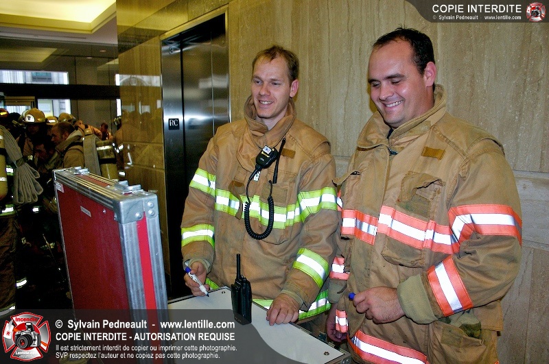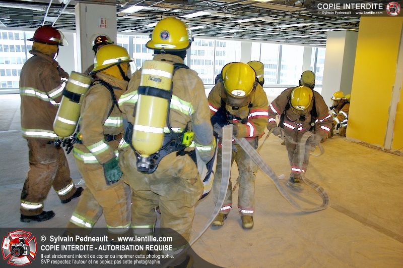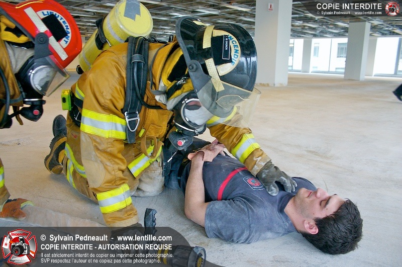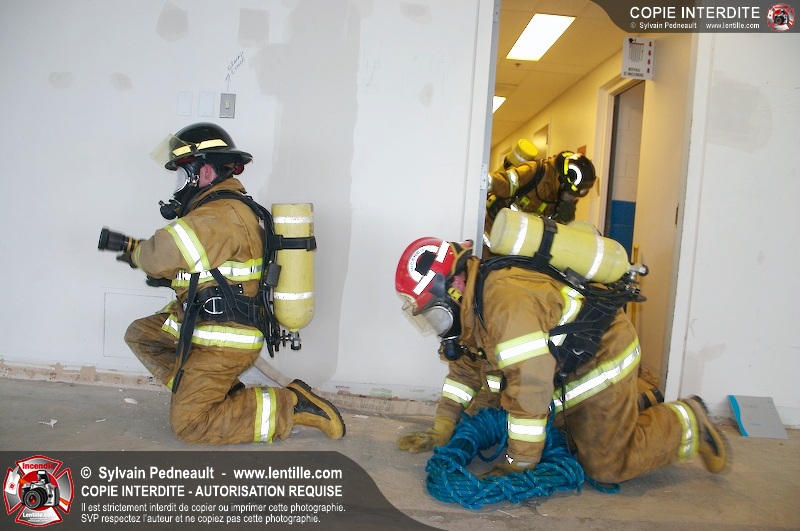 Une cinquantaine de pompiers de différents services incendie ont participé à Montréal à une simulation d'intervention de grande envergure en BGH, dans le cadre de leur évaluation finale pour le module 18.