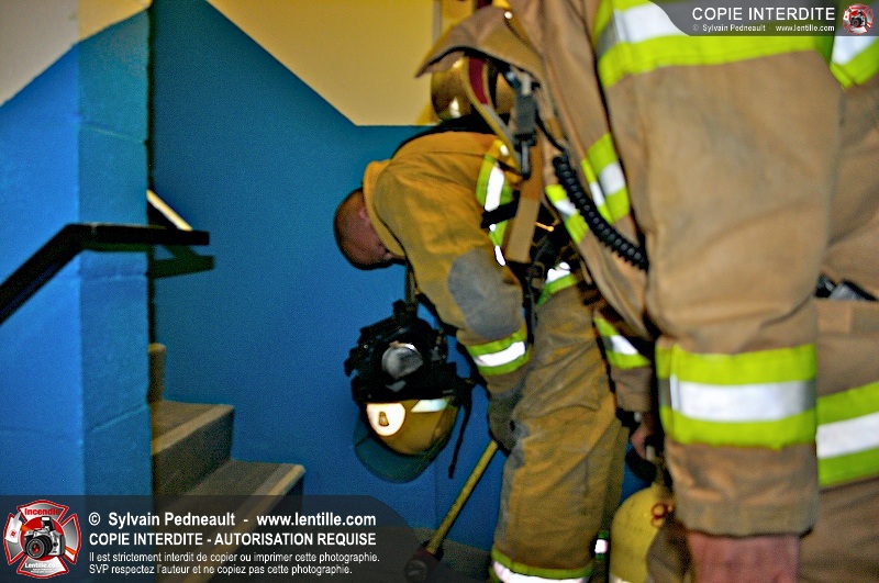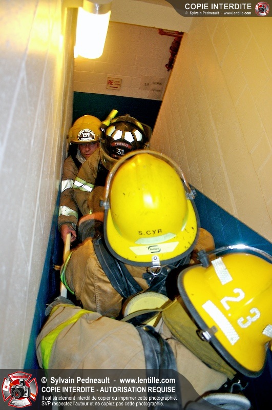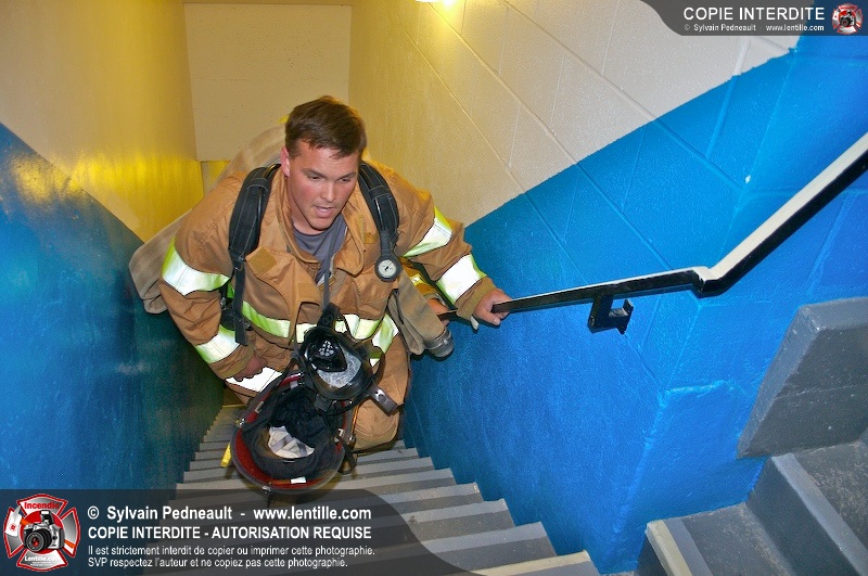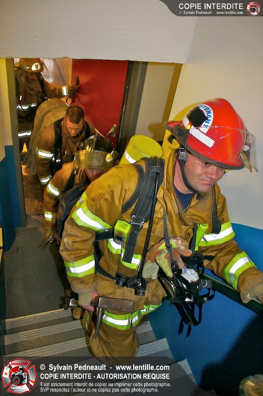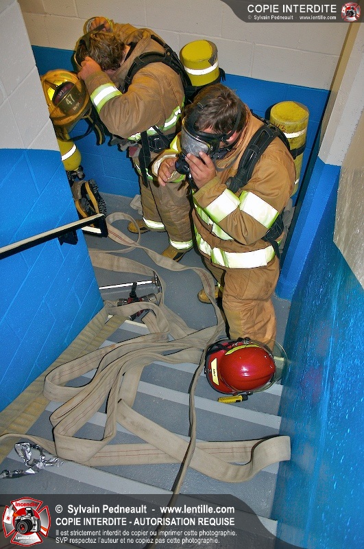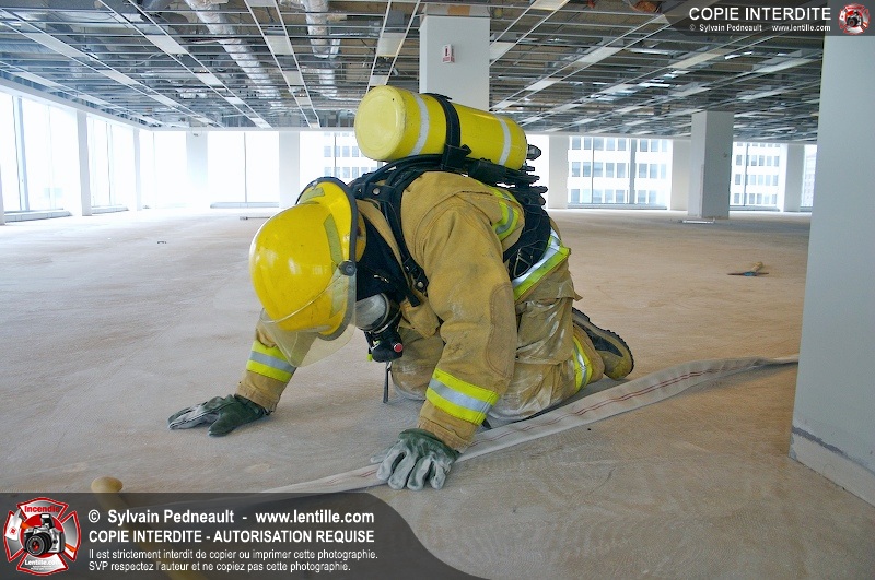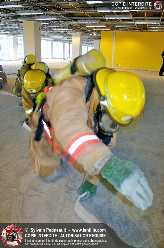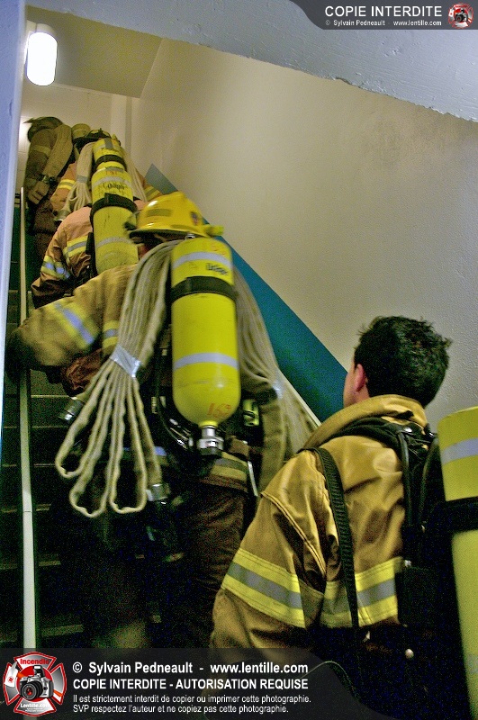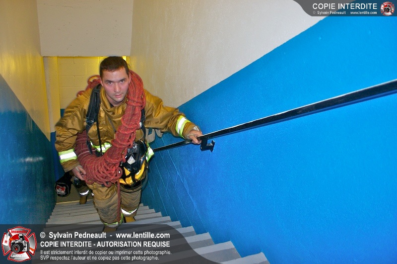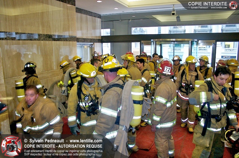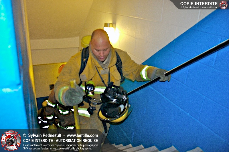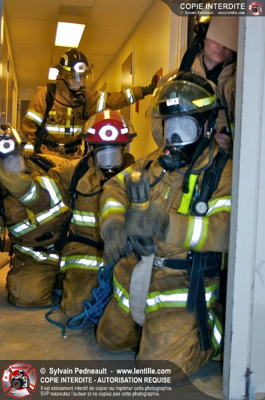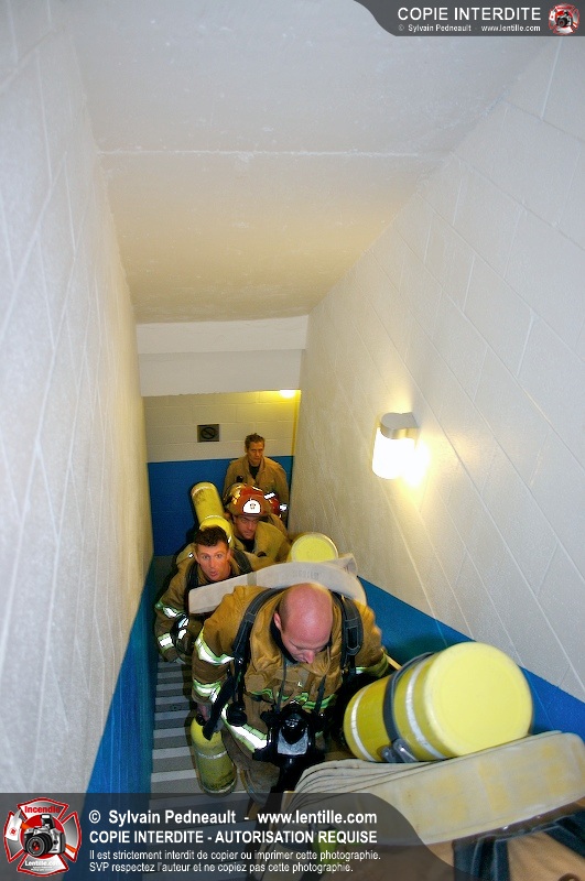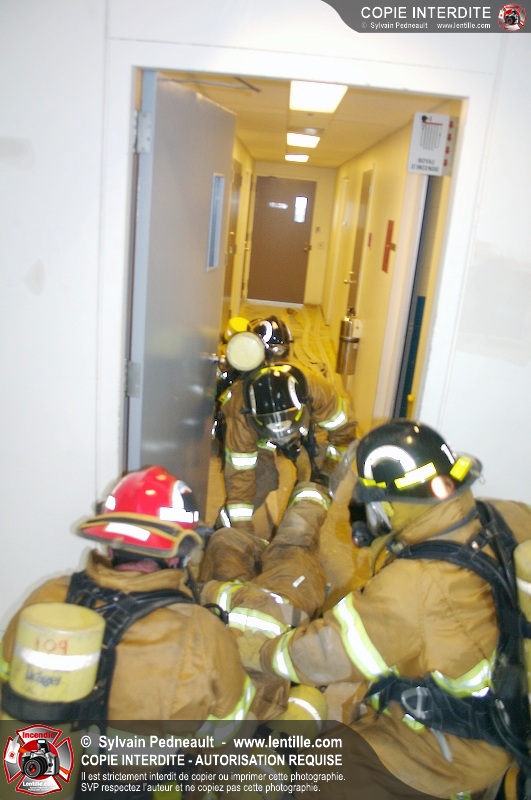 Une cinquantaine de pompiers de différents services incendie ont participé à Montréal à une simulation d'intervention de grande envergure en BGH, dans le cadre de leur évaluation finale pour le module 18.