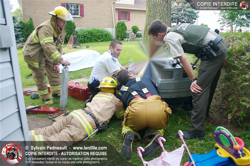 L'unité de désincarcération du SSI de Saint-Hyacinthe, les paramédics de Saint-Hyacinthe et les policiers de la Sûreté du Québec ont rapidement répondu à l'appel pour libérer l'enfant. Tout au long de l'opération, les intervenants ont fait le maximum pour le distraire et lui éviter de penser à la douleur.