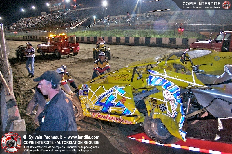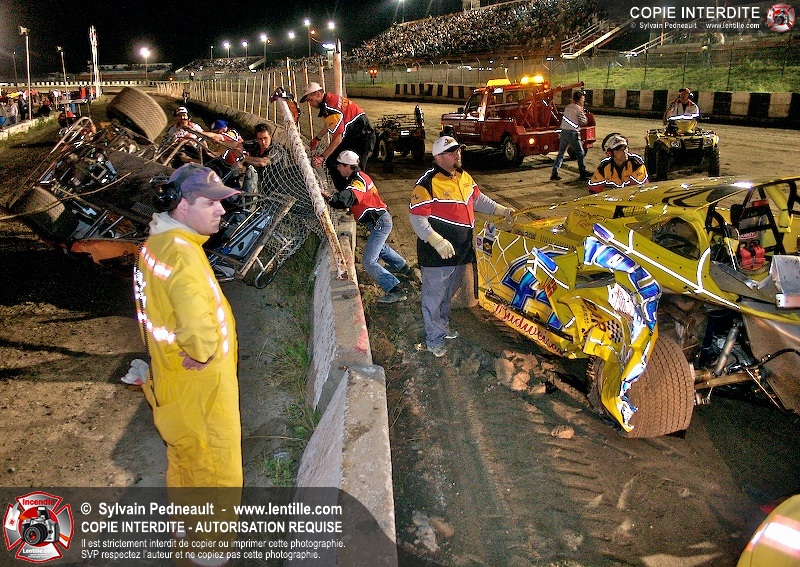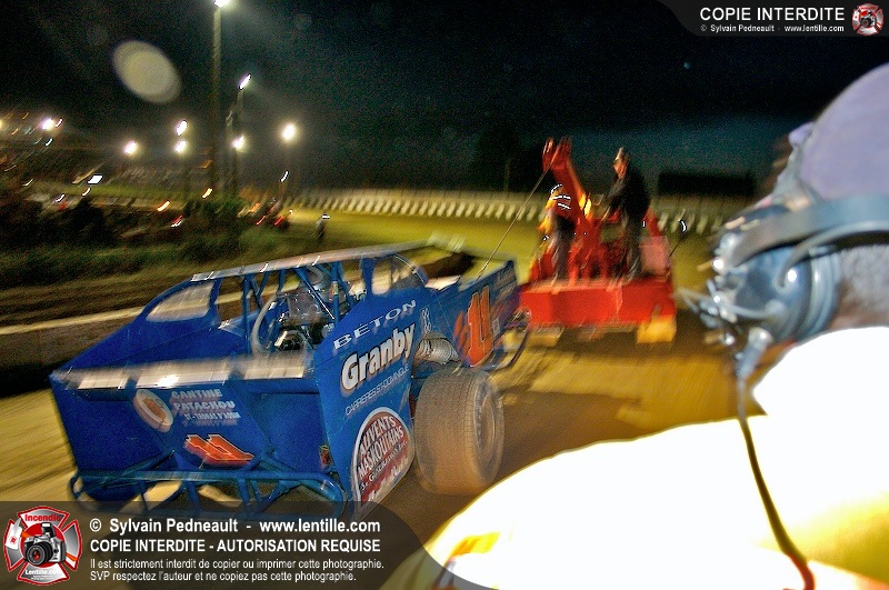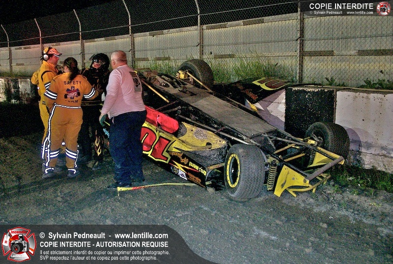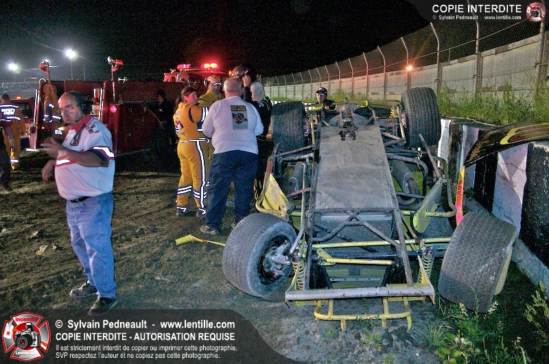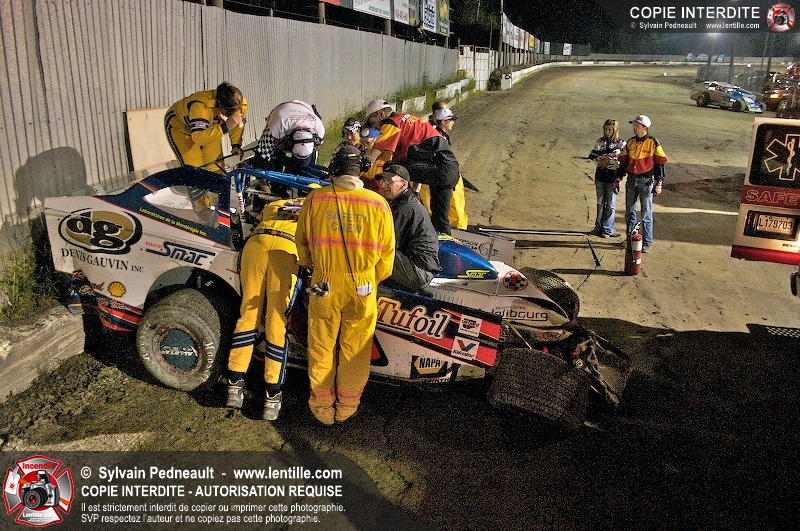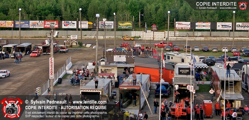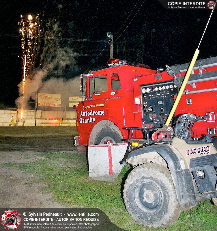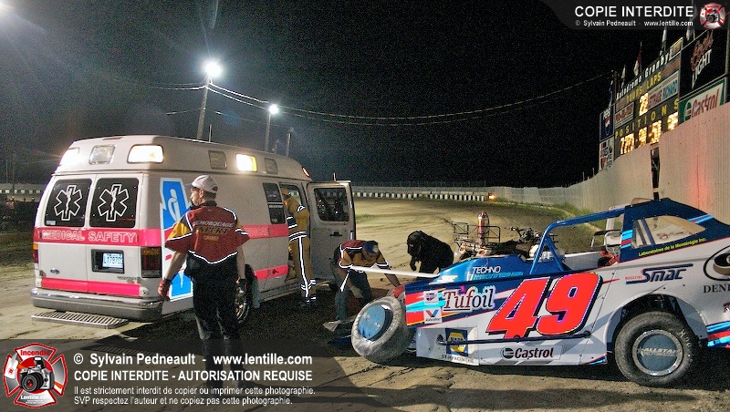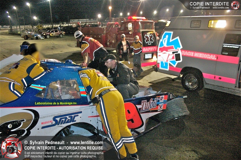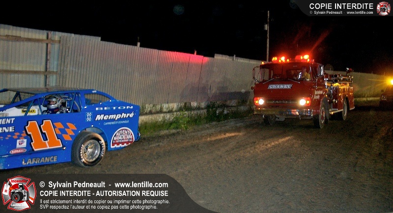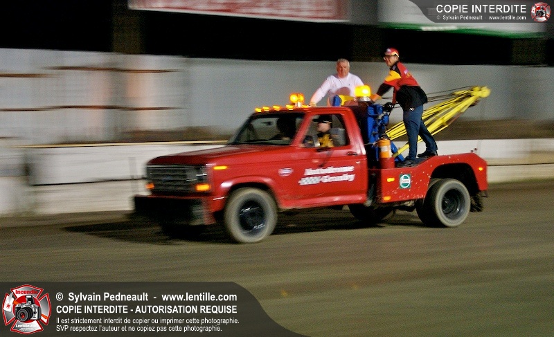 L'équipe de protection incendie et l'équipe médicale de courses interviennent lors des courses automobiles à l'autodrome de Granby. Une soirée remplie d'action, autant pour les spectateurs, les pilotes, les remorqueurs, ET les intervenants d'urgence!
