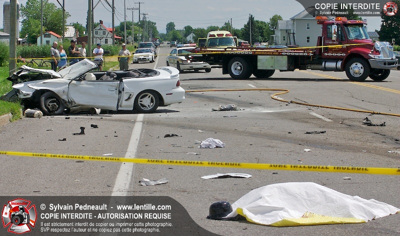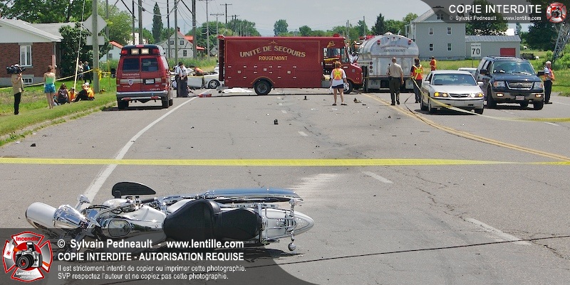 Une femme a perdu la vie de façon tragique samedi midi à Rougemont alors qu'une voiture est sortie de sa voie sur la route 112 et a percuté de plein fouet un groupe de motos venant en sens inverse. La femme n'a eu aucune chance et est décédée sur le coup.