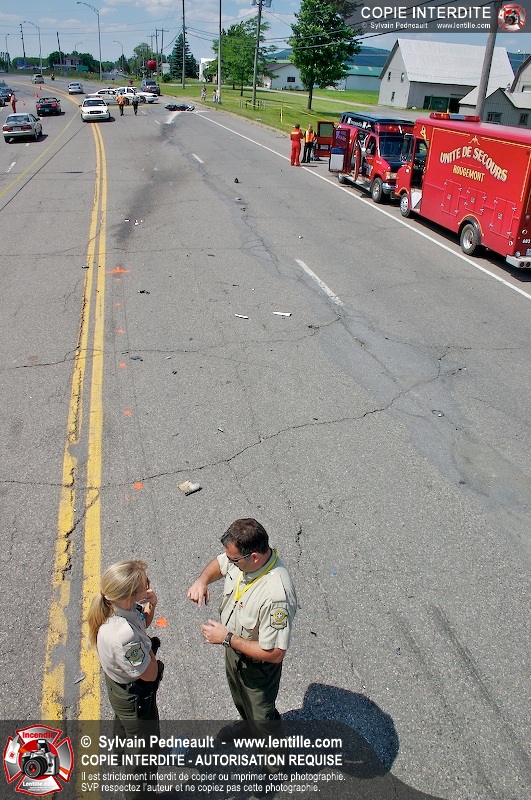 Les pompiers de Rougemont et de St-Césaire, ainsi que les paramédics, les policiers de la Sûreté du Québec et l'APAM se sont rendus sur place. L'équipe d'enquête de collision de la Sûreté du Québec a été dépêchée sur les lieux pour faire les expertises nécessaires, prendre les mesures et photographier la scène pour réaliser par la suite un modèle tridimensionnel de la scène en utilisant les techniques photogrammétriques de pointe.