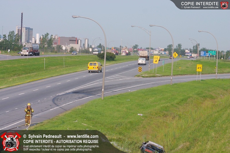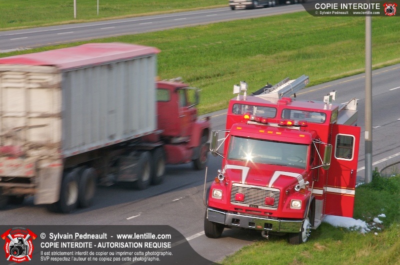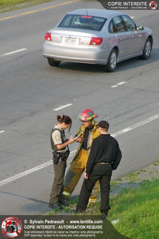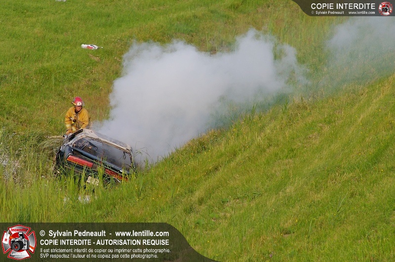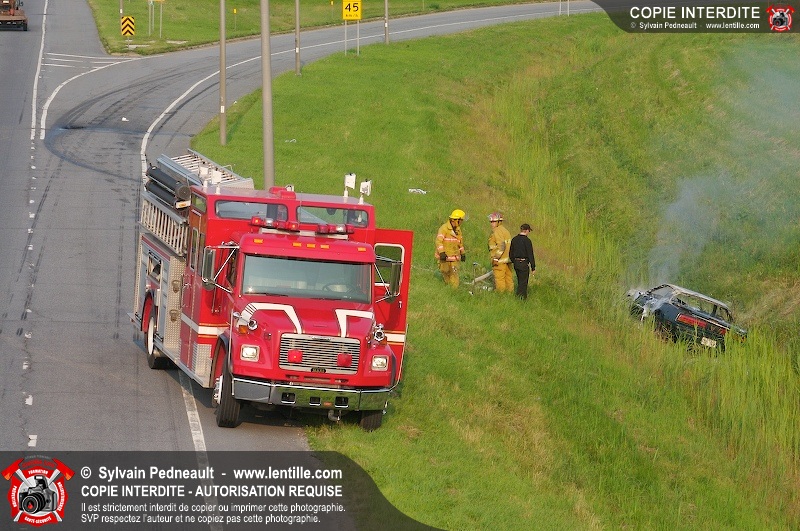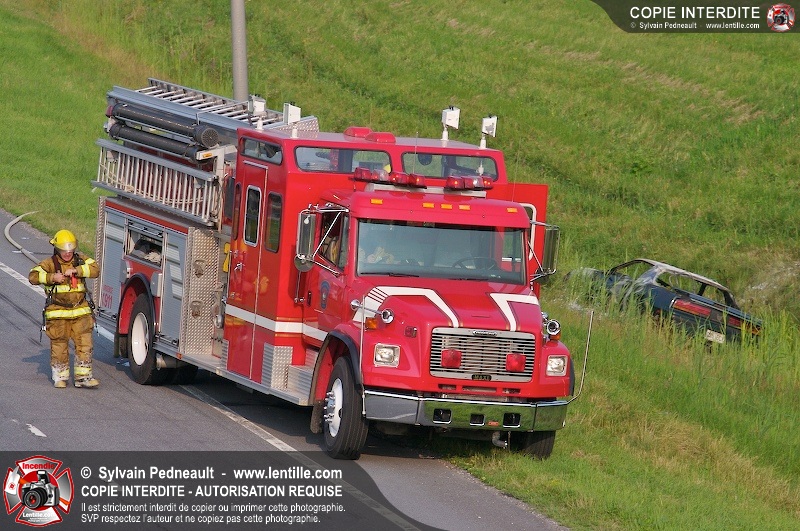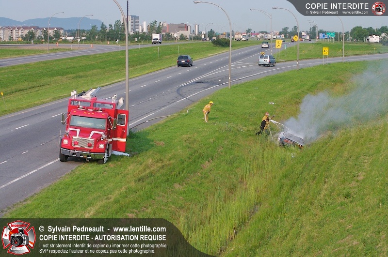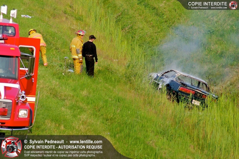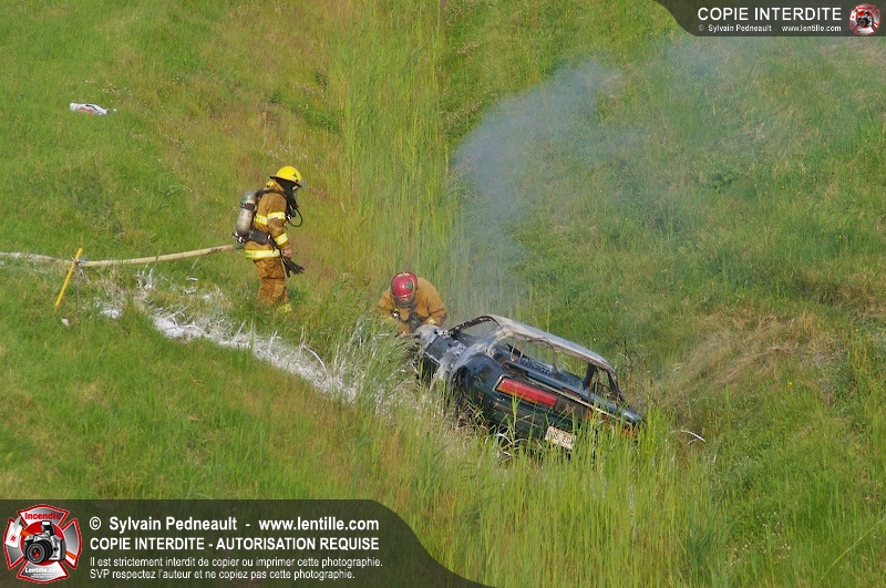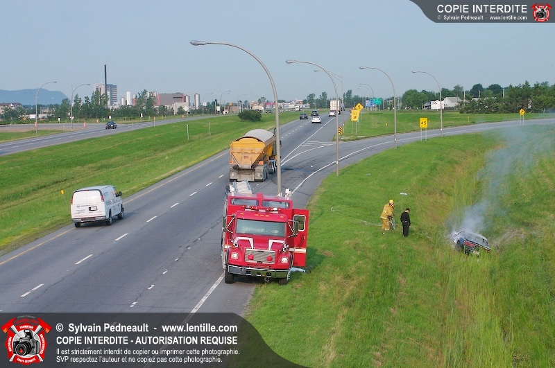 Une voiture a pris feu sur l'autoroute 20 ouest à la hauteur de la sortie Girouard. L'équipe de garde s'est rendue sur les lieux avec auto-pompe 205 pour procéder à l'extinction.