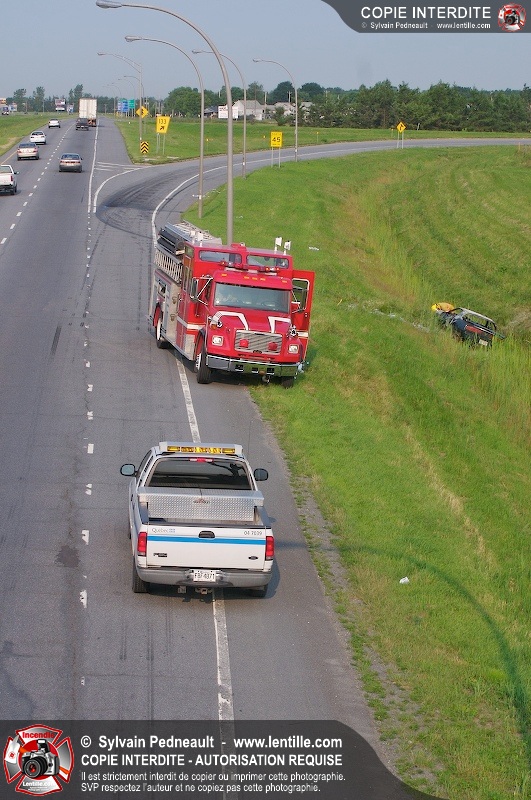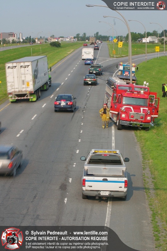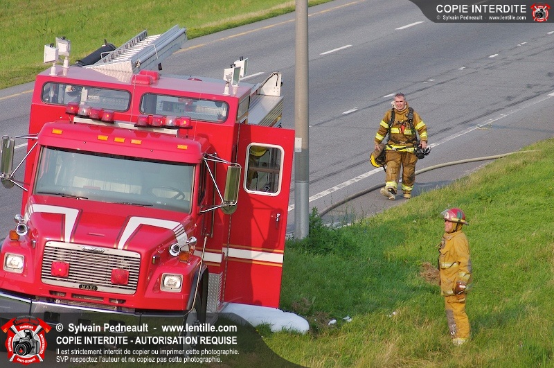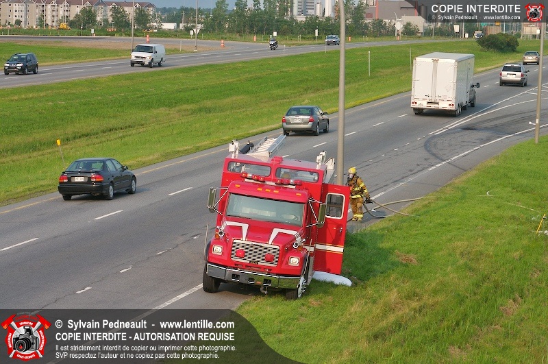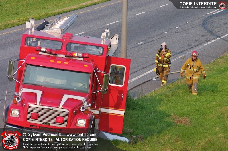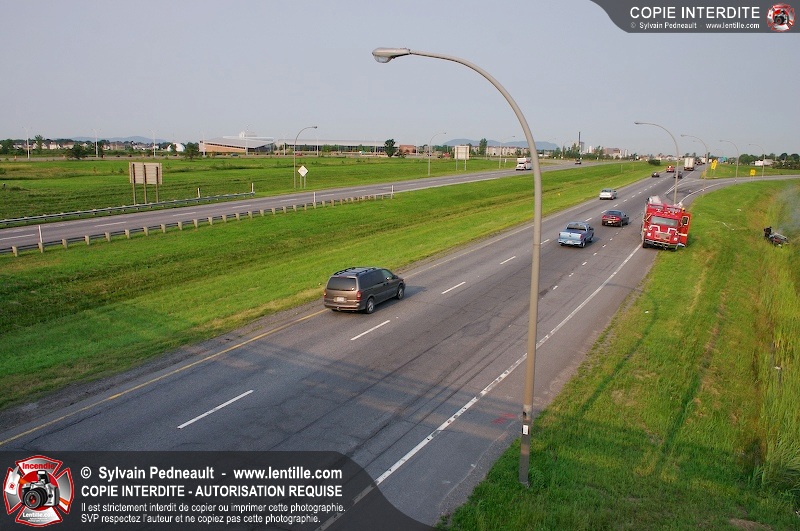 Feu de véhicule sur l'autoroute 20