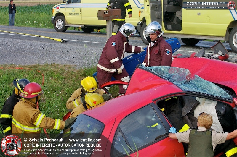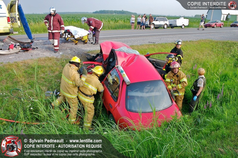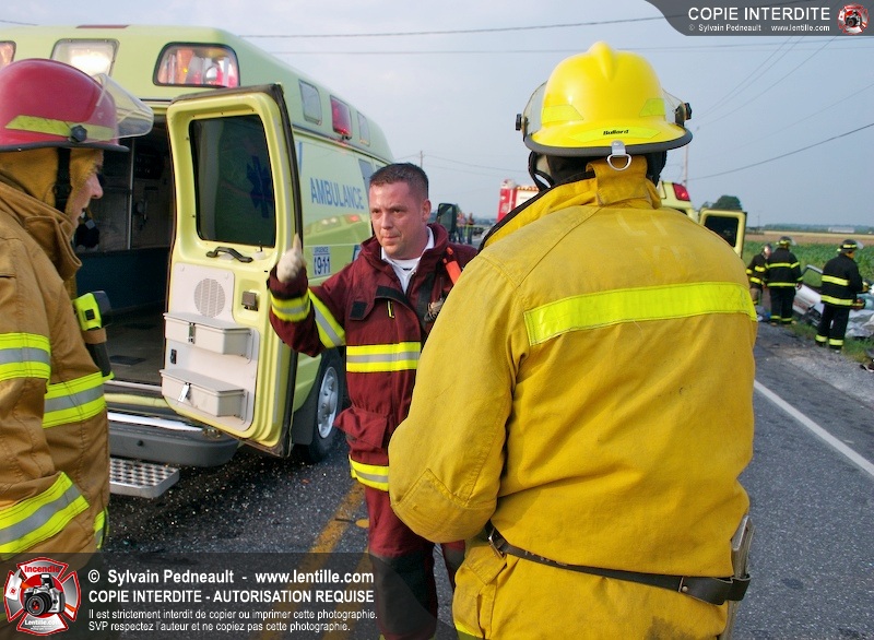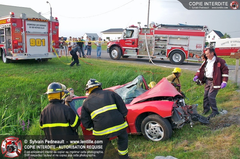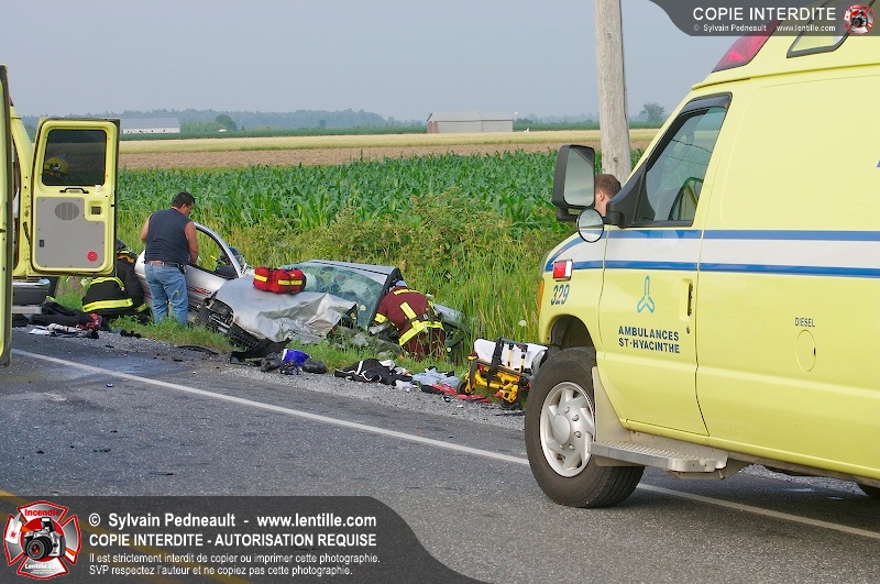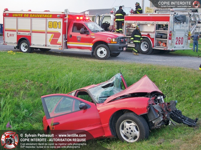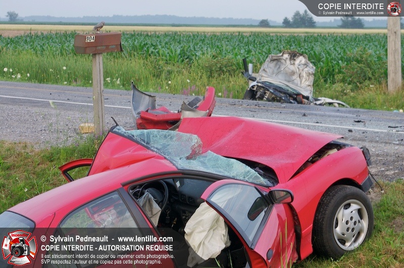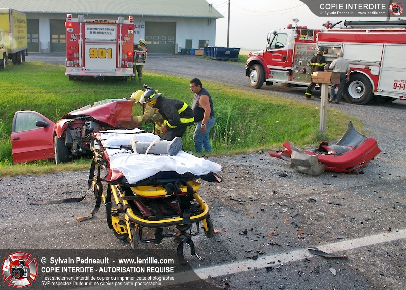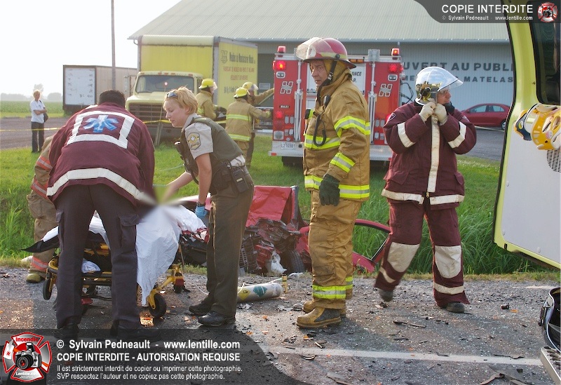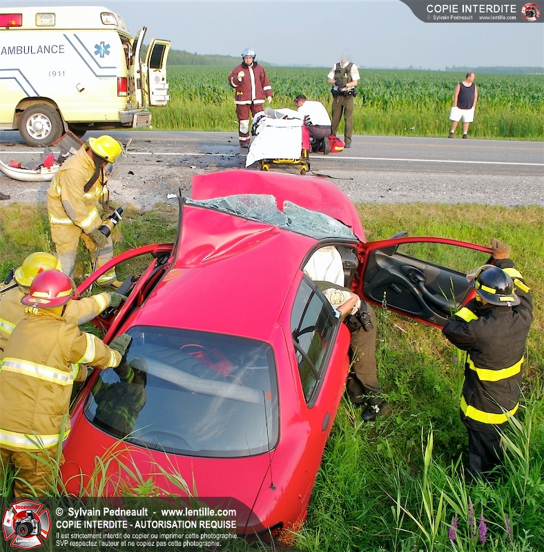 Suite ŕ une trčs violente collision frontale entre deux véhicules, les deux unités de désincarcération de Saint-Hyacinthe, les pompiers de St-Barnabé-Sud, trois ambulances, ainsi que plusieurs paramédics et policiers sont intervenus sur la route 235.
