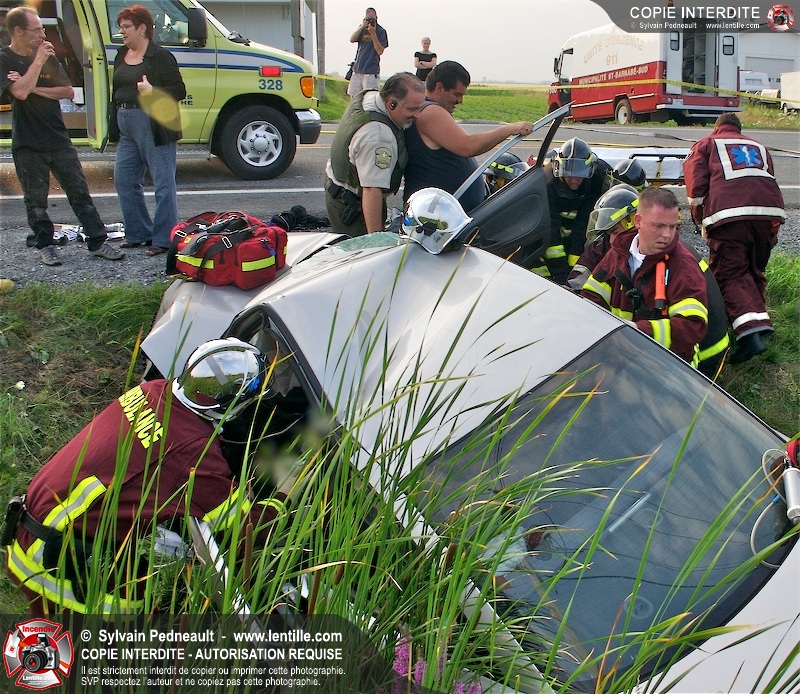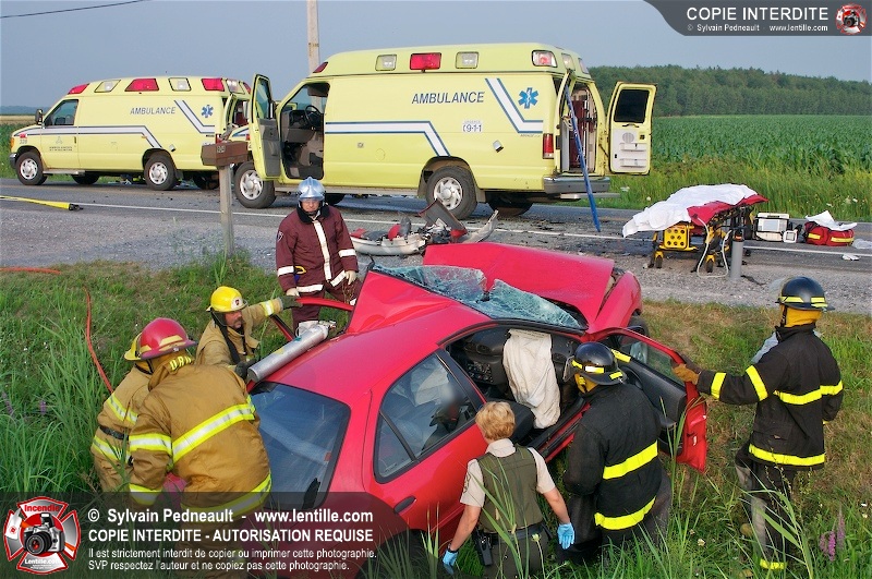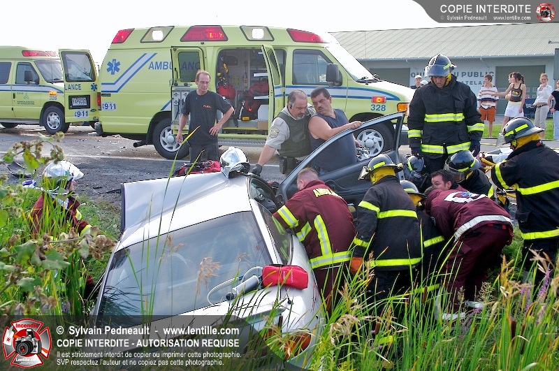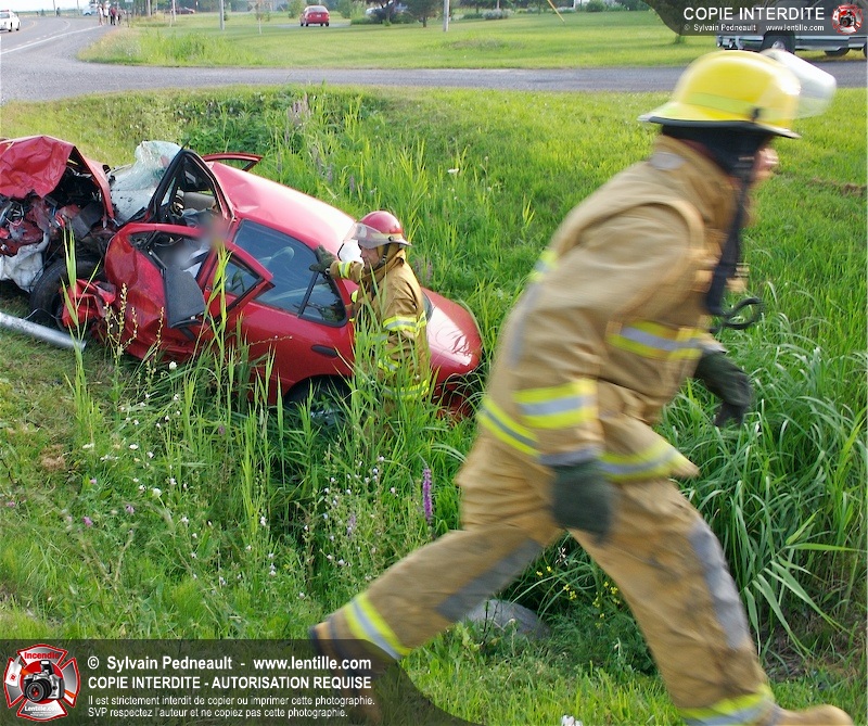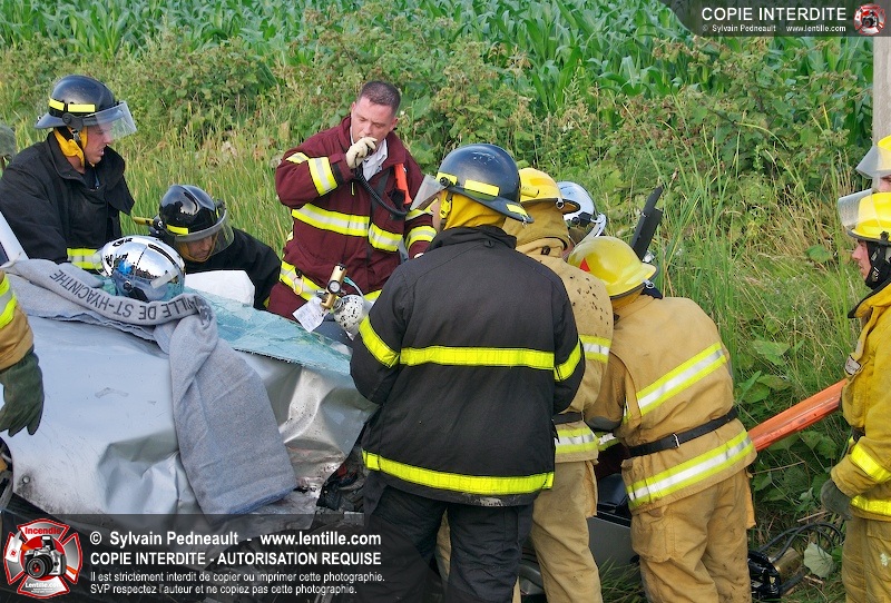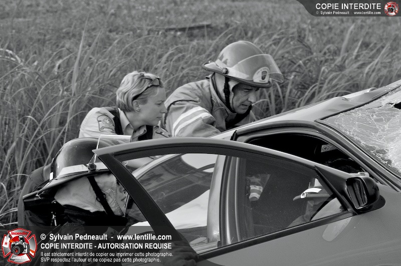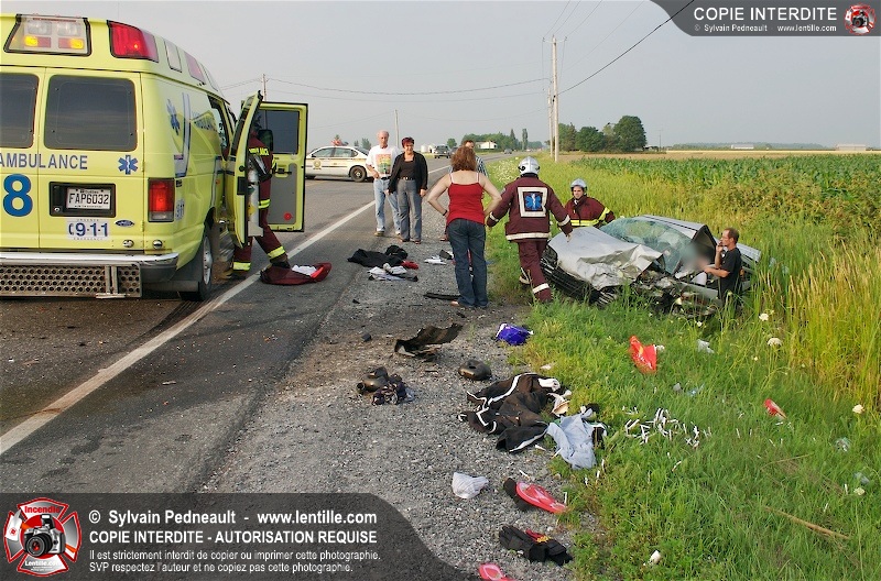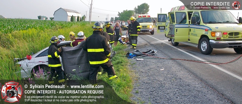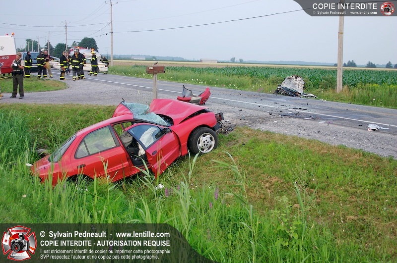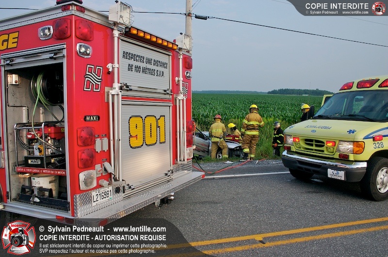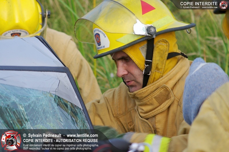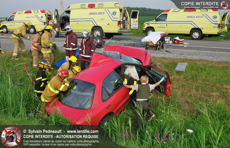 Suite ŕ une trčs violente collision frontale entre deux véhicules, les deux unités de désincarcération de Saint-Hyacinthe, les pompiers de St-Barnabé-Sud, trois ambulances, ainsi que plusieurs paramédics et policiers sont intervenus sur la route 235.