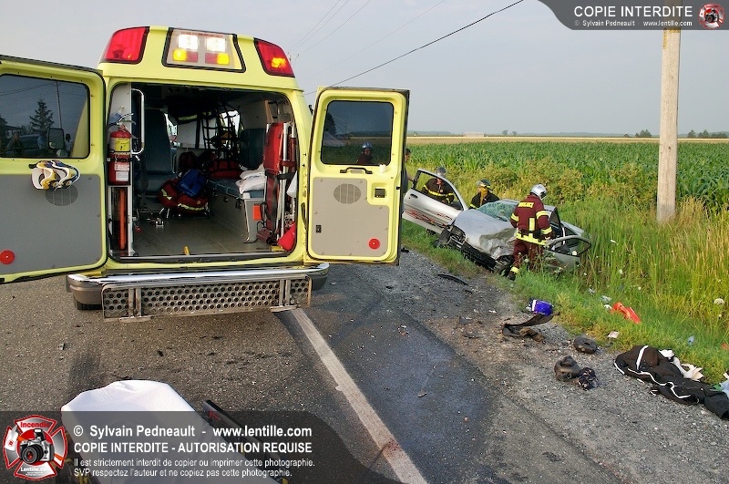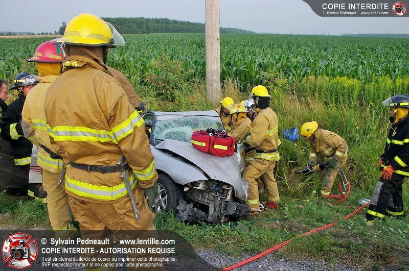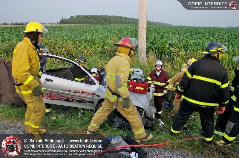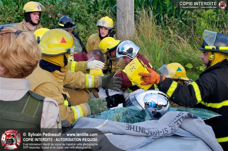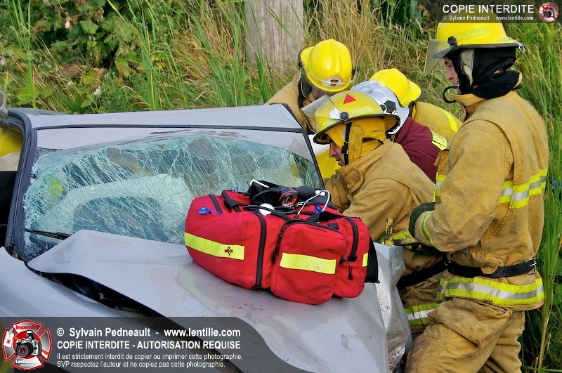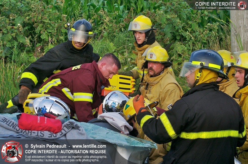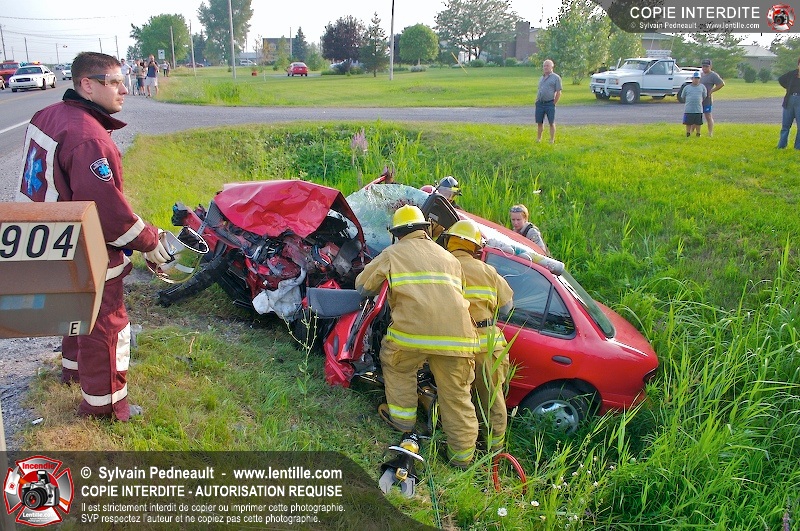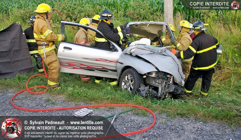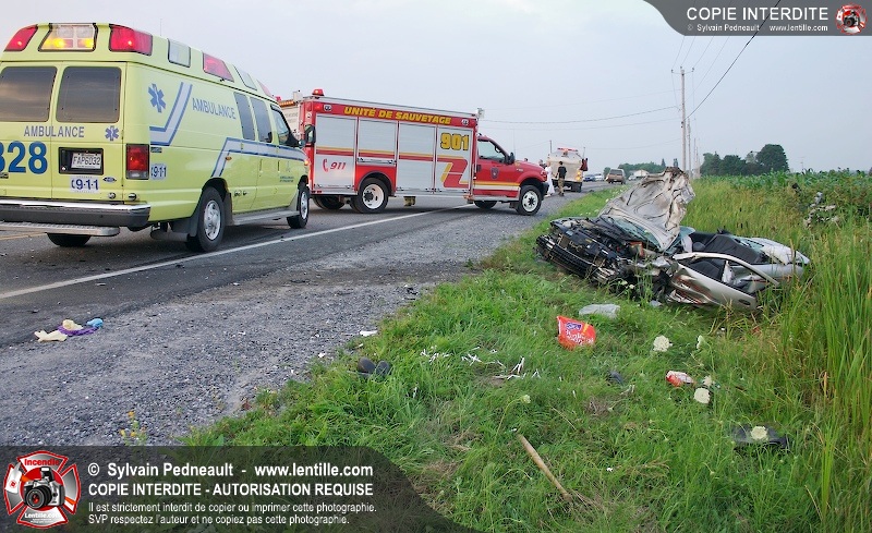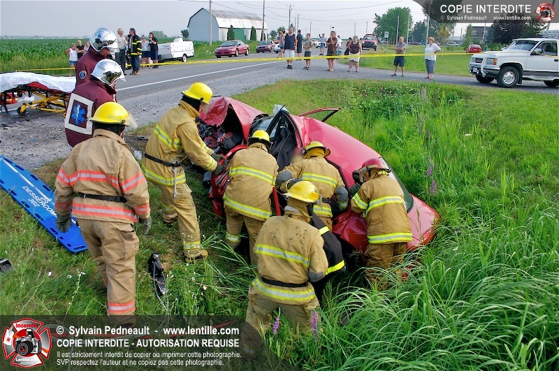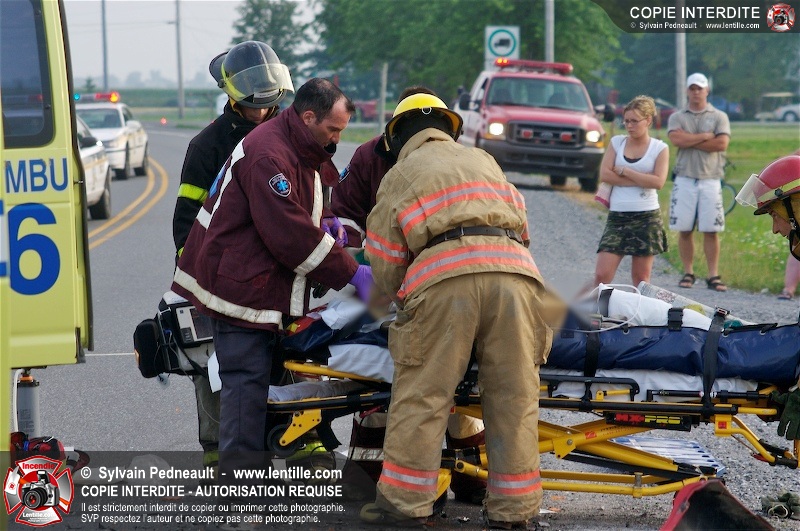 Suite ŕ une trčs violente collision frontale entre deux véhicules, les deux unités de désincarcération de Saint-Hyacinthe, les pompiers de St-Barnabé-Sud, trois ambulances, ainsi que plusieurs paramédics et policiers sont intervenus sur la route 235.