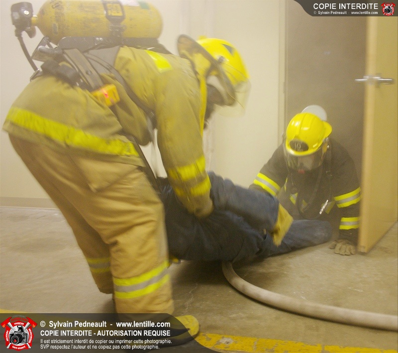 Des étudiants du programme Pompier I au CFR de Saint-Hyacinthe suivent leur formation de recherche & sauvetage.