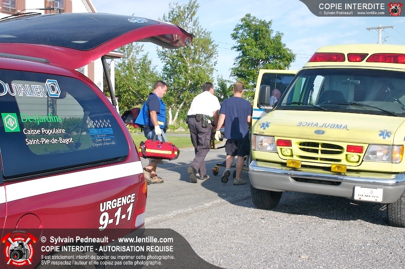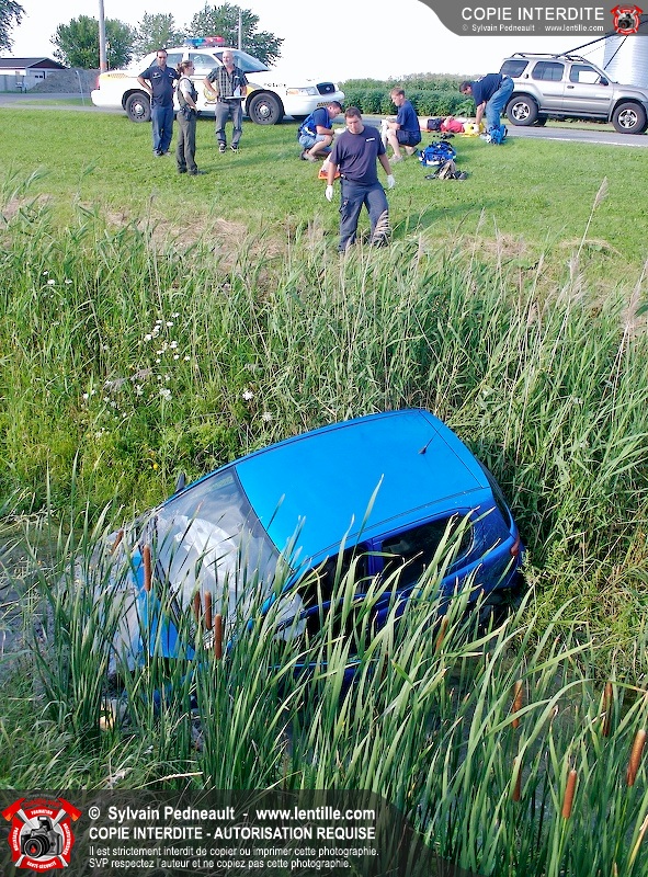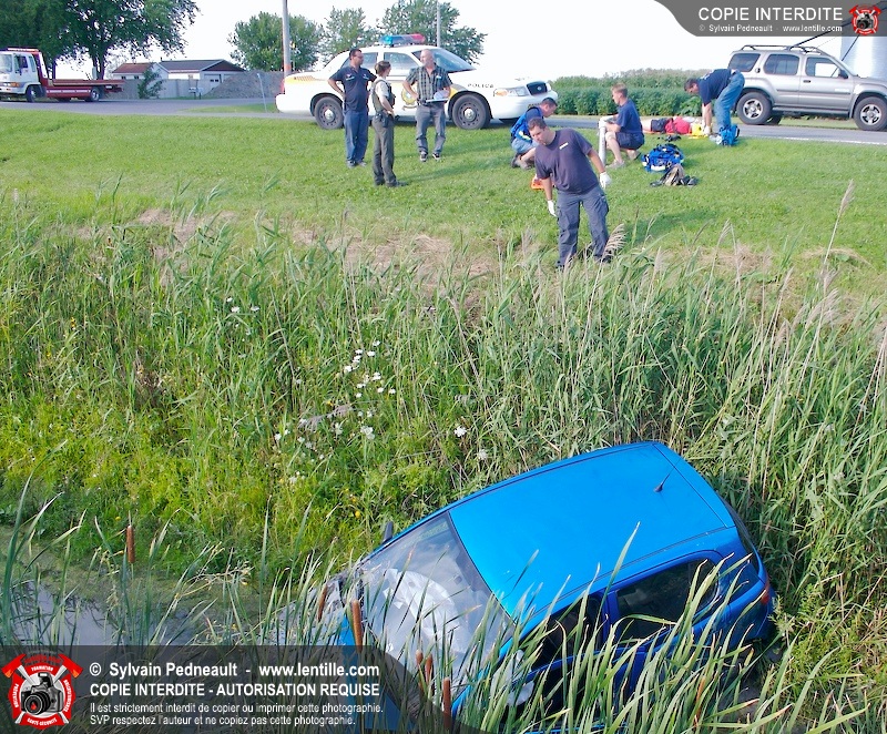 La conductrice d'une automobile a perdu la maîtrise de celle-ci dans une courbe serrée près de St-Pie. Les Premiers Répondants de St-Pie, les paramédics de Saint-Hyacinthe et la Sûreté du Québec ont répondu à cet appel.