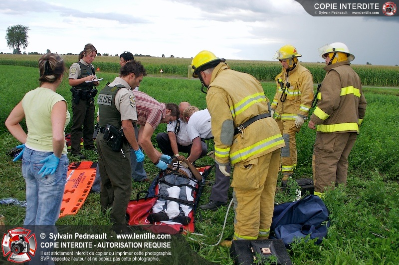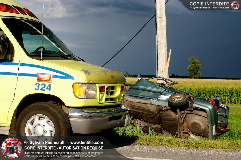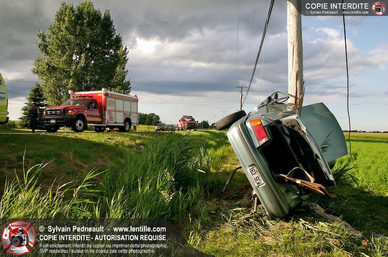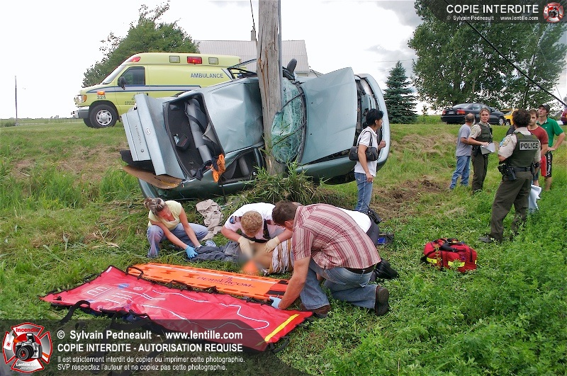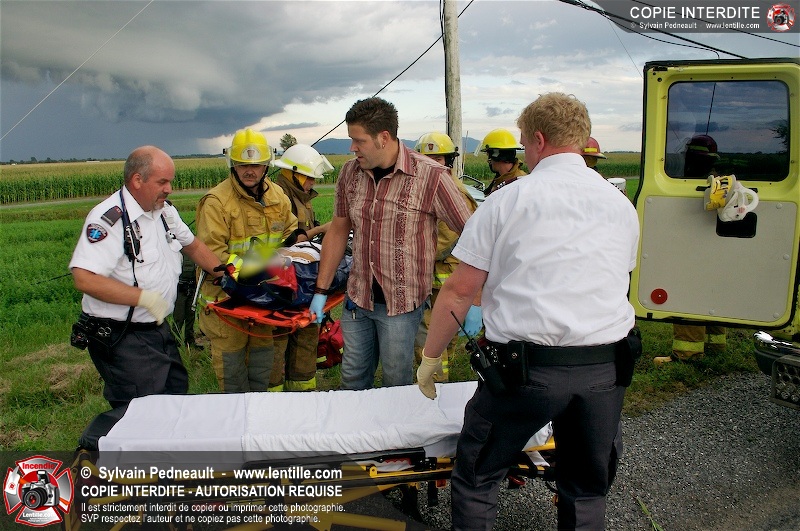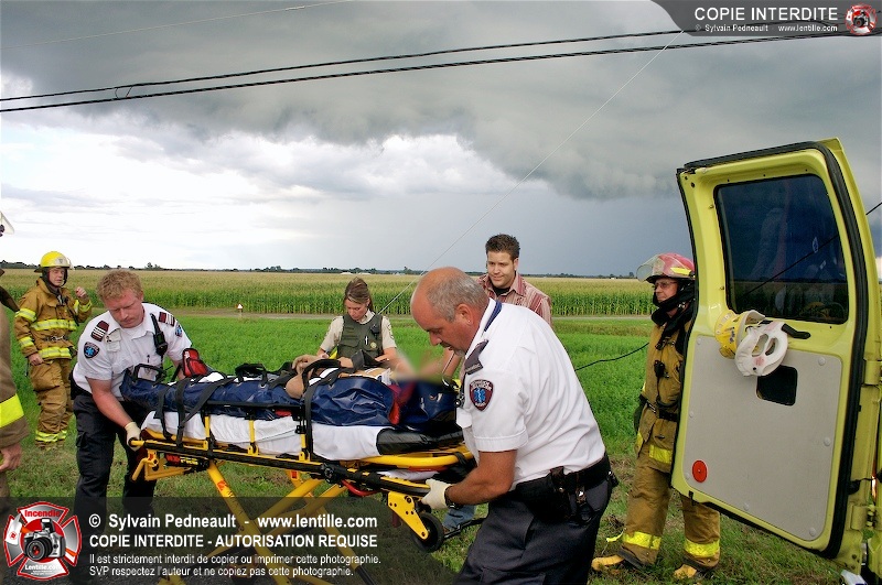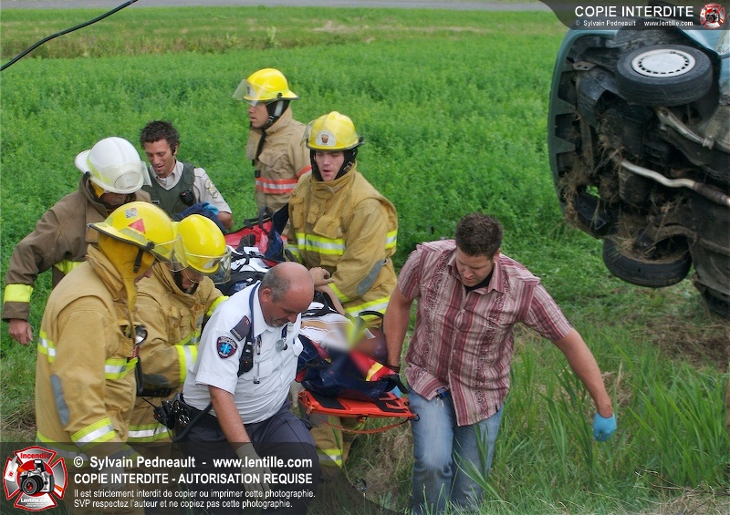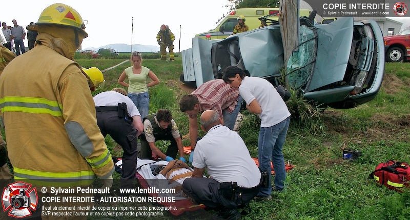 L'appel est entré comme une désincarcération, cependant l'intervention n'a pas nécessité de désincarcération comme telle puisque le conducteur avait été éjecté. Les pompiers de St-Damase, l'unité de désincarcération de Saint-Hyacinthe, les paramédics de Saint-Hyacinthe et la Sûreté du Québec étaient présents sur les lieux.
