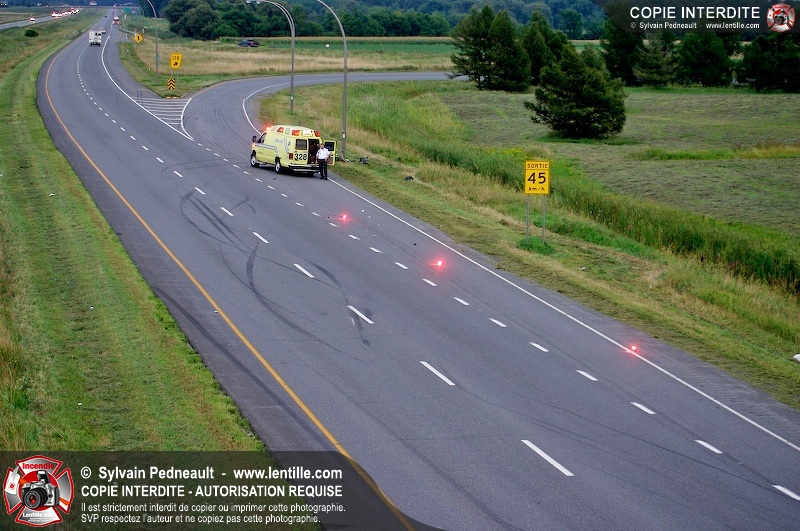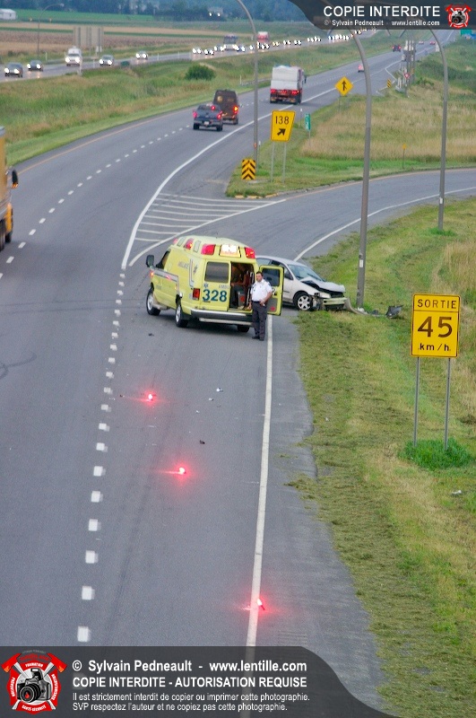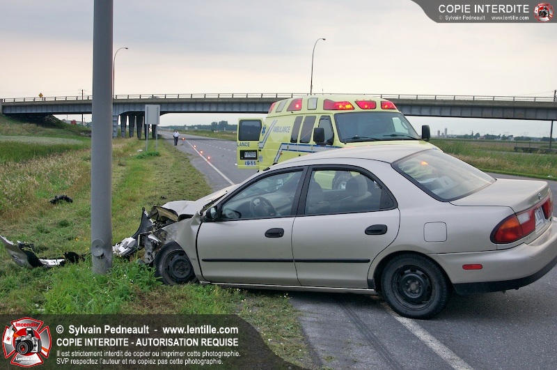 Une voiture a percuté un lampadaire sur l'autoroute 20 à la sortie 138 après une perte de contrôle. Les occupants du véhicule ayant eu plus de peur que de mal, l'ambulance 328 est restée sur place jusqu'à l'arrivée de la Sûreté du Québec afin que personne ne heurte le véhicule accidenté.