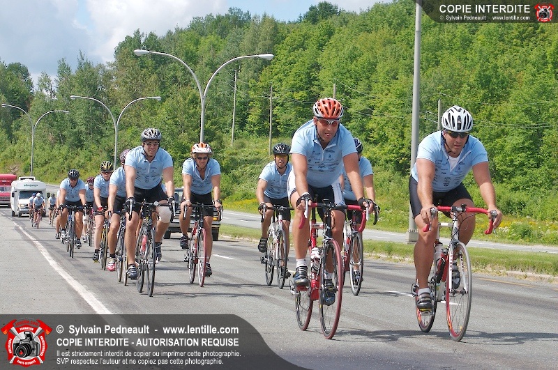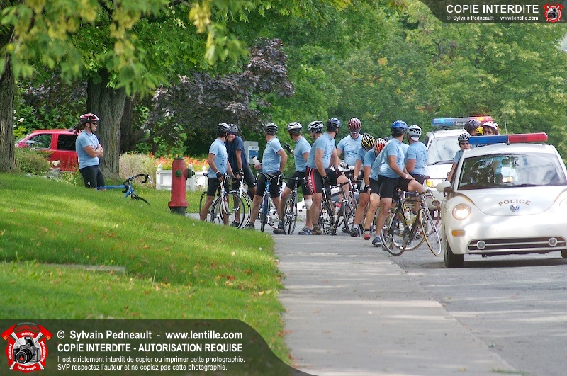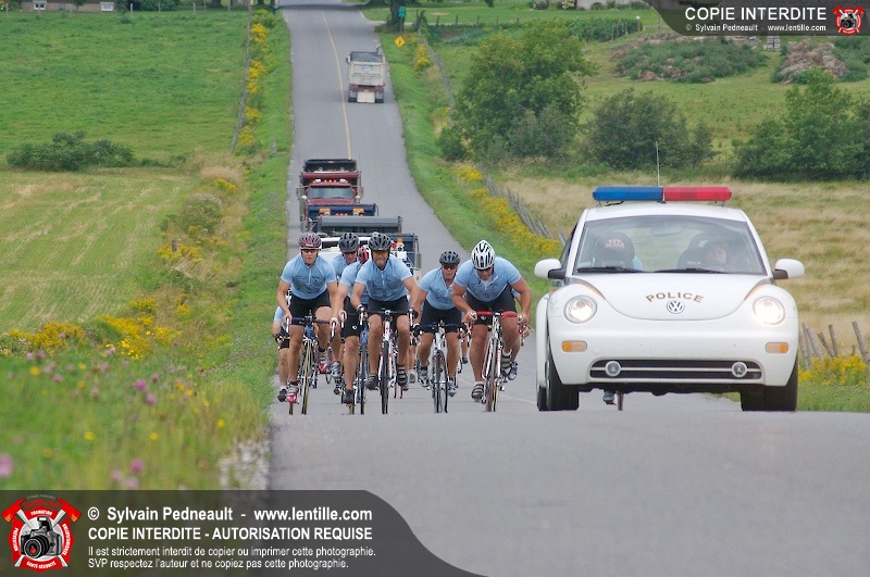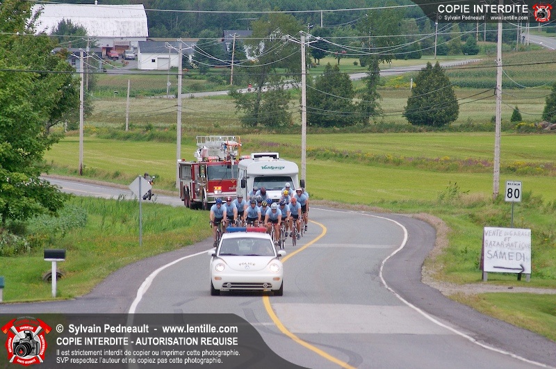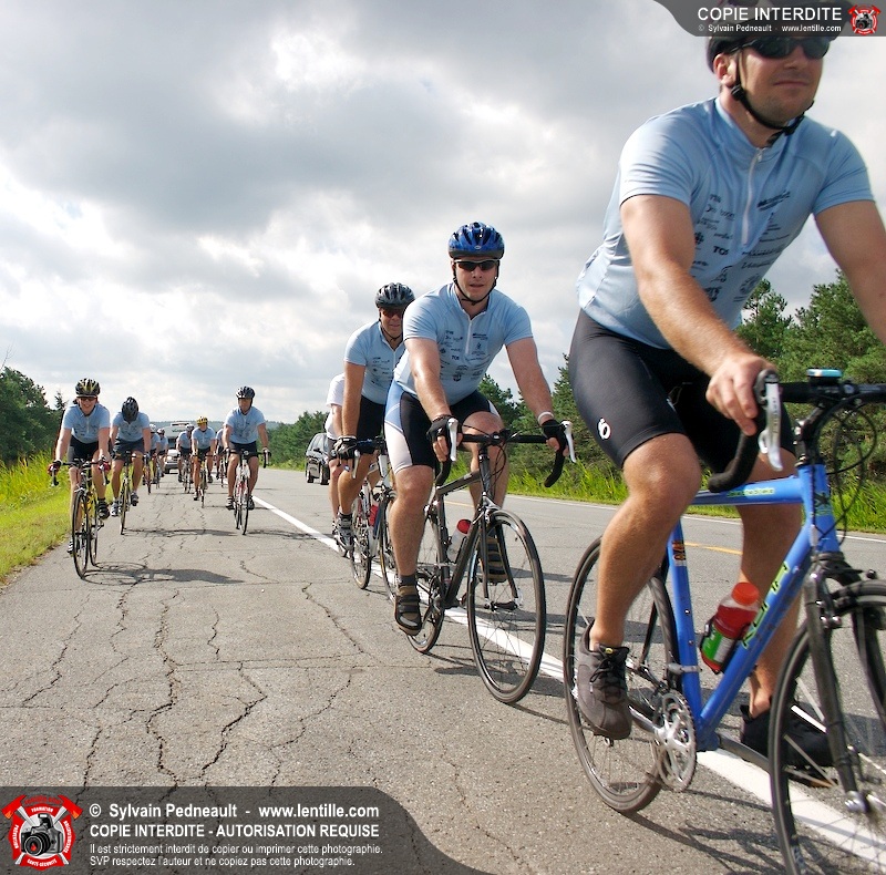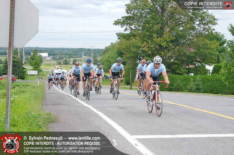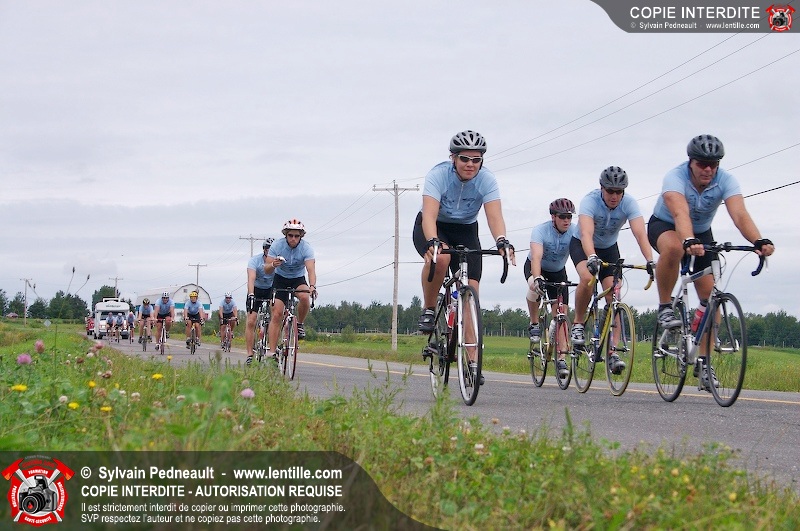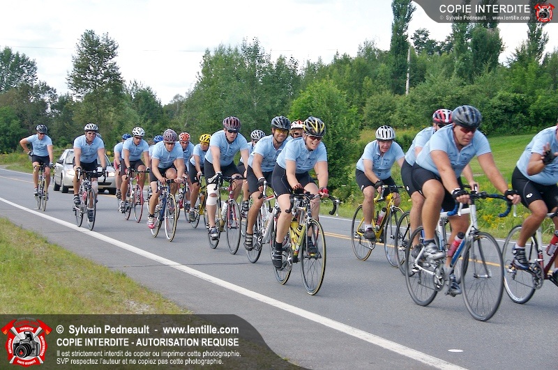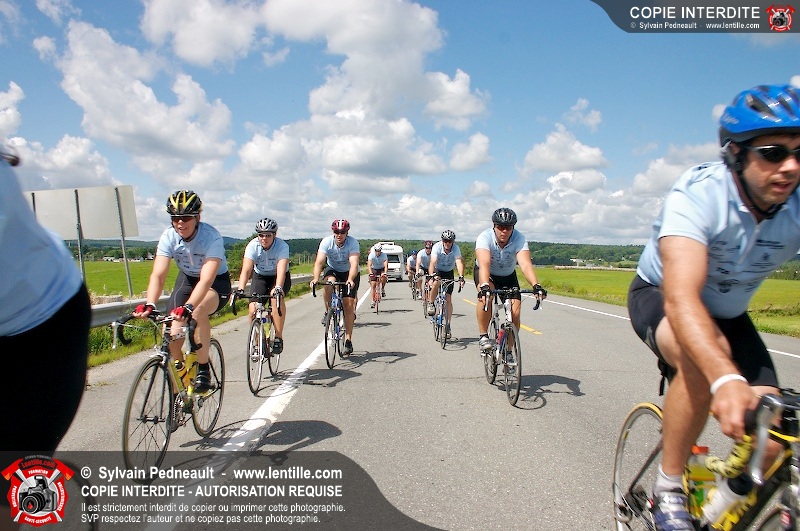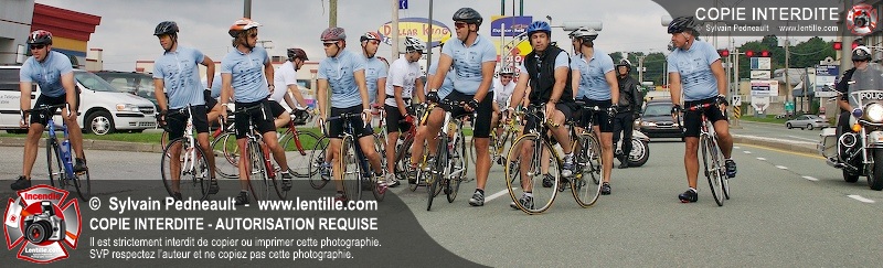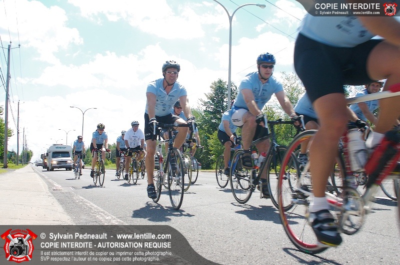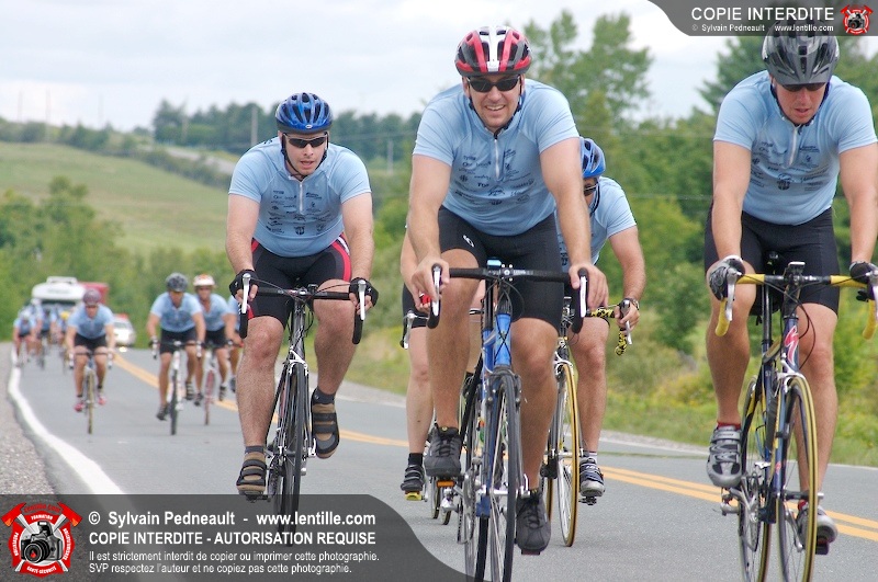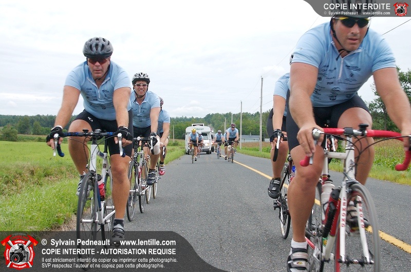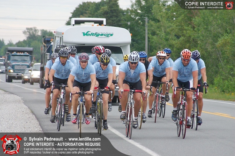 Dix-neuf policiers et pompiers ont roulé sur plus de 260 kilomčtres en deux jours ŕ l'occasion du Tour cycliste Frédéric Duguay 2006 de Dystrophie musculaire Canada. L'activité qui visait cette année ŕ amasser 15 000$ a plutôt récolté plus de 25 000$ pour la dystrophie musculaire! Photographie de l'événement: une commandite de Lentille.com!