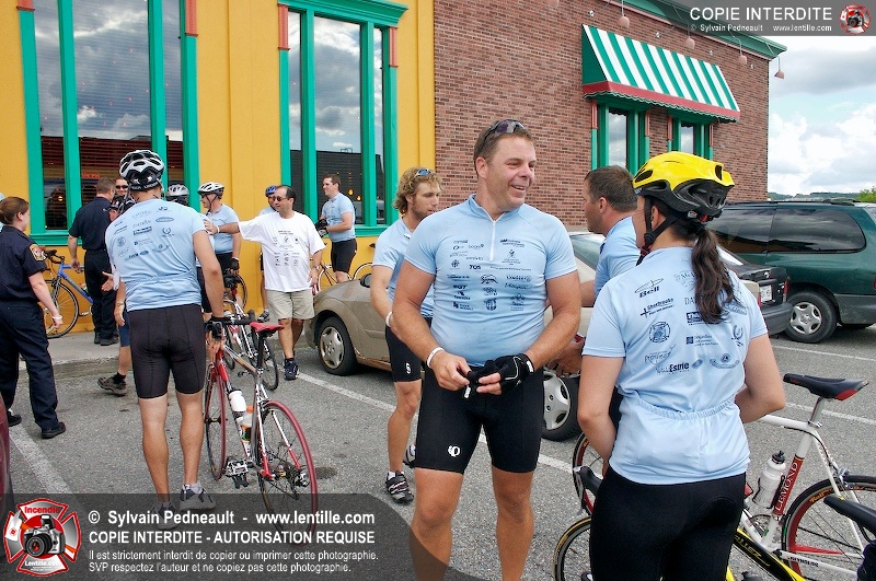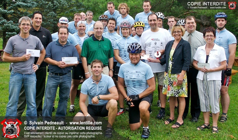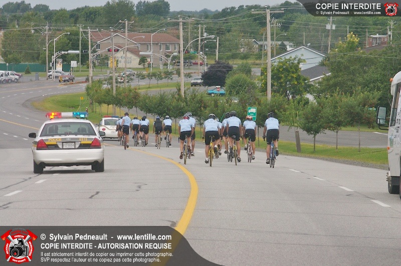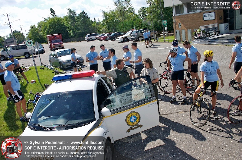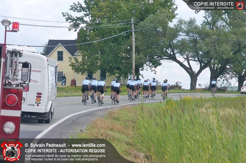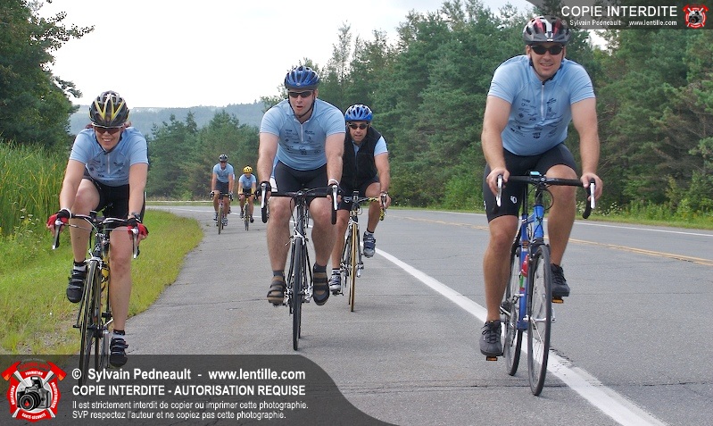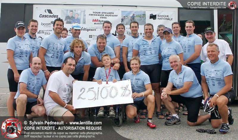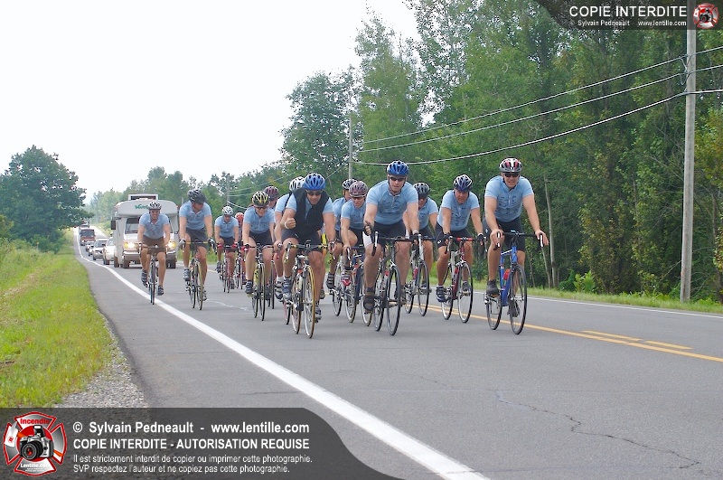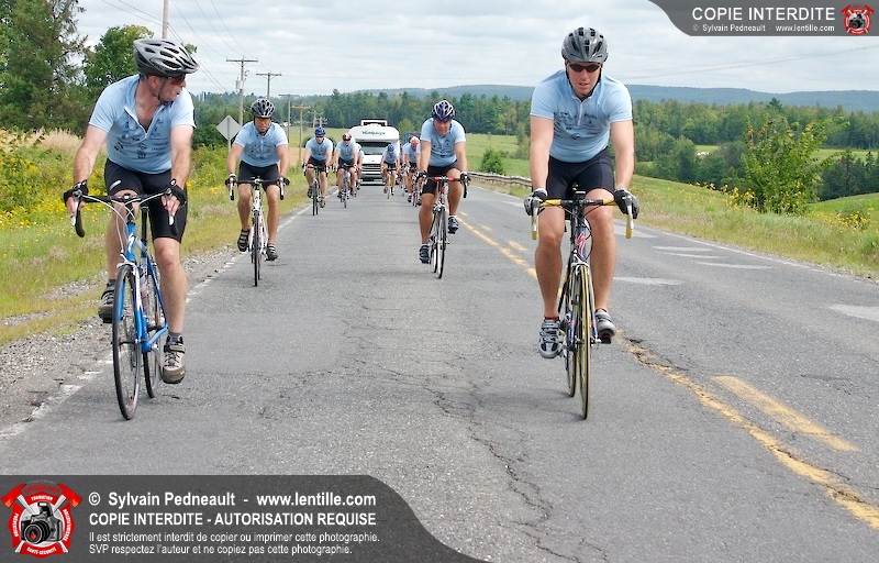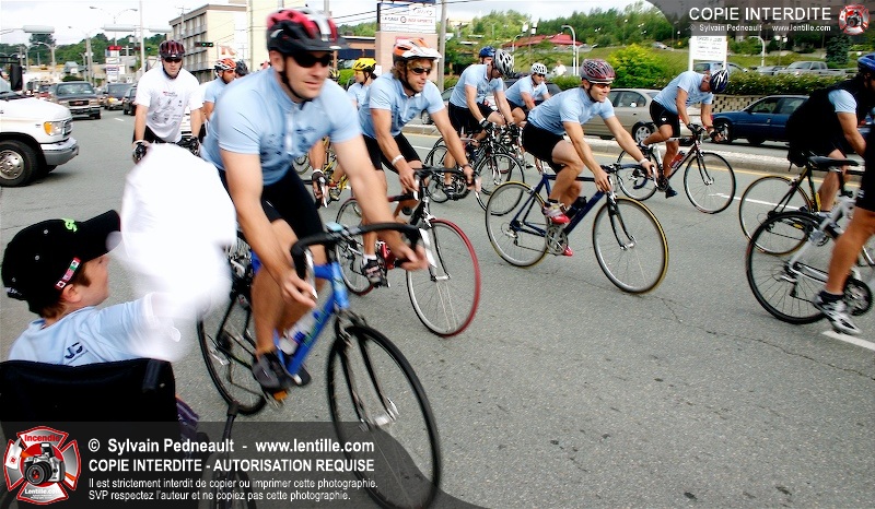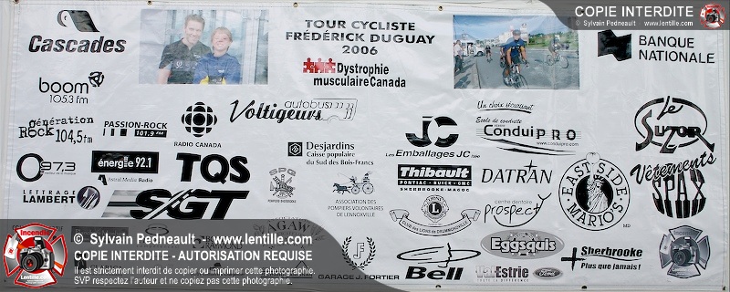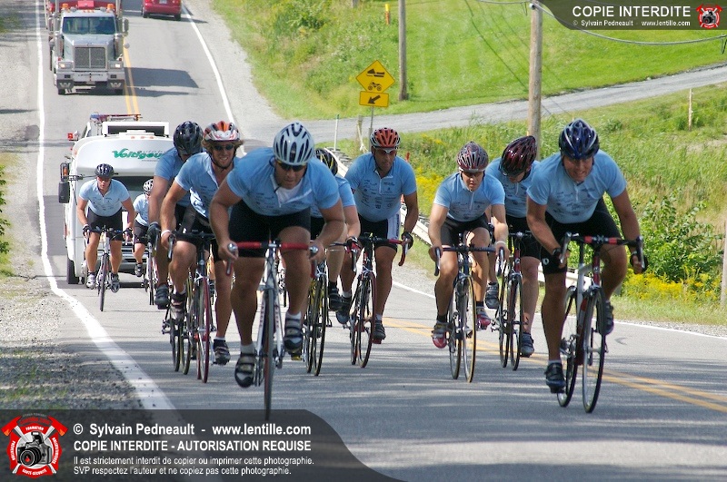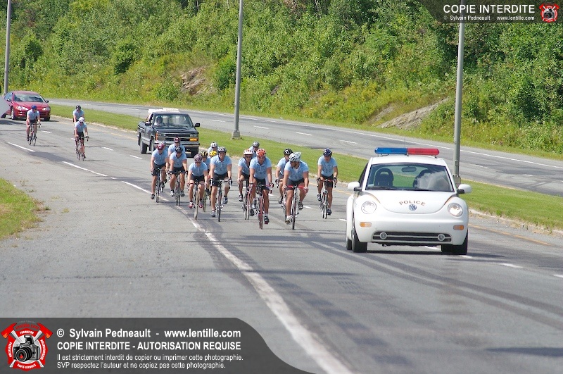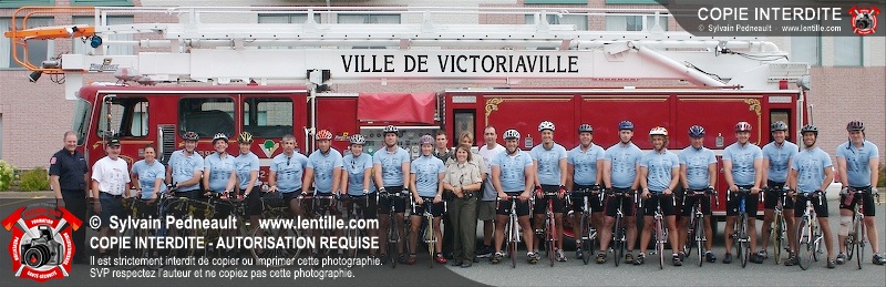 Dix-neuf policiers et pompiers ont roulé sur plus de 260 kilomčtres en deux jours ŕ l'occasion du Tour cycliste Frédéric Duguay 2006 de Dystrophie musculaire Canada. L'activité qui visait cette année ŕ amasser 15 000$ a plutôt récolté plus de 25 000$ pour la dystrophie musculaire! Photographie de l'événement: une commandite de Lentille.com!