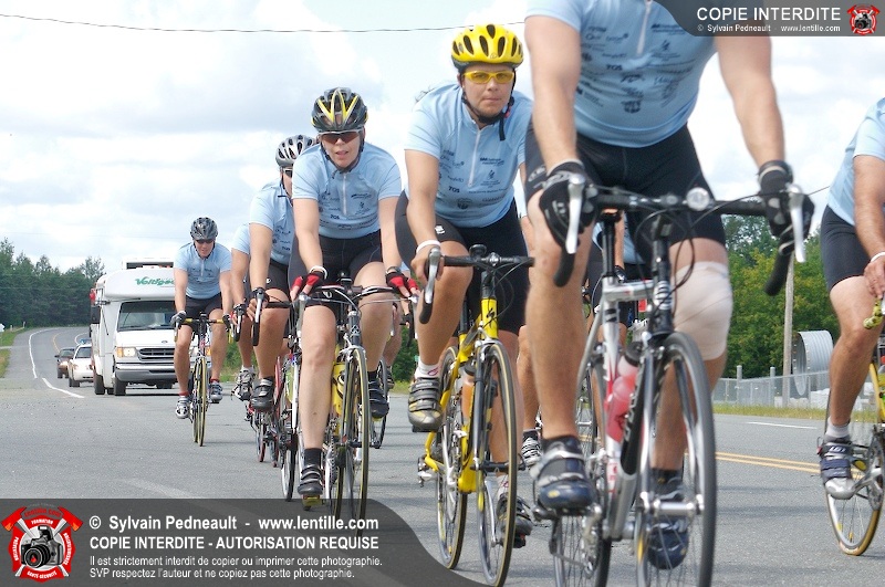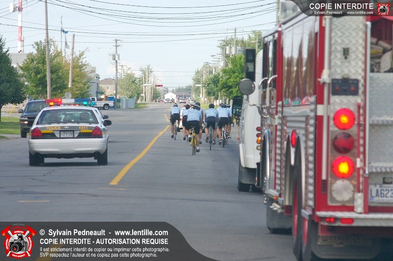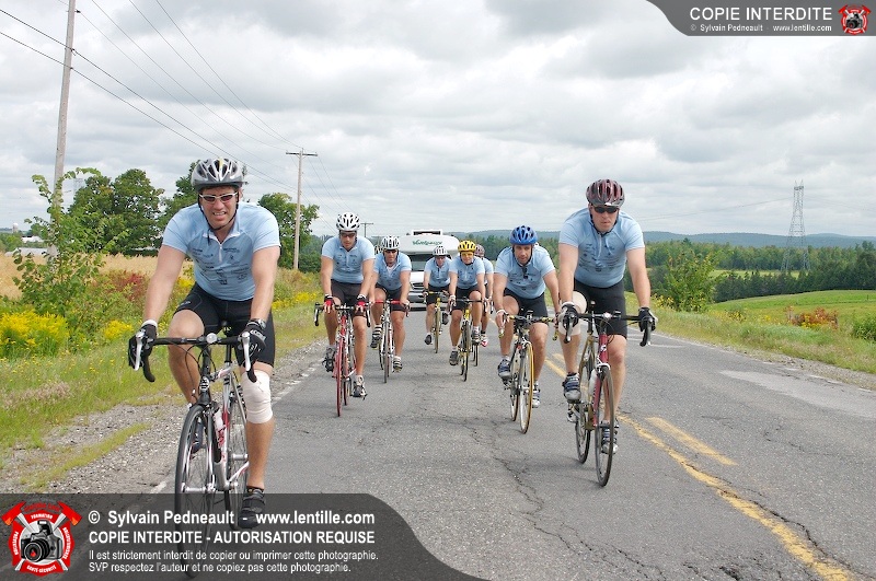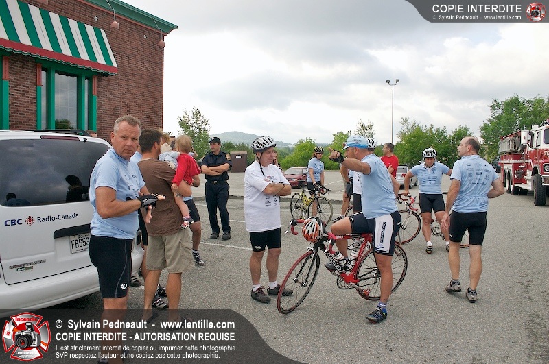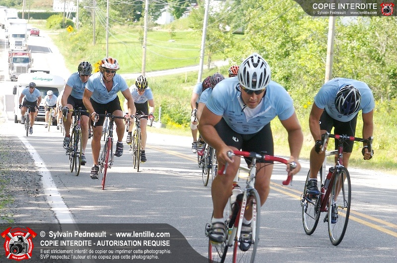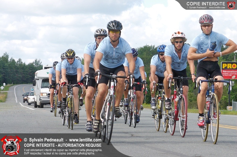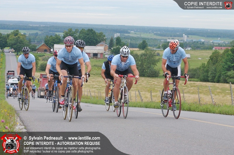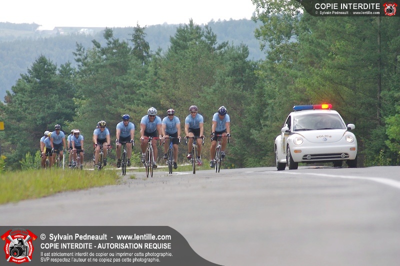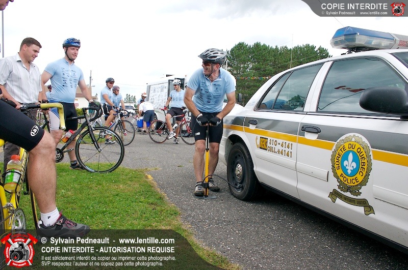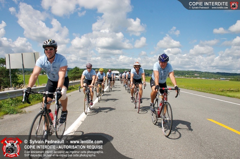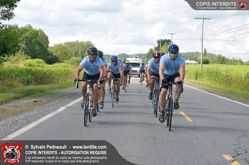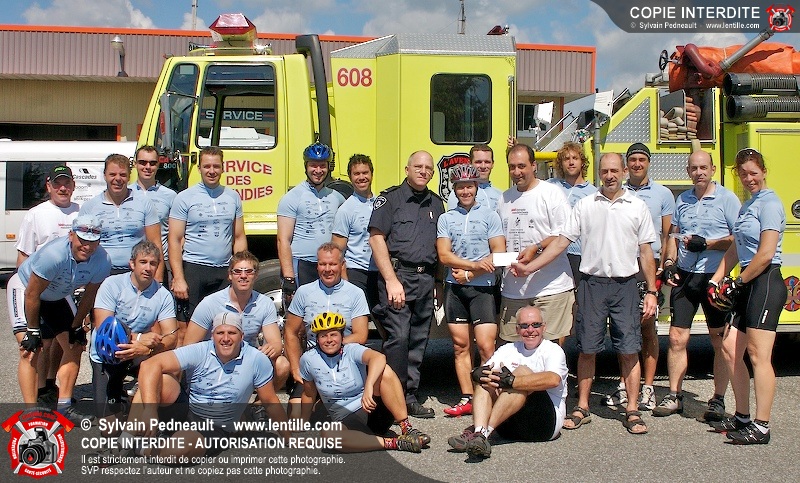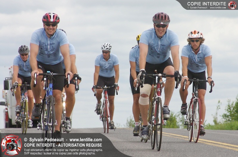 Dix-neuf policiers et pompiers ont roulé sur plus de 260 kilomčtres en deux jours ŕ l'occasion du Tour cycliste Frédéric Duguay 2006 de Dystrophie musculaire Canada. L'activité qui visait cette année ŕ amasser 15 000$ a plutôt récolté plus de 25 000$ pour la dystrophie musculaire! Photographie de l'événement: une commandite de Lentille.com!