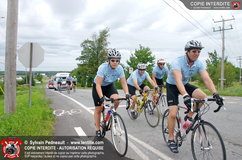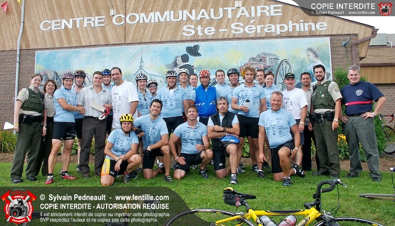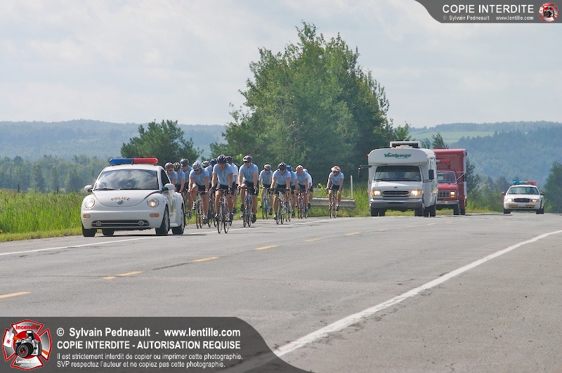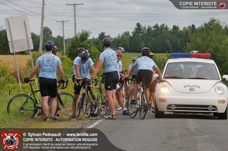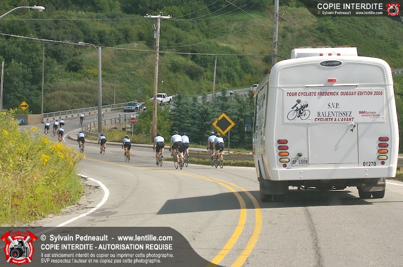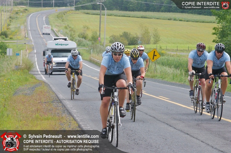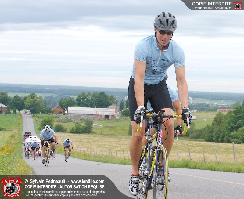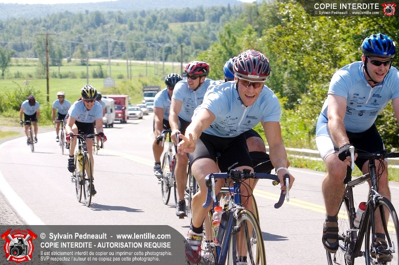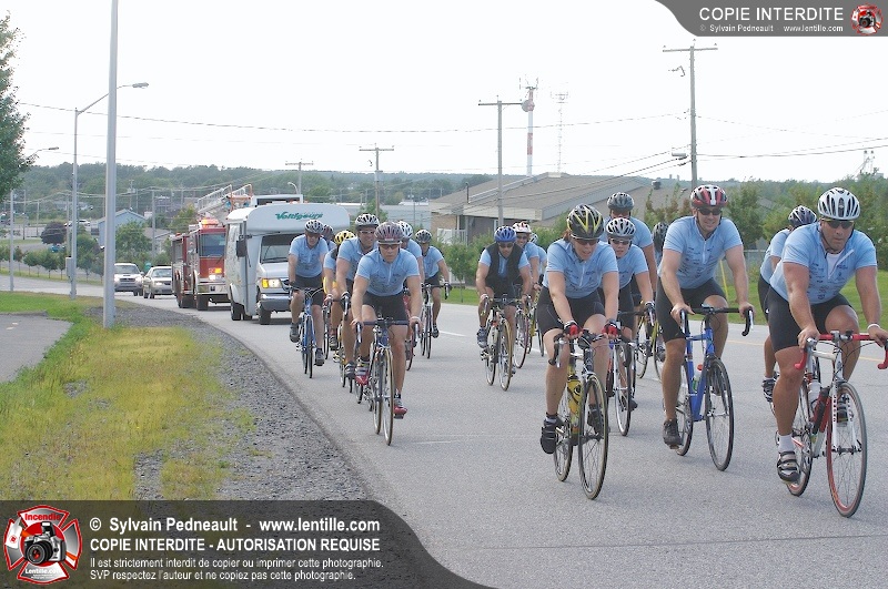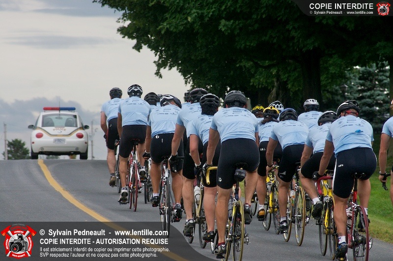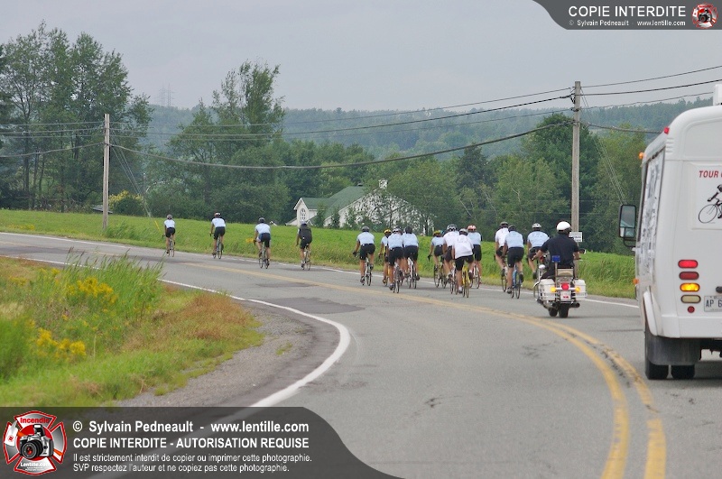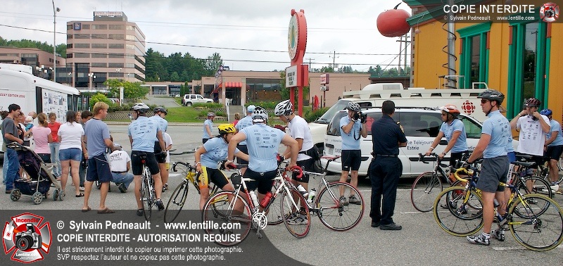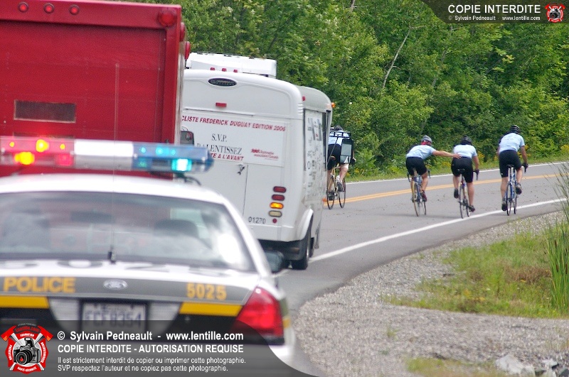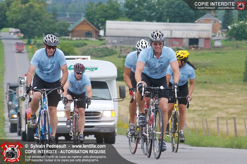 Dix-neuf policiers et pompiers ont roulé sur plus de 260 kilomčtres en deux jours ŕ l'occasion du Tour cycliste Frédéric Duguay 2006 de Dystrophie musculaire Canada. L'activité qui visait cette année ŕ amasser 15 000$ a plutôt récolté plus de 25 000$ pour la dystrophie musculaire! Photographie de l'événement: une commandite de Lentille.com!