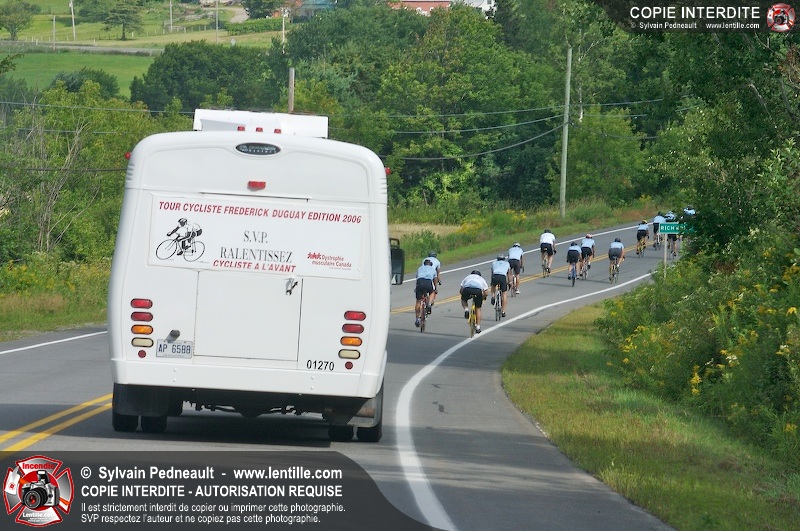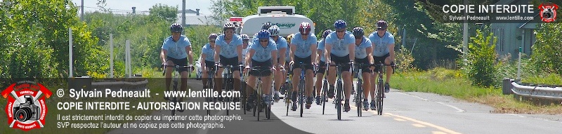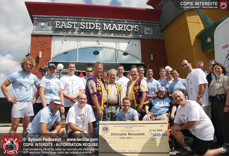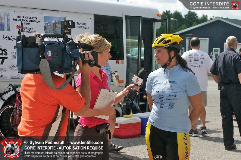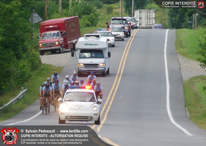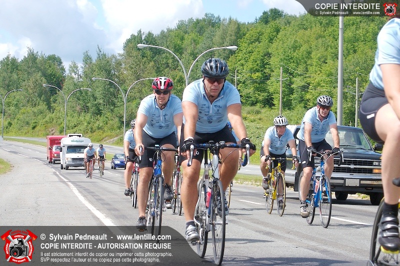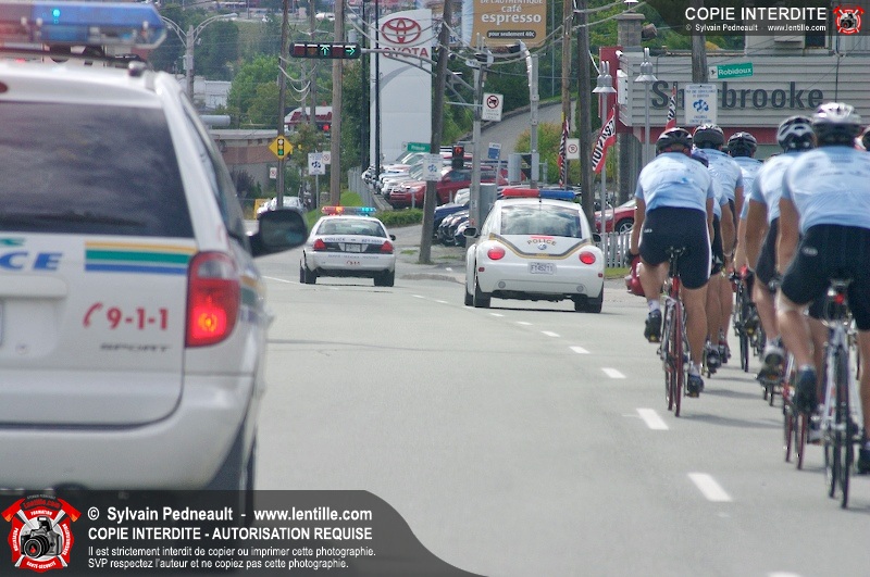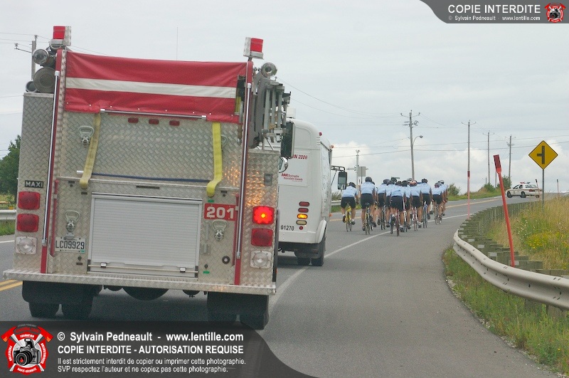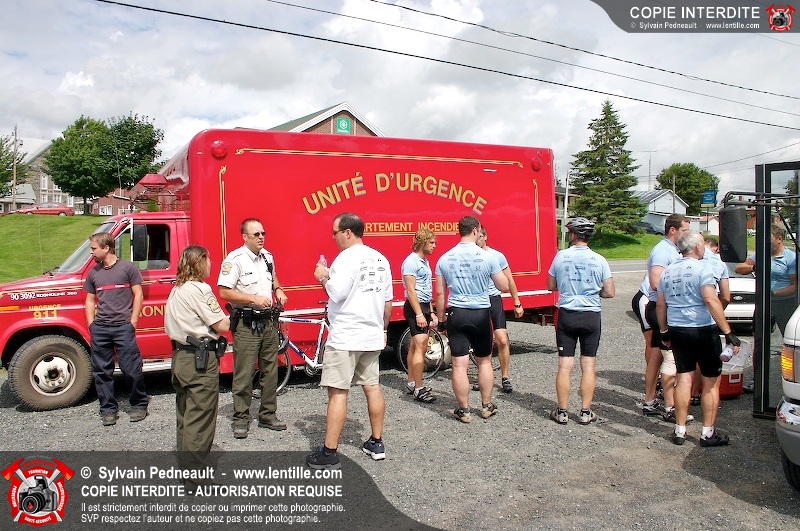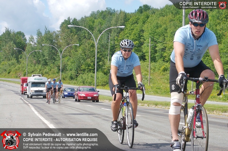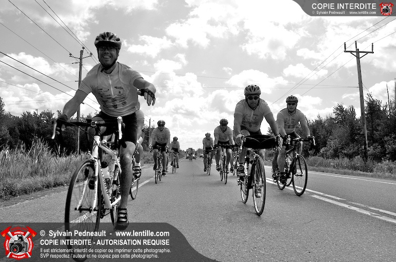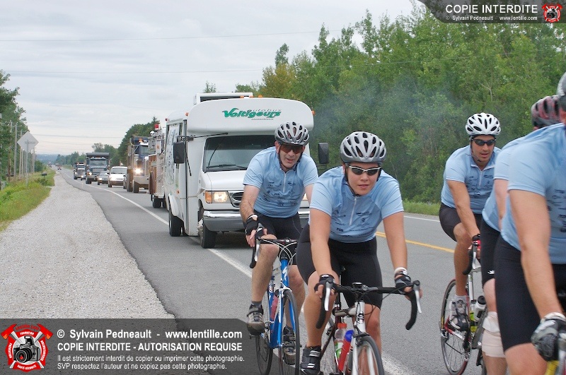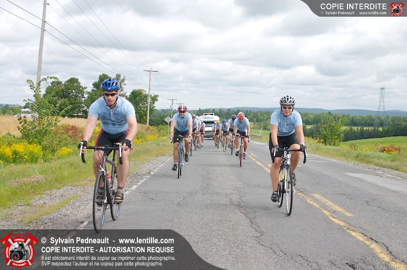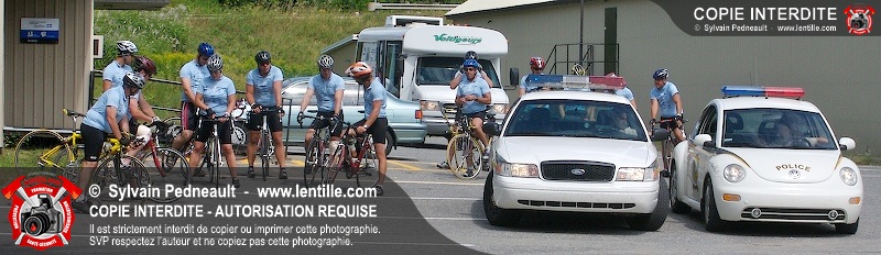 Dix-neuf policiers et pompiers ont roulé sur plus de 260 kilomčtres en deux jours ŕ l'occasion du Tour cycliste Frédéric Duguay 2006 de Dystrophie musculaire Canada. L'activité qui visait cette année ŕ amasser 15 000$ a plutôt récolté plus de 25 000$ pour la dystrophie musculaire! Photographie de l'événement: une commandite de Lentille.com!