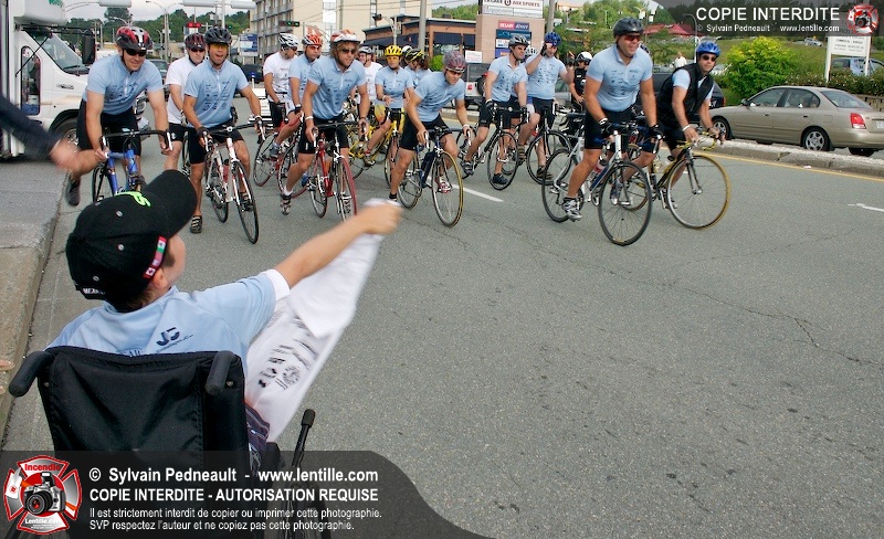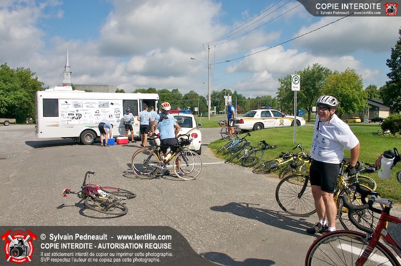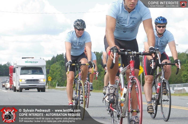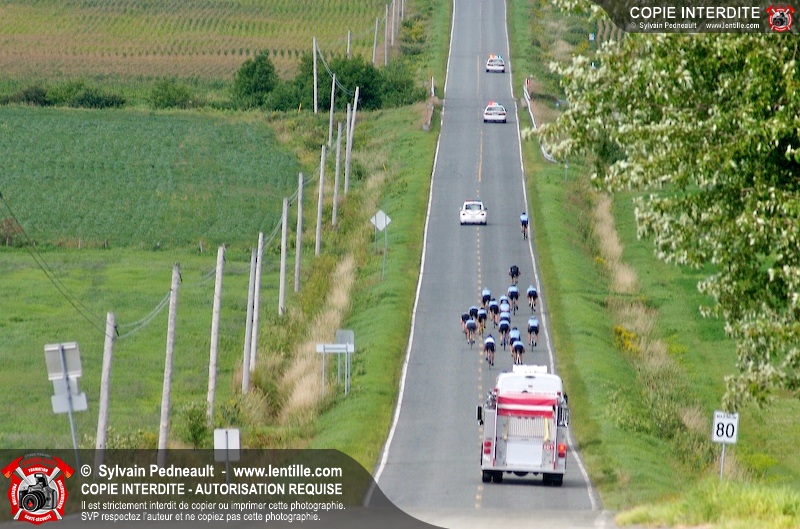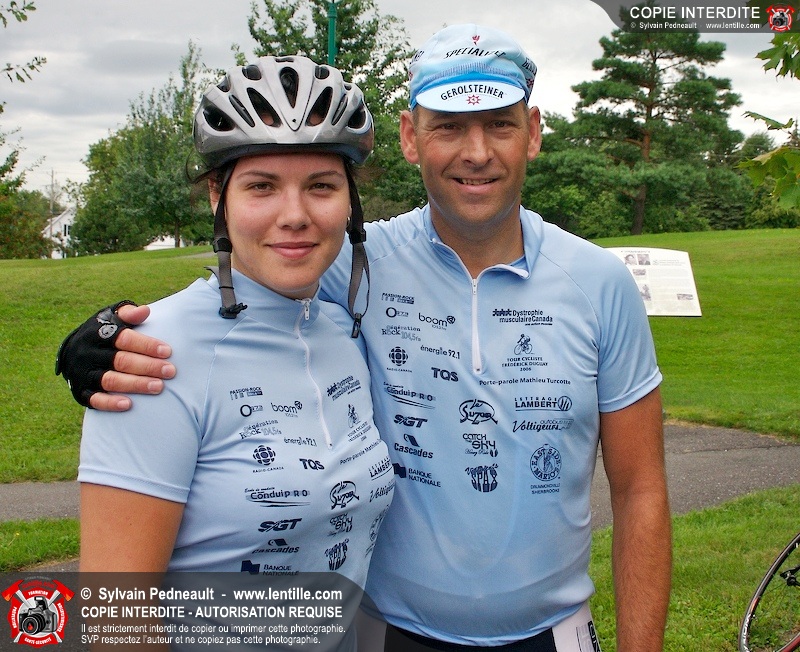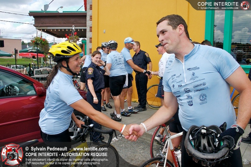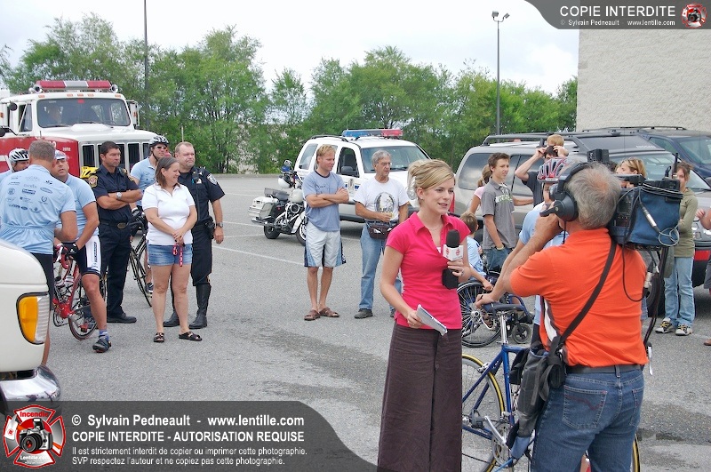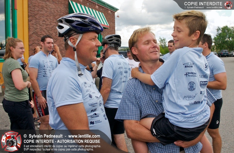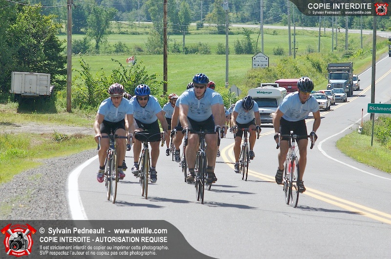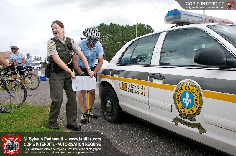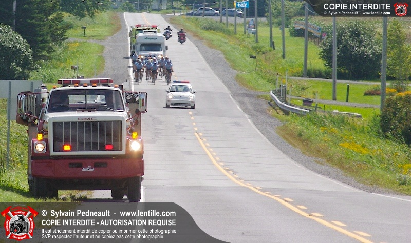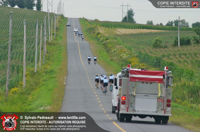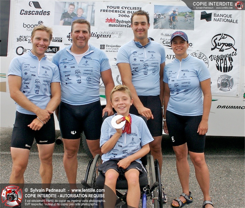 Dix-neuf policiers et pompiers ont roulé sur plus de 260 kilomčtres en deux jours ŕ l'occasion du Tour cycliste Frédéric Duguay 2006 de Dystrophie musculaire Canada. L'activité qui visait cette année ŕ amasser 15 000$ a plutôt récolté plus de 25 000$ pour la dystrophie musculaire! Photographie de l'événement: une commandite de Lentille.com!