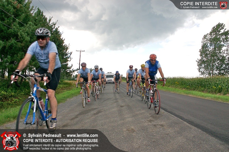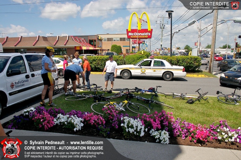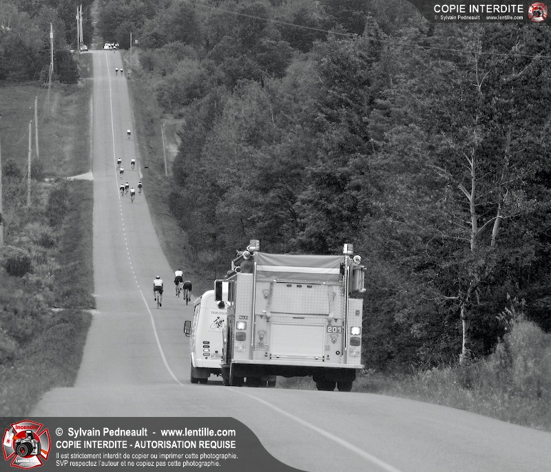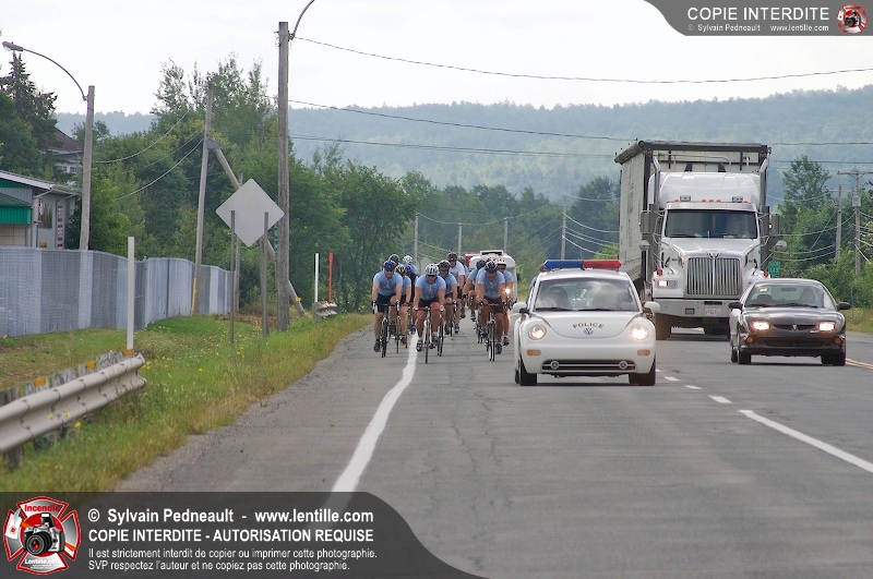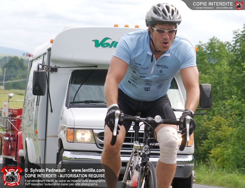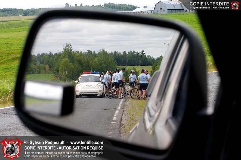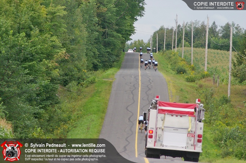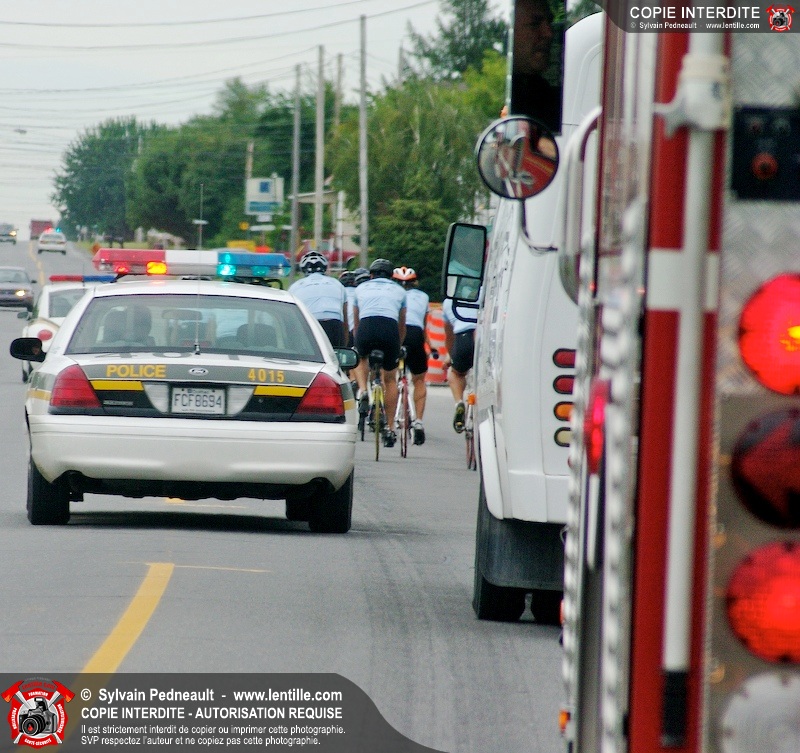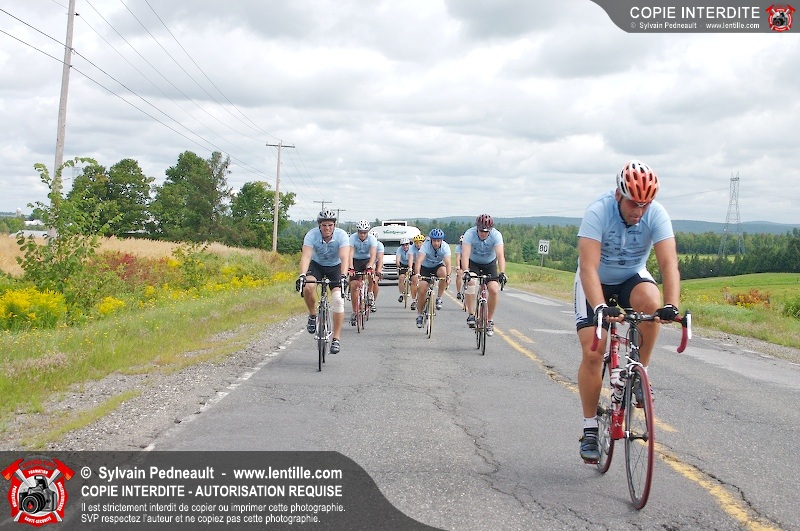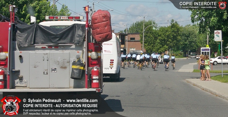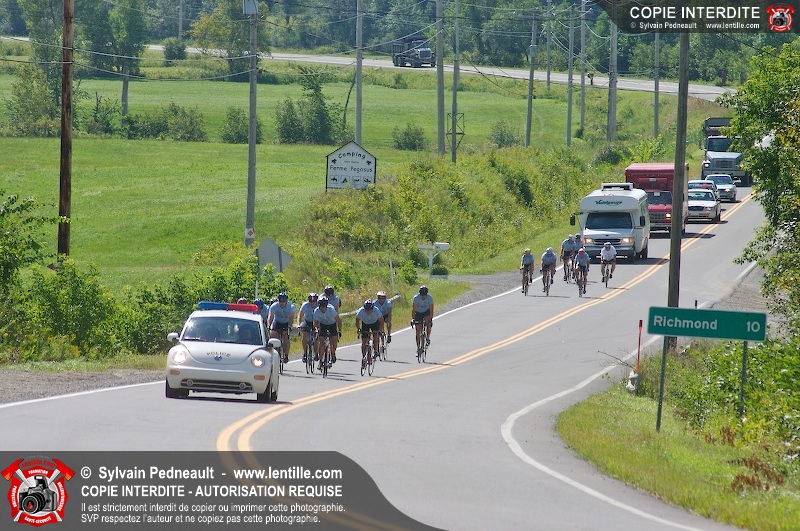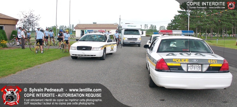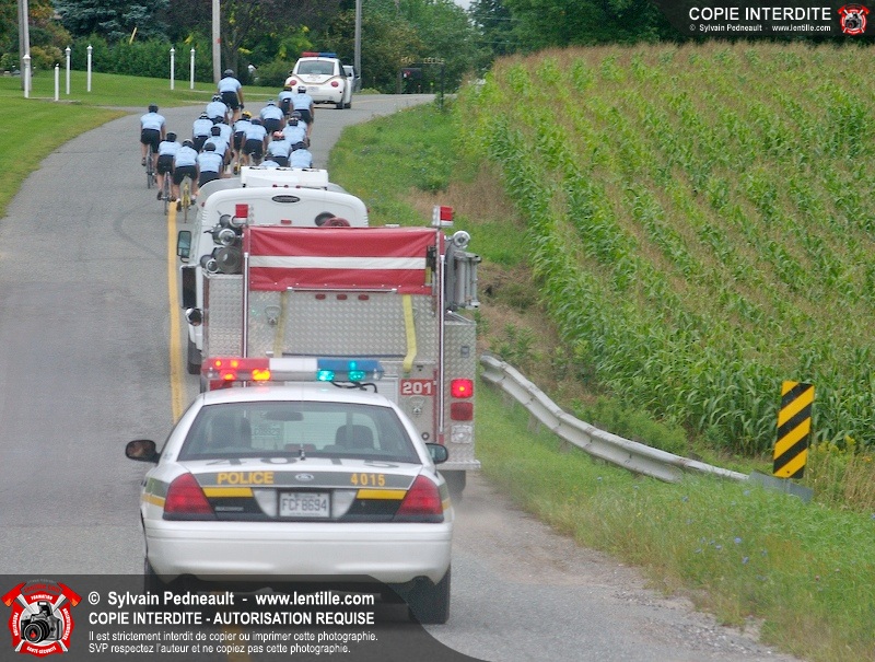 Dix-neuf policiers et pompiers ont roulé sur plus de 260 kilomčtres en deux jours ŕ l'occasion du Tour cycliste Frédéric Duguay 2006 de Dystrophie musculaire Canada. L'activité qui visait cette année ŕ amasser 15 000$ a plutôt récolté plus de 25 000$ pour la dystrophie musculaire! Photographie de l'événement: une commandite de Lentille.com!