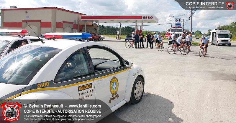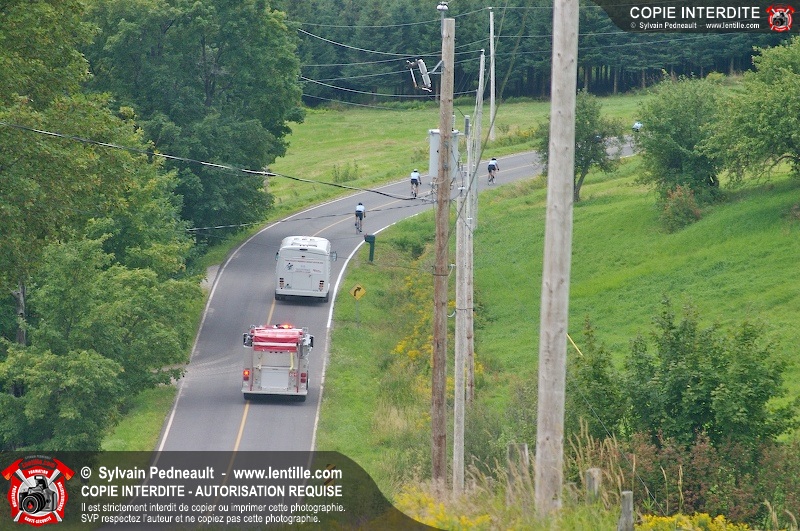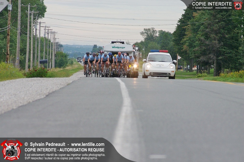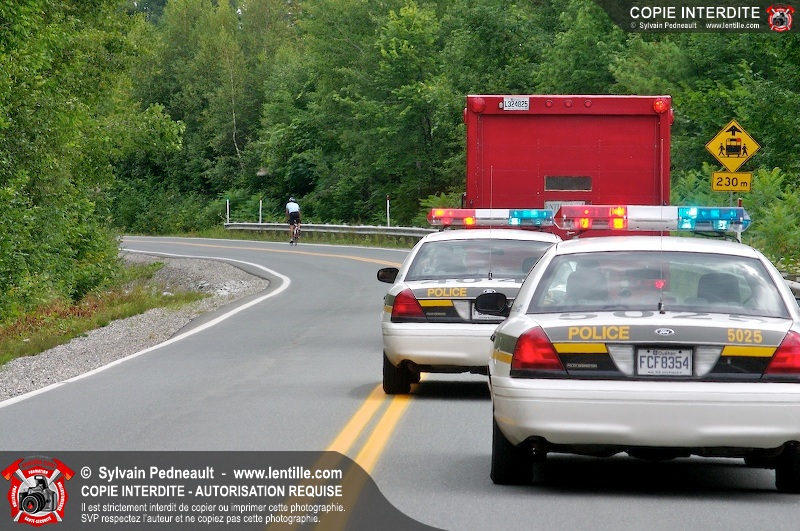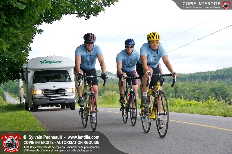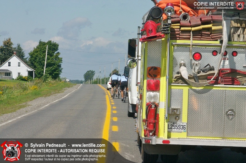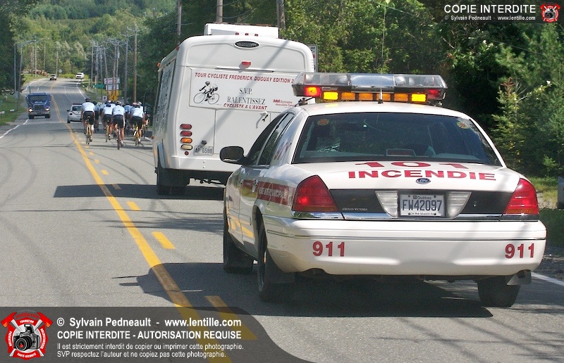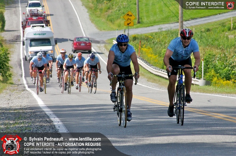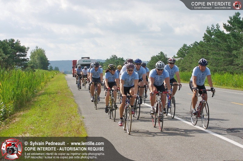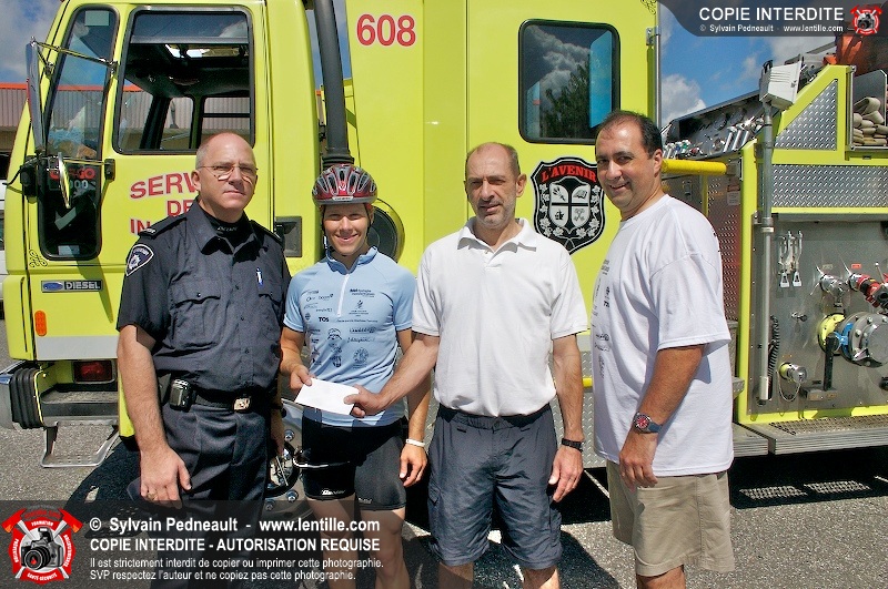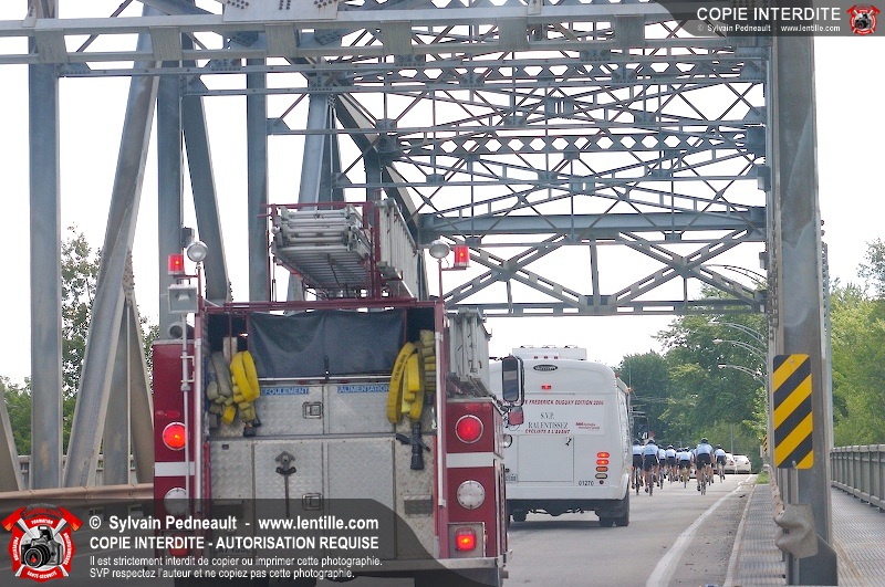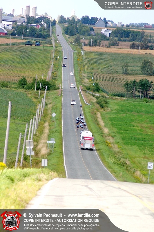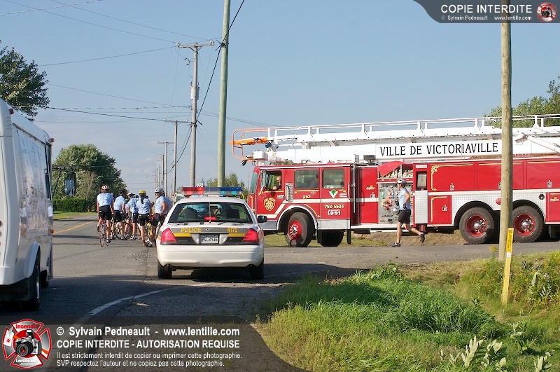 Dix-neuf policiers et pompiers ont roulé sur plus de 260 kilomčtres en deux jours ŕ l'occasion du Tour cycliste Frédéric Duguay 2006 de Dystrophie musculaire Canada. L'activité qui visait cette année ŕ amasser 15 000$ a plutôt récolté plus de 25 000$ pour la dystrophie musculaire! Photographie de l'événement: une commandite de Lentille.com!