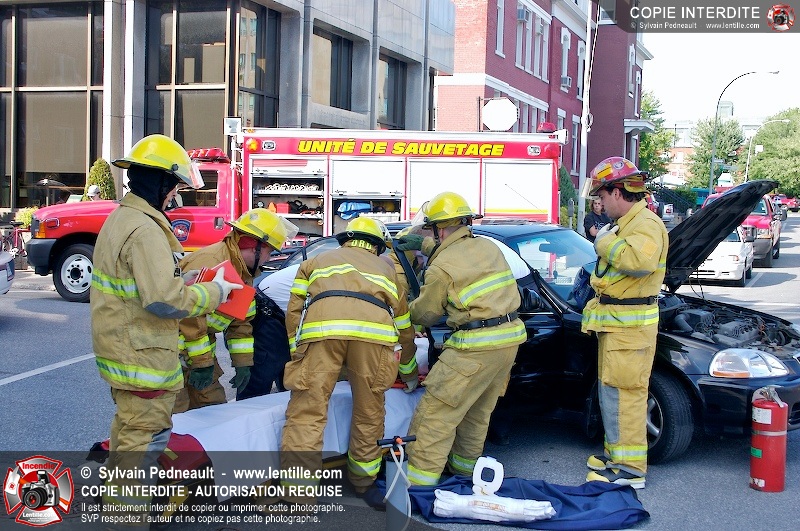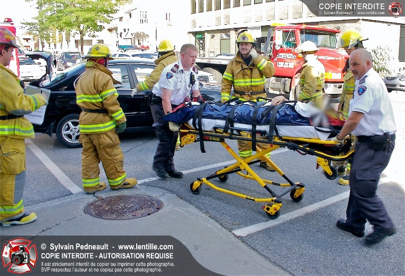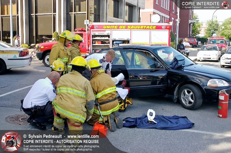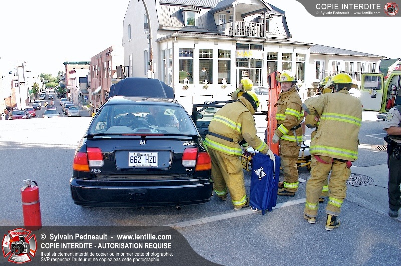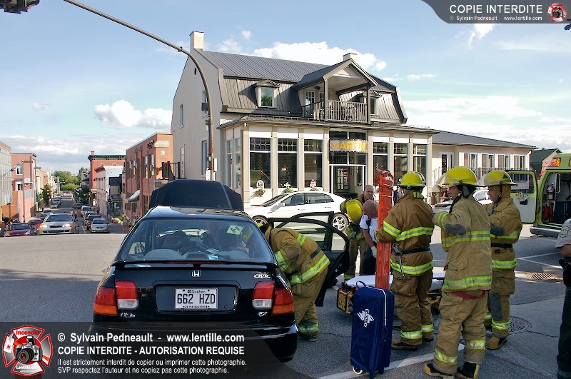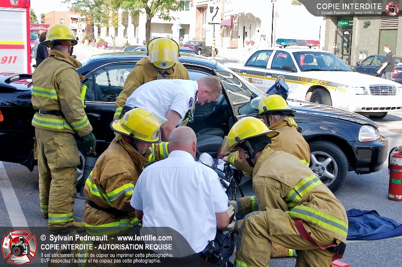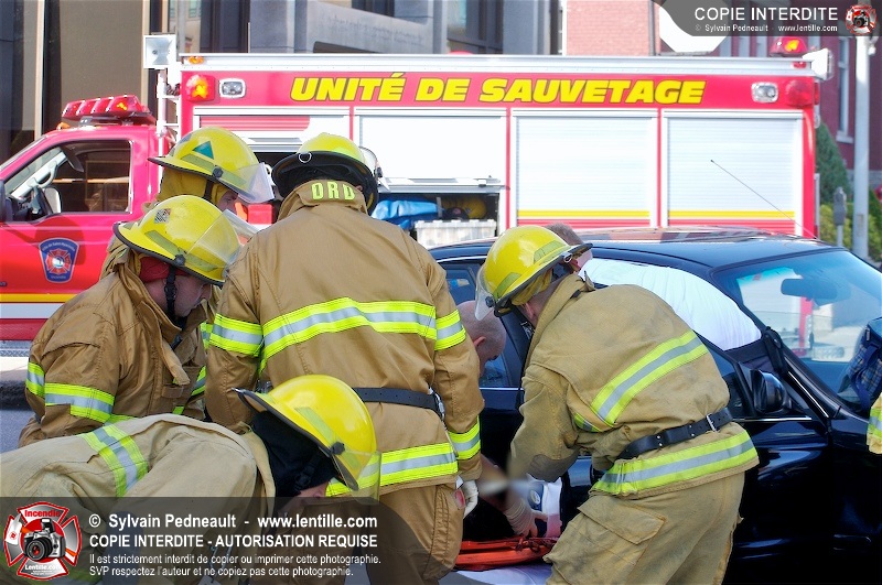 Une collision au coin des rues Girouard Ouest et Ste-Anne entraîne la mobilisation de l'équipe de désincarcération de Saint-Hyacinthe, ainsi que des paramédics et des policiers.