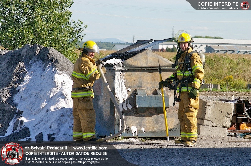 Le 205 et le 401 se rendent dans la cour d'une entreprise sur le boulevard Laurier pour un feu de conteneur.