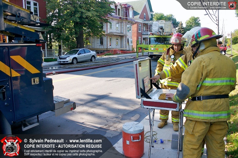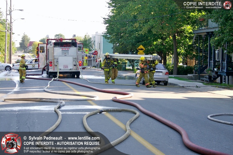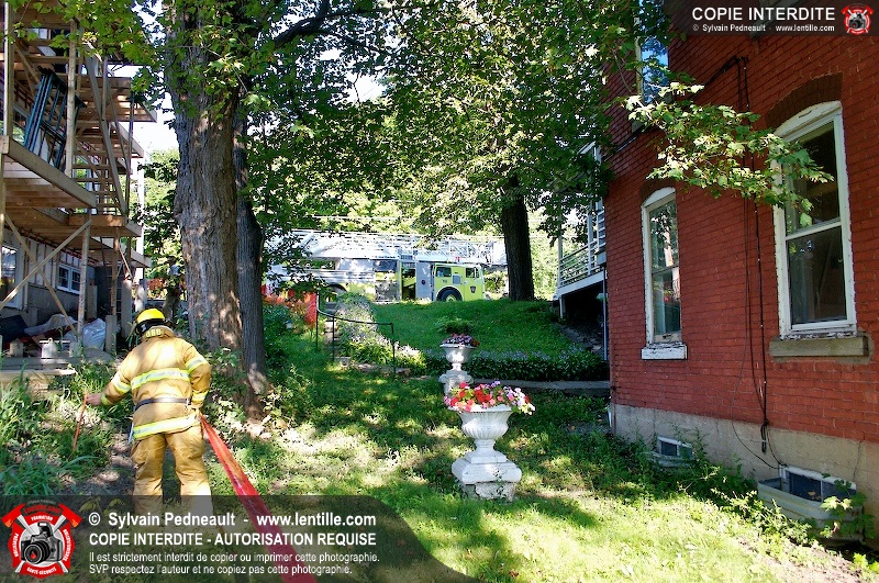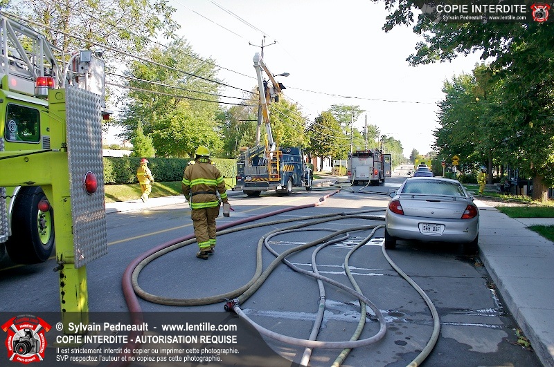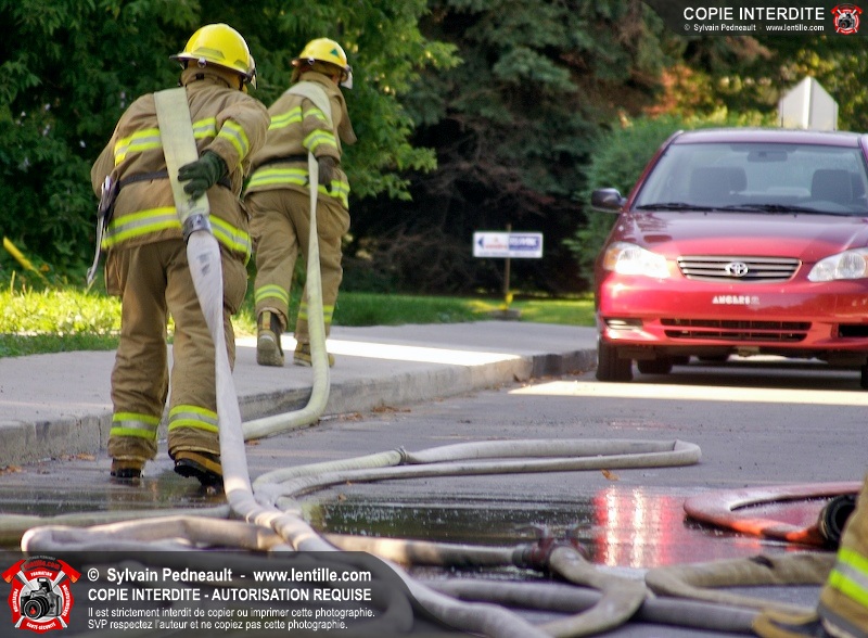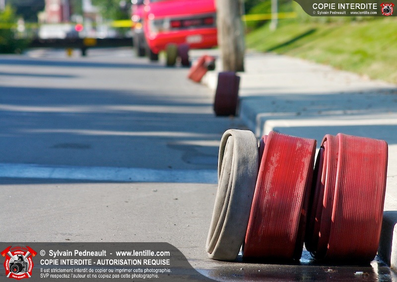 Une grande colonne de fumée noire au dessus de Saint-Hyacinthe laissait présager le pire quand la centrale CAUCA a signalé un feu de résidence sur la rue Girouard. Aussitôt arrivés sur les lieux, les pompiers ont déclenché un 10-07 suivi d'un 10-12. La situation est rapidement descendue en 10-08 alors que le feu ne touchait que des éléments extérieurs à la bâtisse.