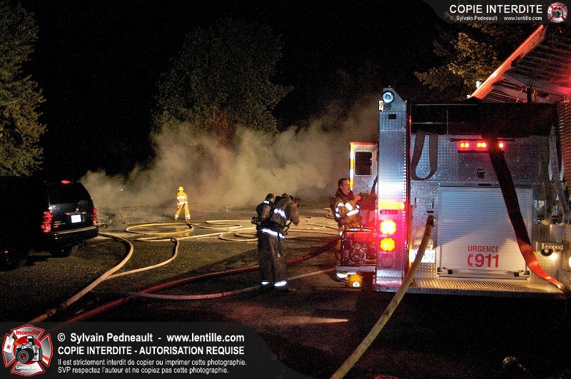 Les pompiers de Saint-Hyacinthe sonnent une première alarme pour combattre un incendie dans un garage.