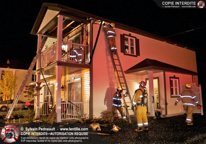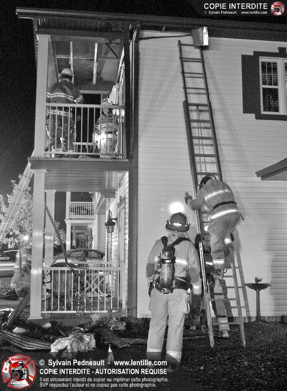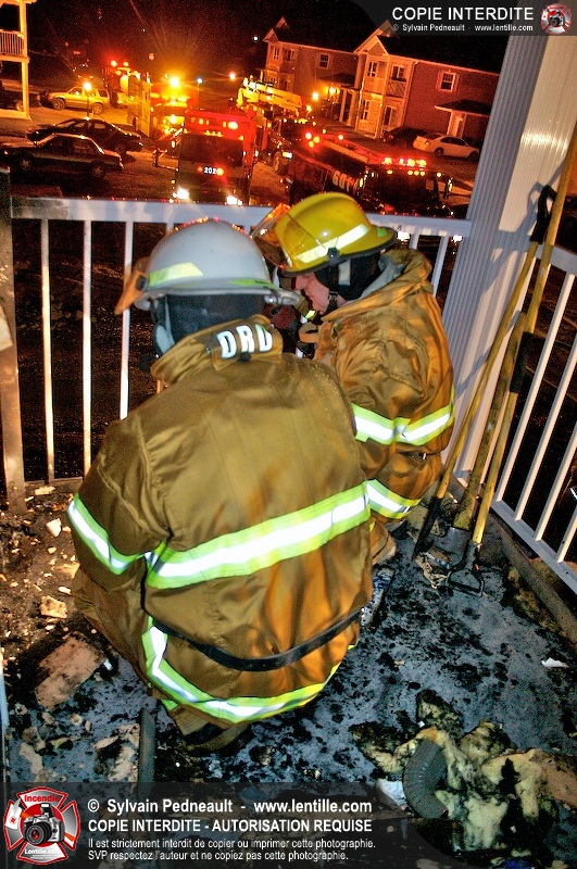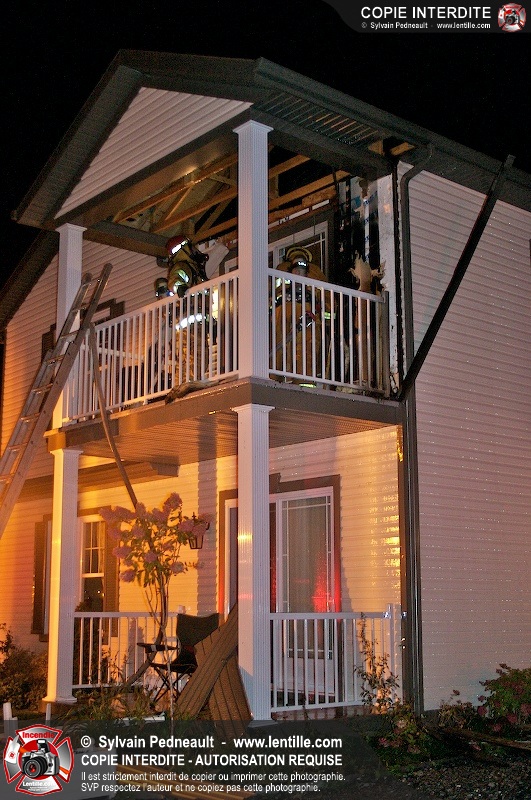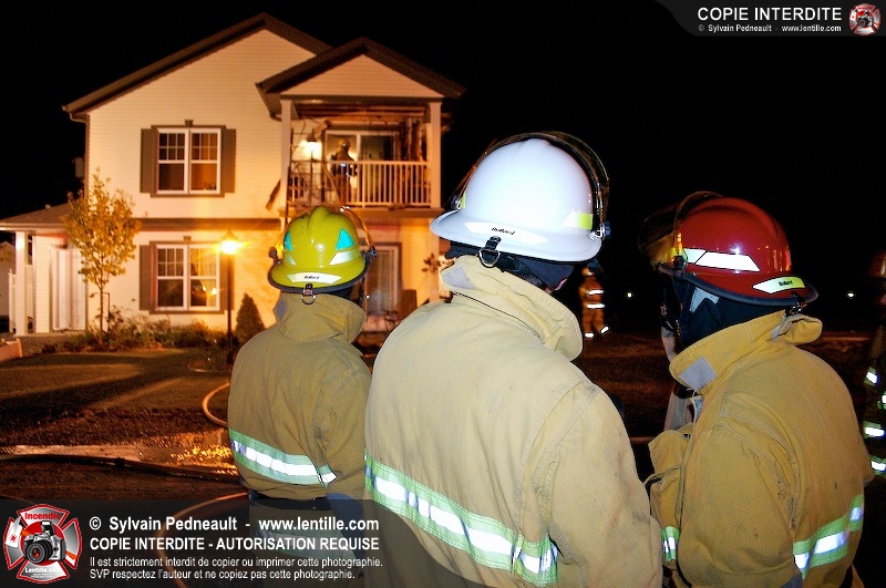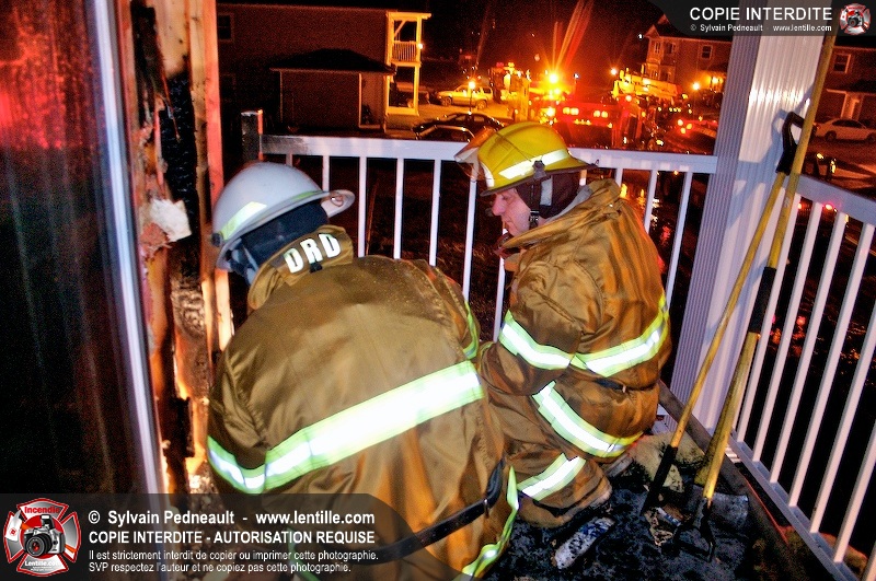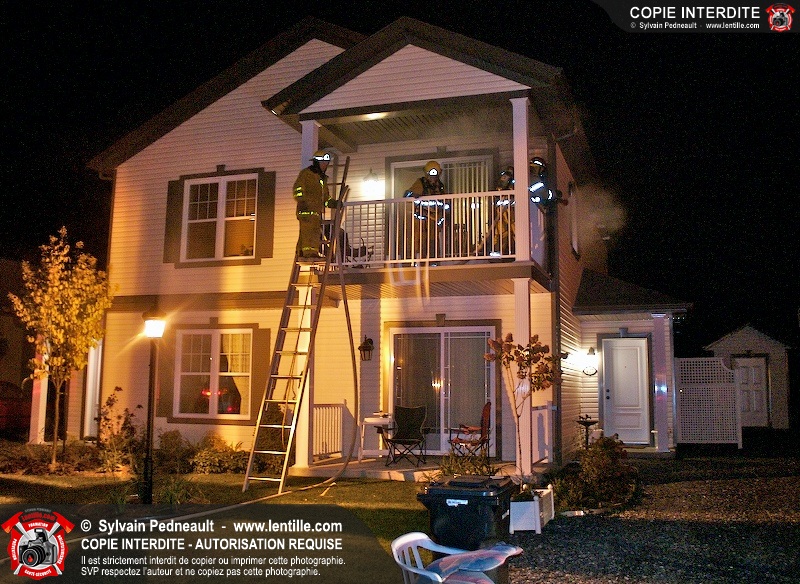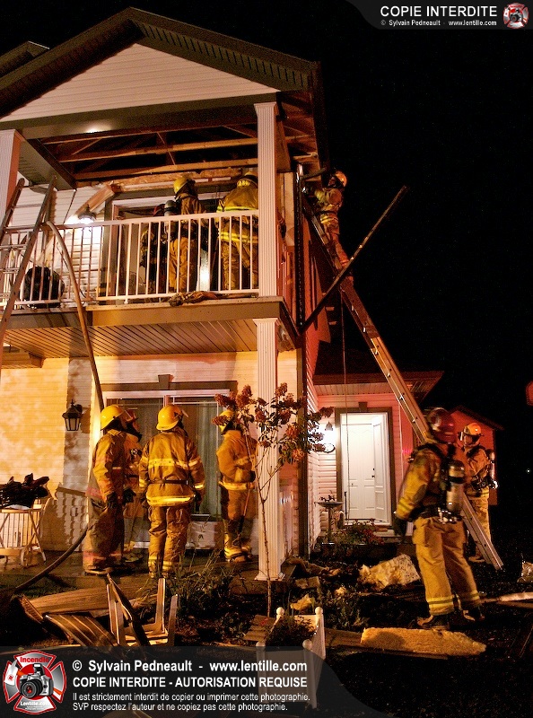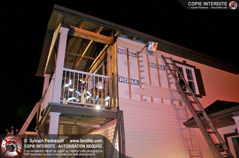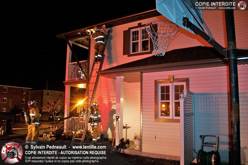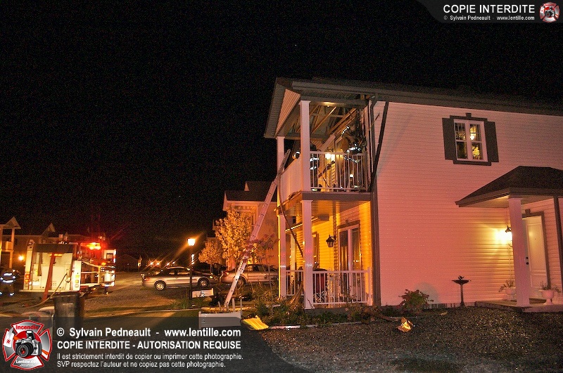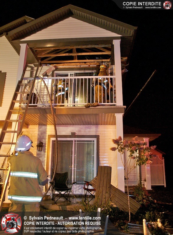 Les pompiers de Saint-Hyacinthe sont appelés à La Présentation pour un incendie de résidence (fumée et flammes apparentes). Heureusement, l'incendie n'a principalement touché que le balcon et le mur extérieur.