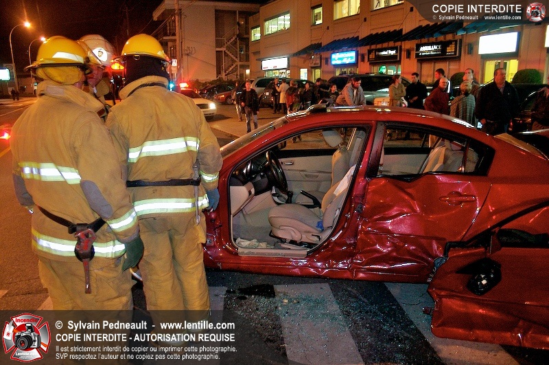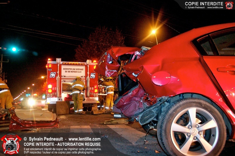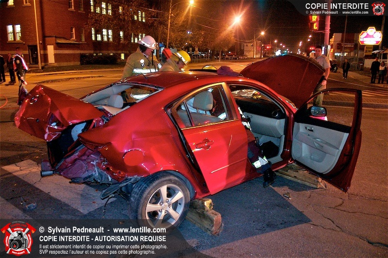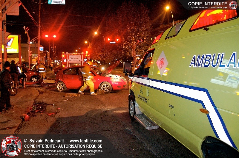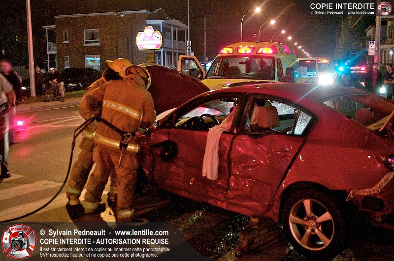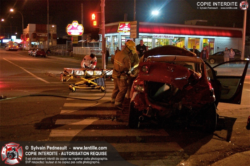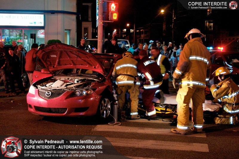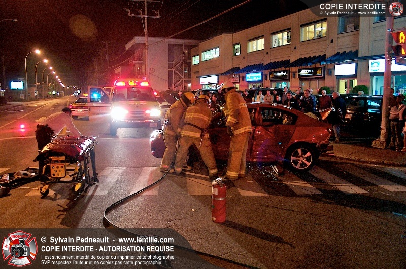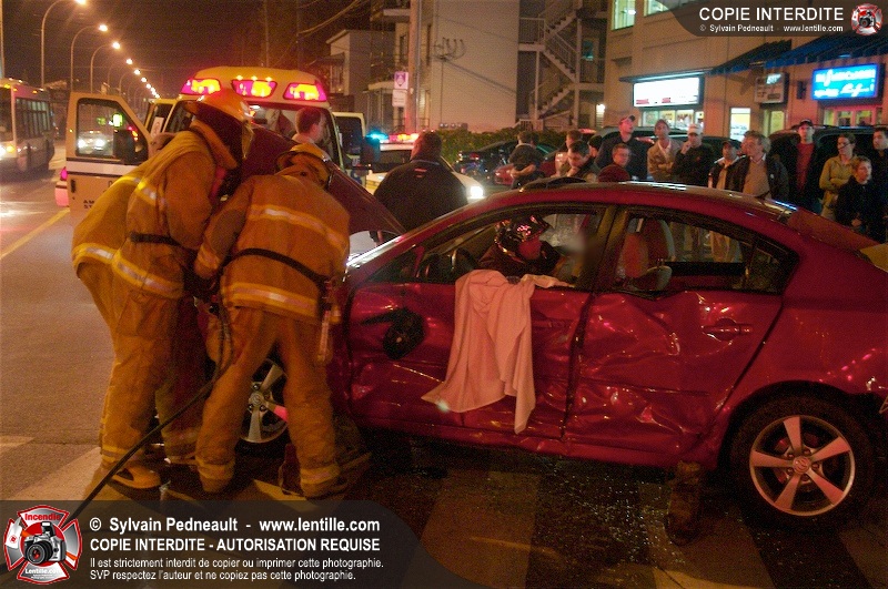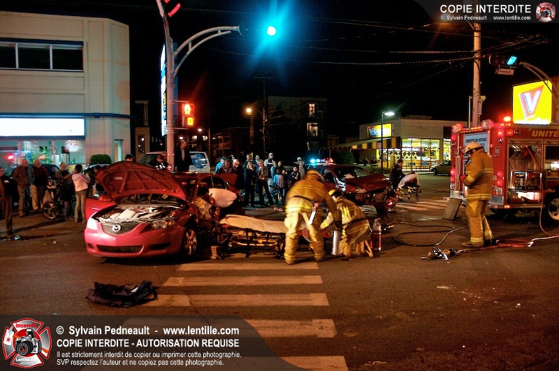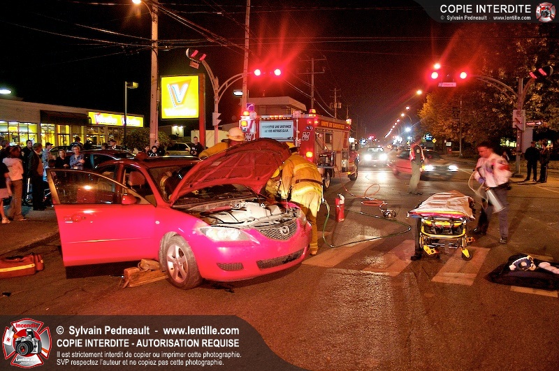 L'unité de désincarcération du SSI de Saint-Hyacinthe est intervenue à l'angle des boulevard Dessaules et Choquette pour un accident impliquant deux véhicules et un bloc de ciment.