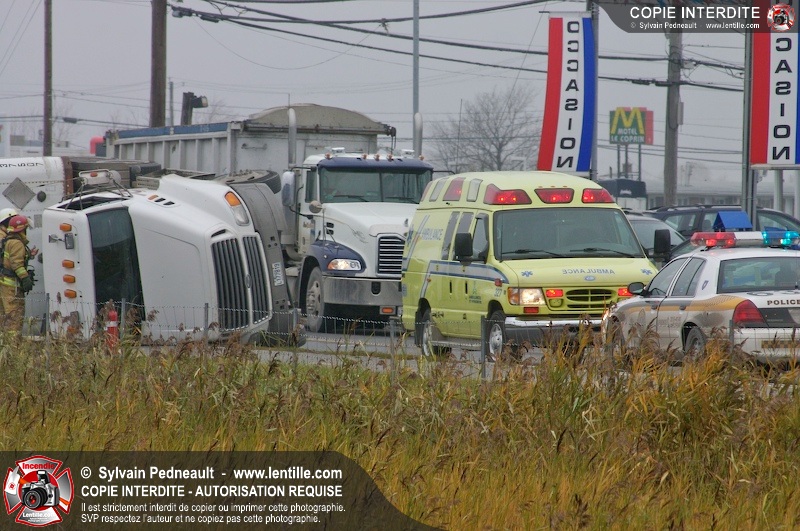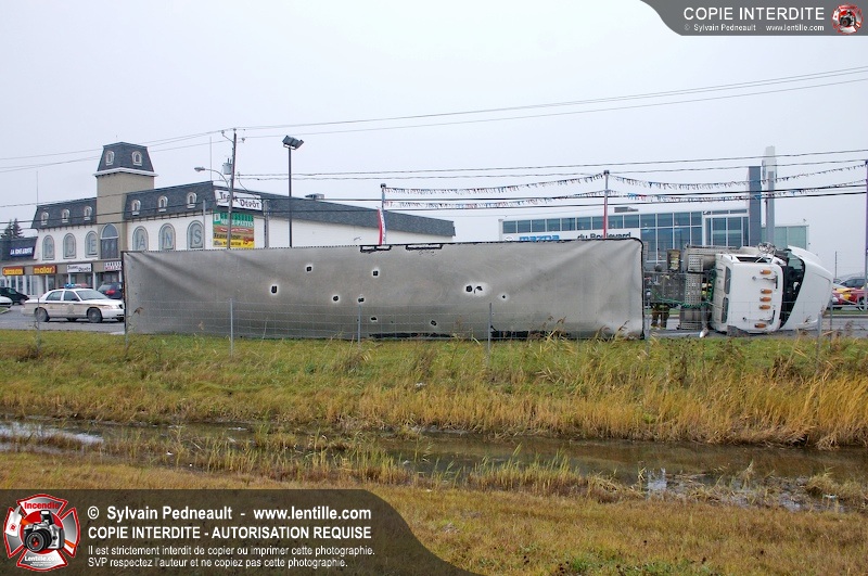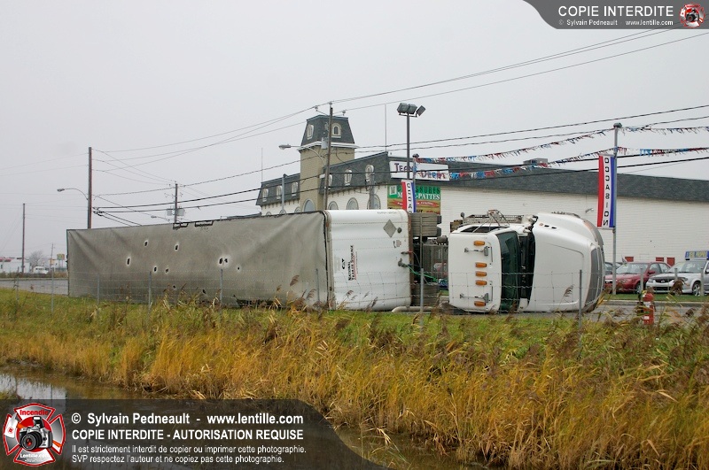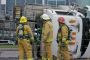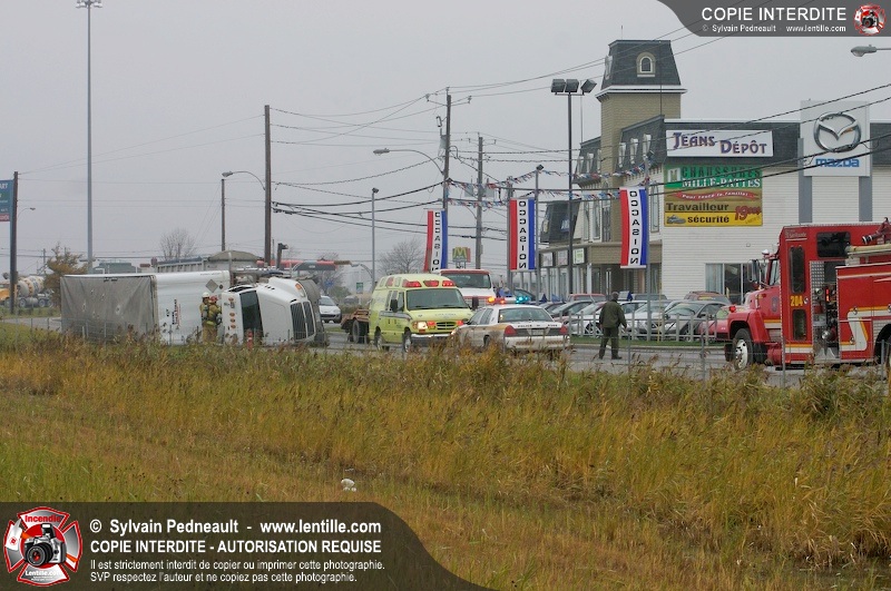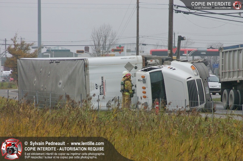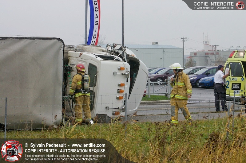 Les pompiers sont demandés à titre préventif sur un accident impliquant un camion renversé sur le côté.
