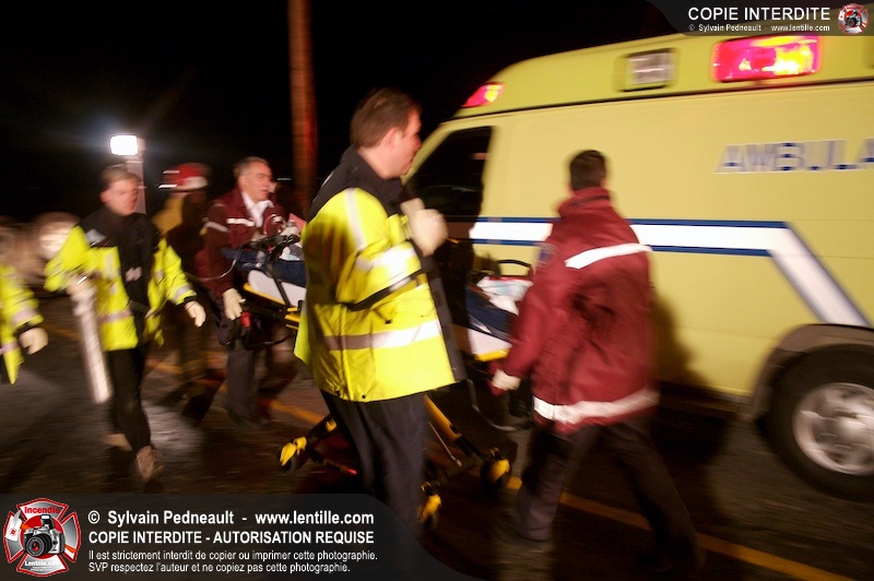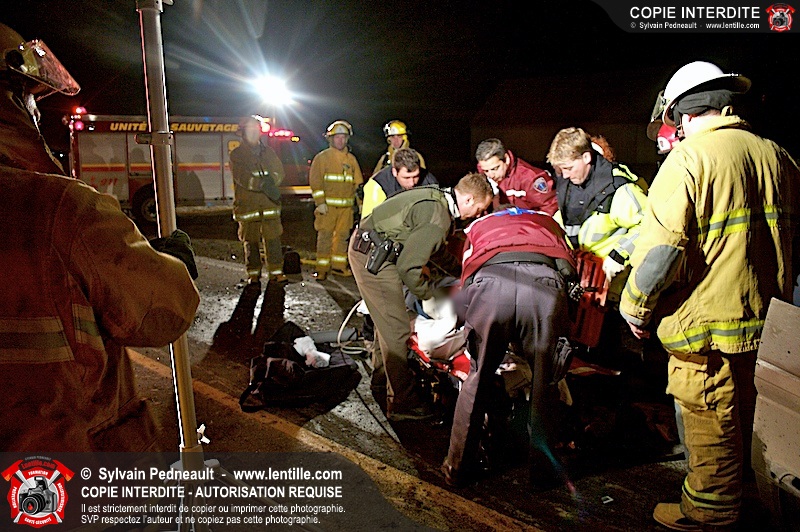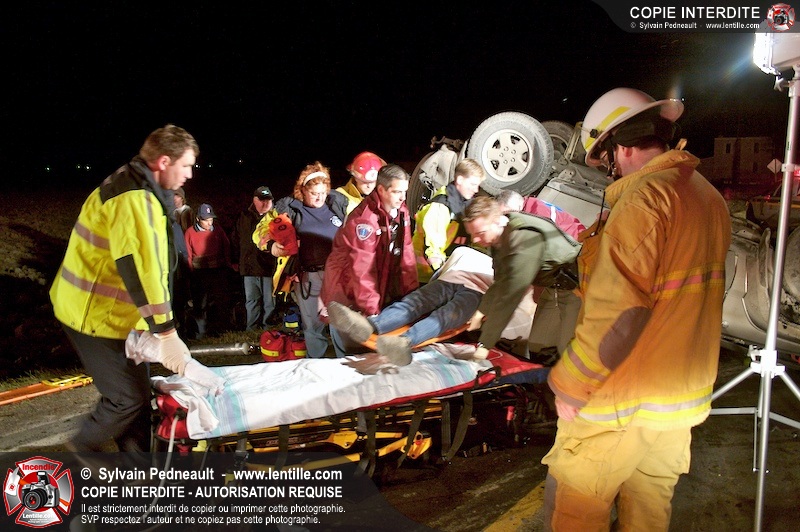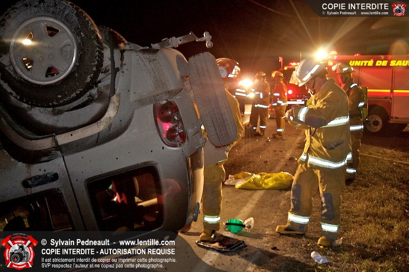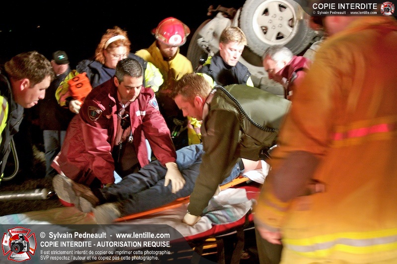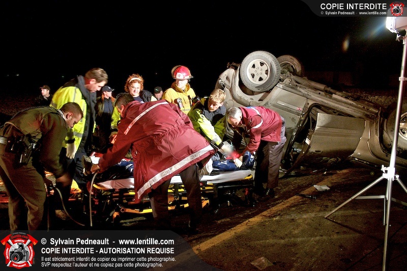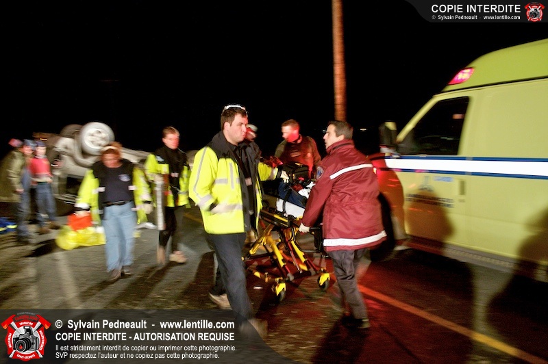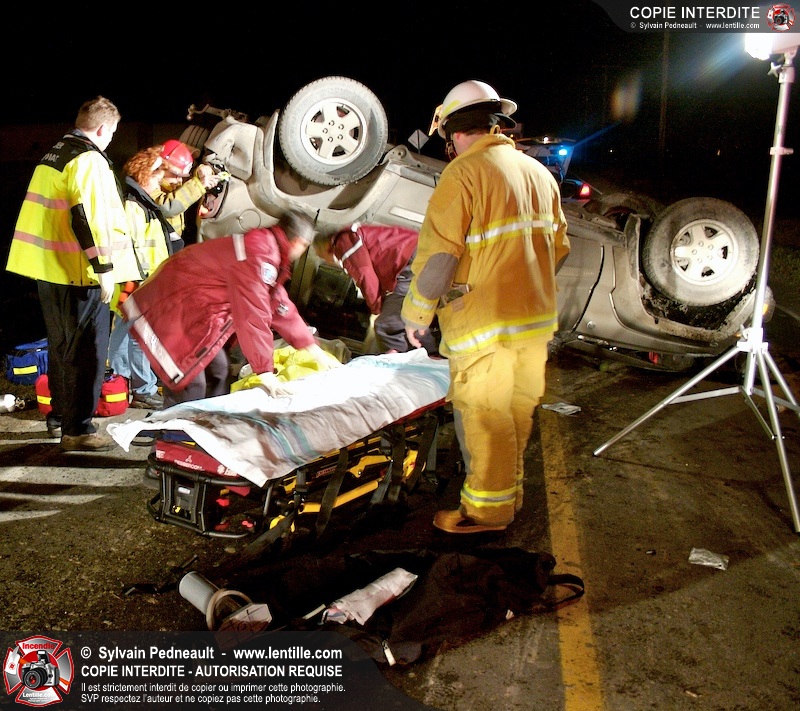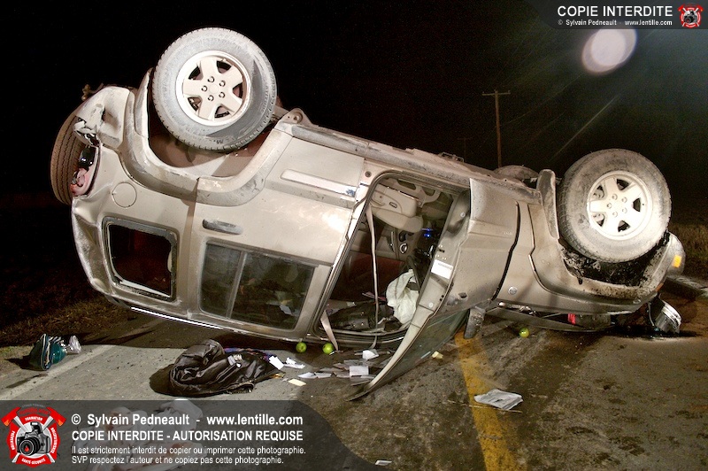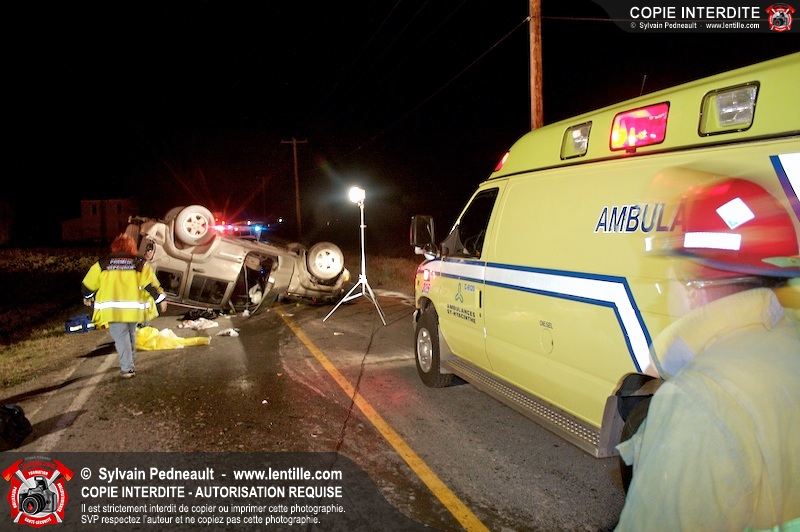 Les pompiers et les premiers répondants de St-Pie, l'unité de désincarcération de Saint-Hyacinthe, les paramédics de Saint-Hyacinthe et les policiers de la Sûreté du Québec ont convergé vers le rang St-Ours à St-Pie où un véhicule a frappé un poteau électrique et s'est retrouvé à l'envers sur la chaussée.