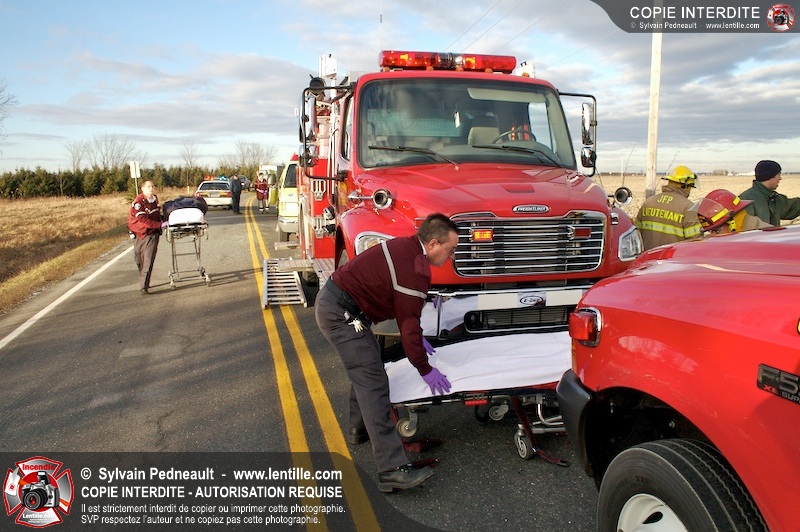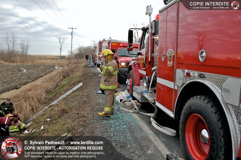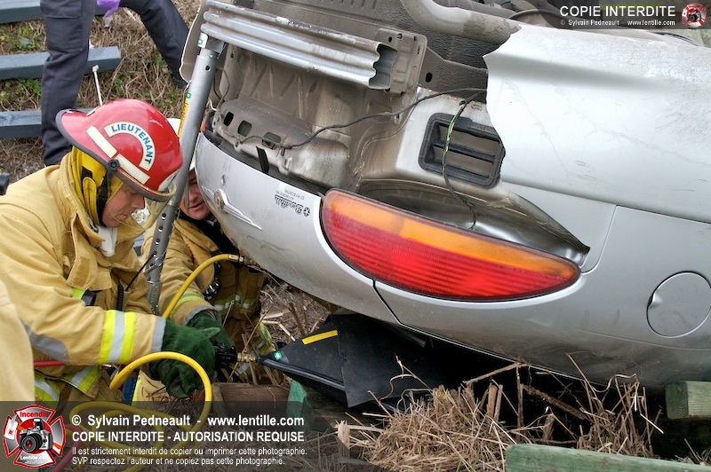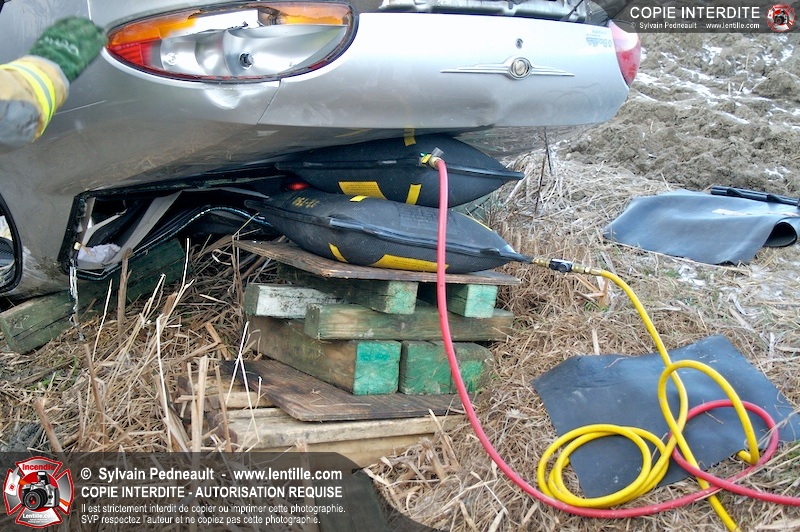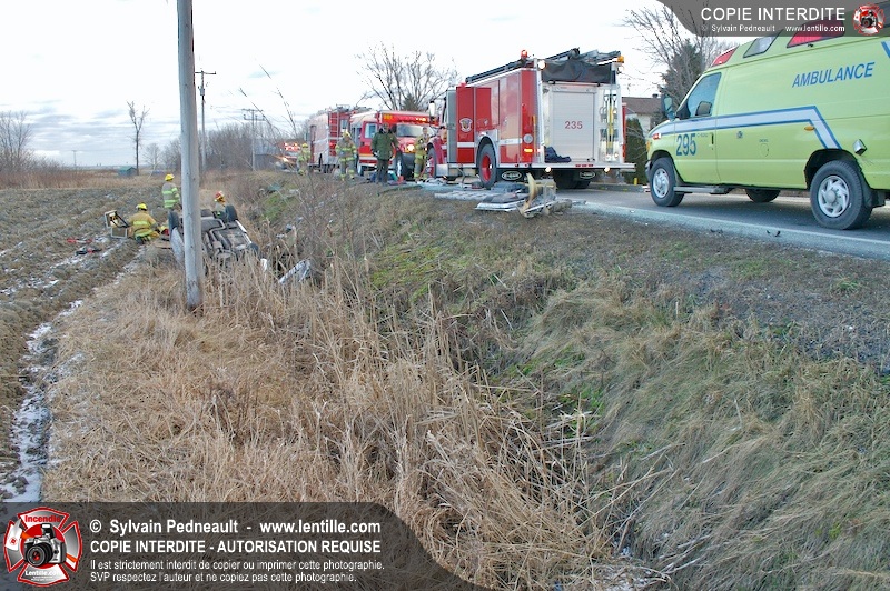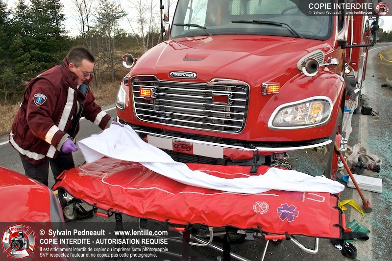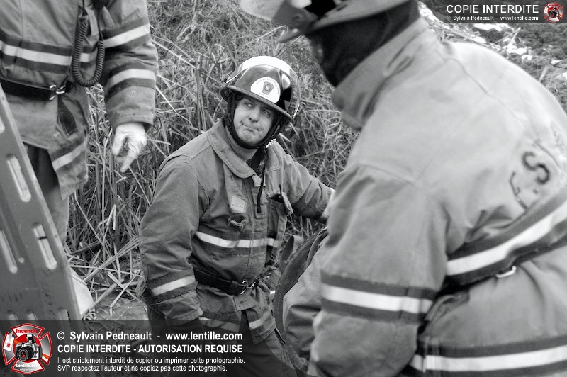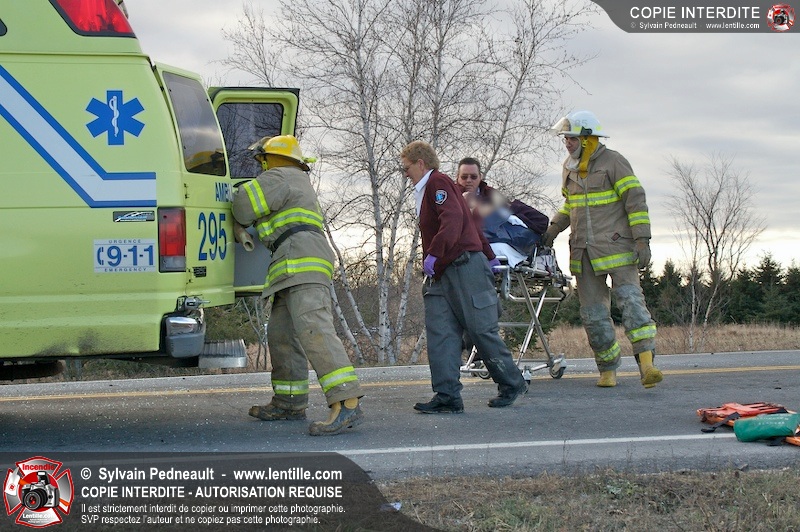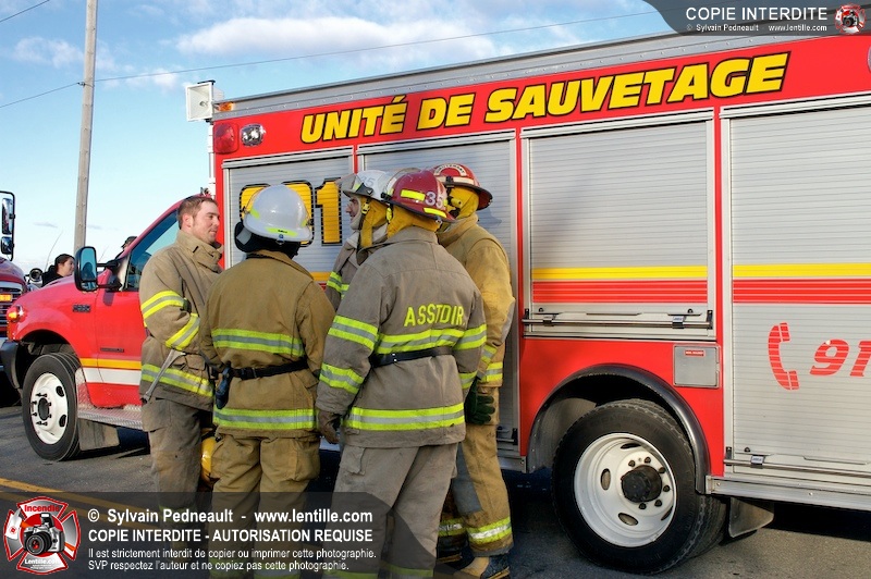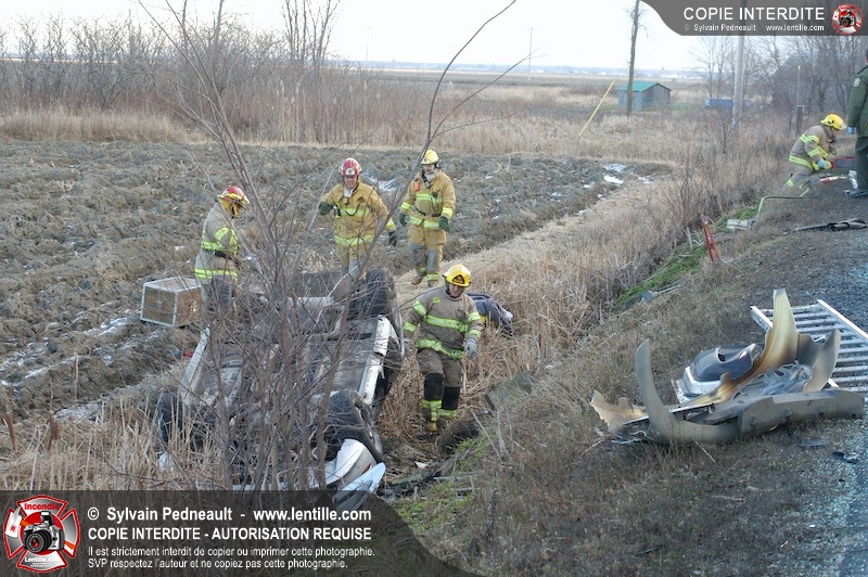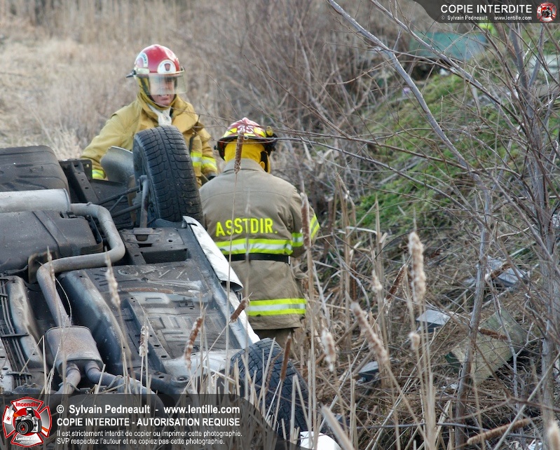 Une complexe opération de désincarcération a eu lieu sur la route 239 près du Rang Ste-Julie à St-Marcel. Puisque le véhicule était renversé sur le toit et qu'il présentait des risques de glissement multi-directionnel pendant les manoeuvres, les pompiers spécialisés du SSI de Saint-Hyacinthe, assistés des pompiers de St-Marcel, ont réalisé la délicate désincarcération de 35 minutes en combinant tout un évantail de techniques et d'équipements.
