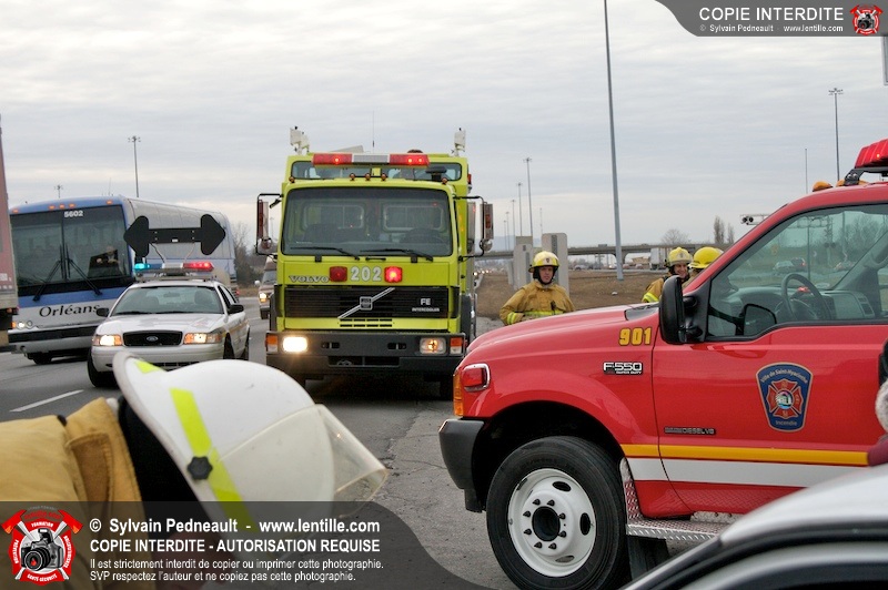 Les pompiers de Saint-Hyacinthe ont procédé ŕ la désincarcération d'une conductrice ŕ la suite d'une collision sur l'autoroute 20 ŕ la hauteur du centre-ville de Saint-Hyacinthe. Deux ambulances ont été requises pour transporter les victimes au centre hospitalier.