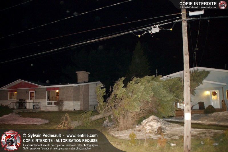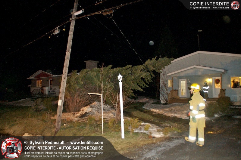 Les pompiers de Saint-Hyacinthe ont été appelés dans le secteur de Douville après qu'un arbre ait été déraciné et soit tombé sur des fils électriques.