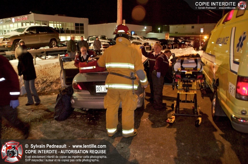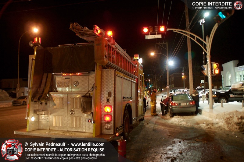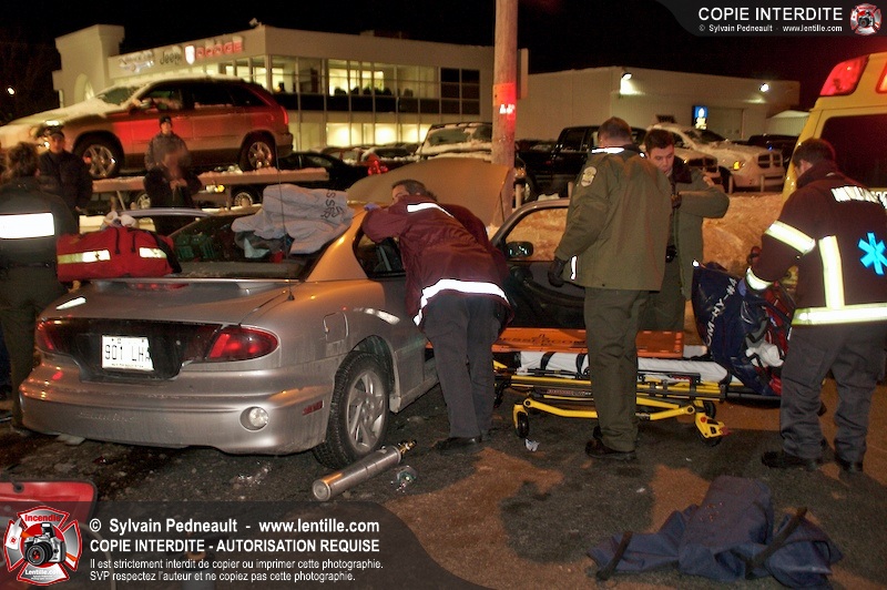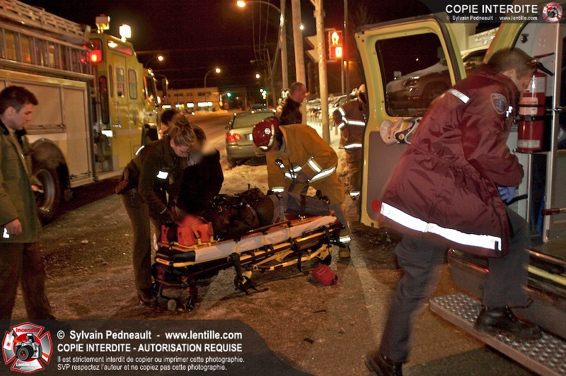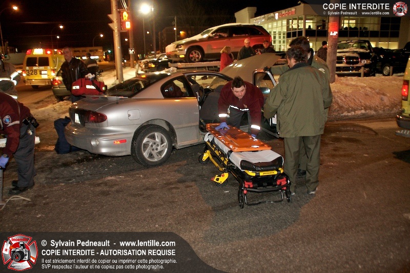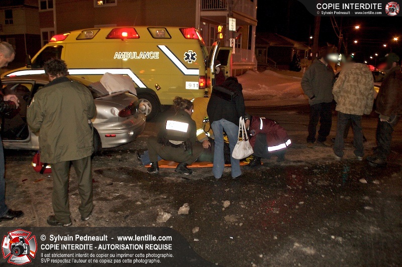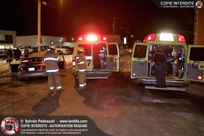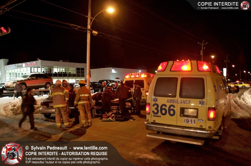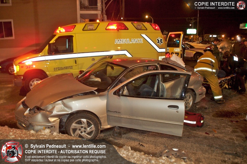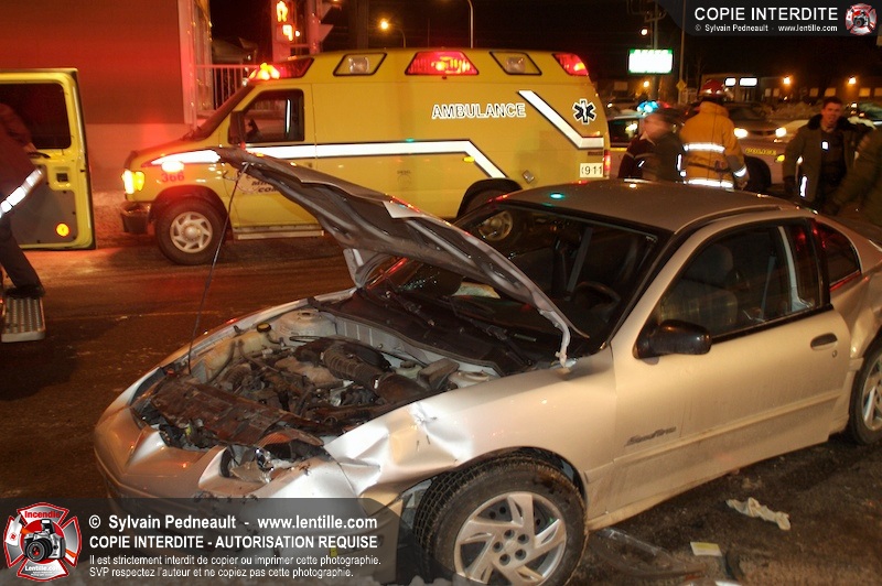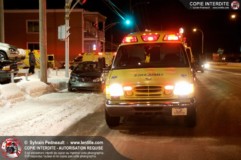 Un accident est survenu à l'intersection du boulevard Choquette et de la rue Sicotte. Trois ambulances ont été requises pour transporter les passagers des véhicules impliqués.