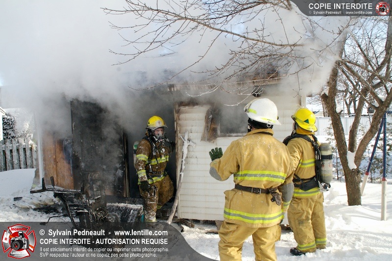 Le Service de sécurité incendie de la Ville de Saint-Hyacinthe a été dépêché sur la rue Villeneuve pour un feu de cabanon.