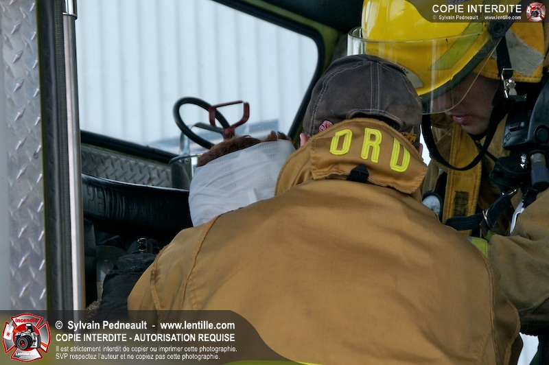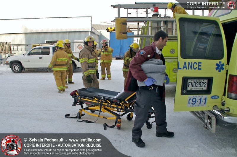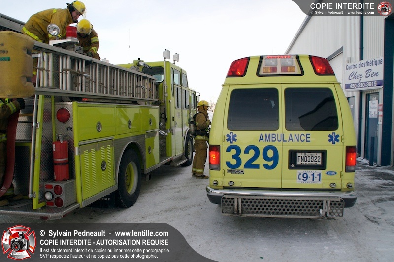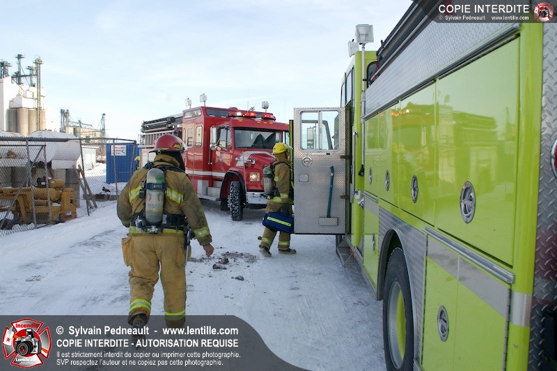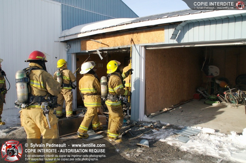 L'intervention d'un incendie de cabanon à peine terminée, un appel entre pour un feu de garage commercial dans le secteur Ste-Rosalie à Saint-Hyacinthe. Les pompiers affectent rapidement plusieurs unités. Le premier compte-rendu fait état d'un incendie sous contrôle. Un 10-34 est demandé pour une personne brûlée au visage, tandis que les pompiers lui prodigue les premiers soins. La Sûreté du Québec a ouvert une enquête et procédé à des arrestations.