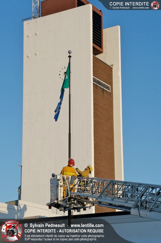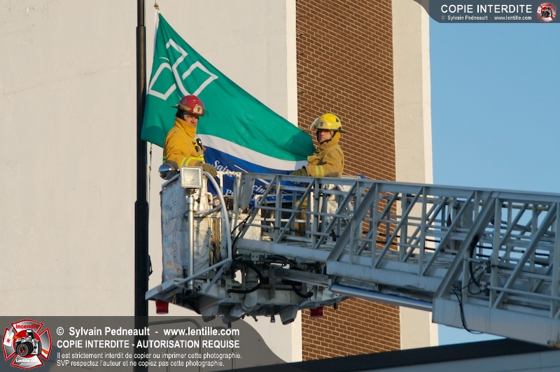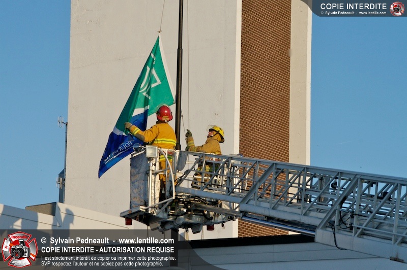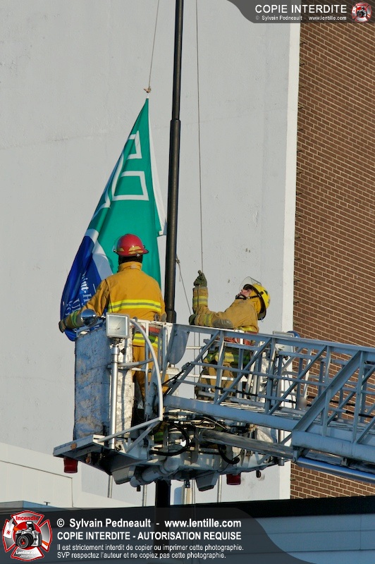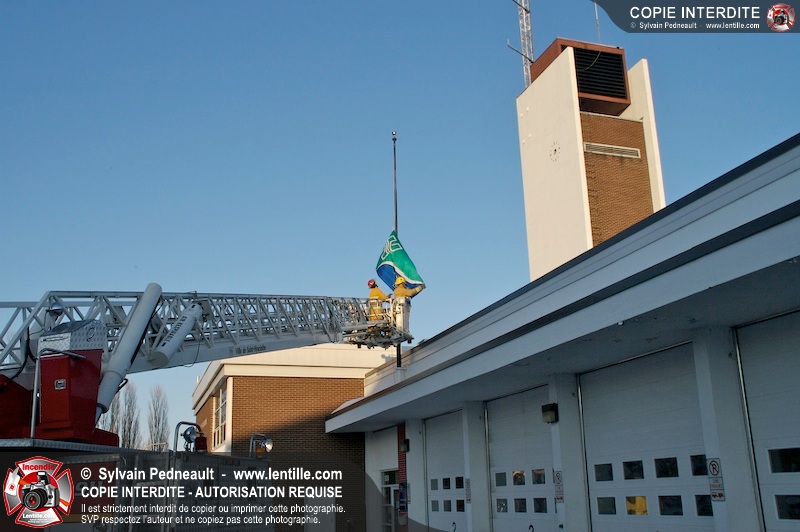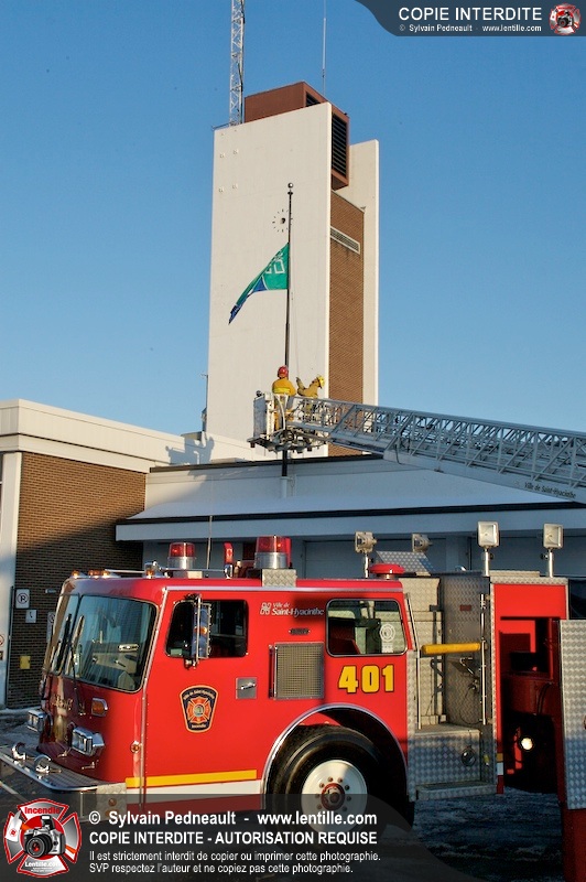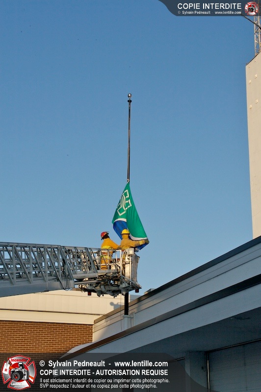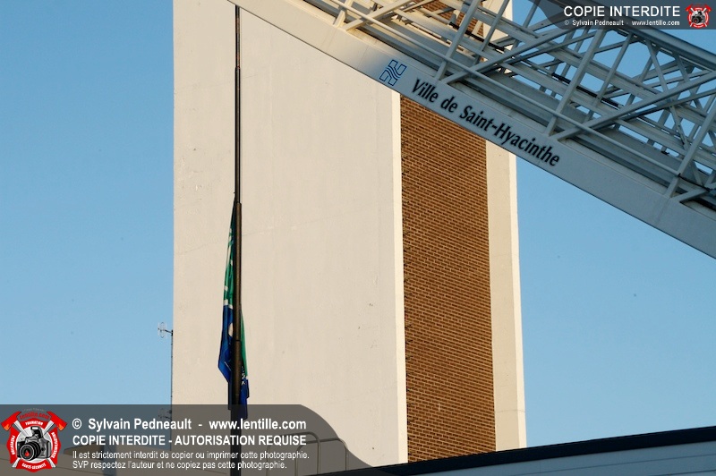 Les pompiers du Service de sécurité incendie de la Ville de Saint-Hyacinthe tiennent à transmettre leurs sympathies à la famille, aux proches, aux confrères et consoeurs du pompier Mathieu Émond, mort en devoir le 4 mars 2008 à Varennes. Le drapeau de la Ville installé à la caserne 1 de Saint-Hyacinthe a donc été mis en berne.