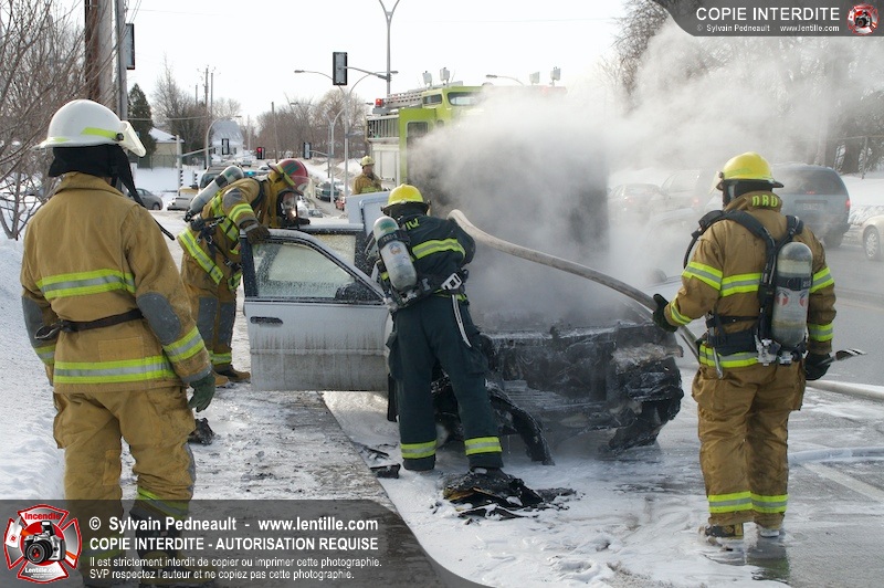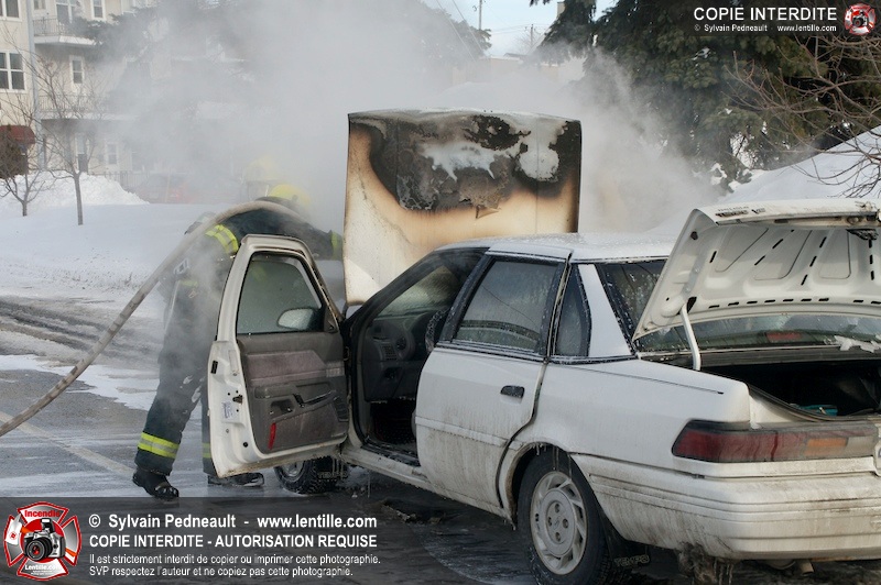 Les pompiers de Saint-Hyacinthe sont intervenus sur la rue Ste-Anne pour un incendie de véhicule.