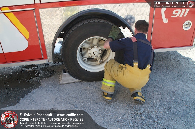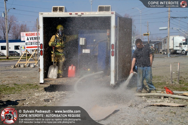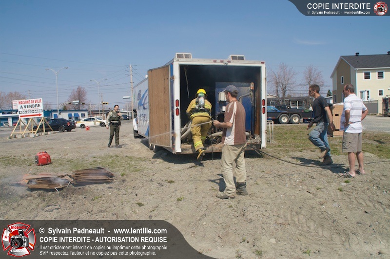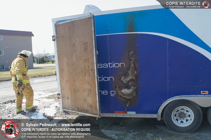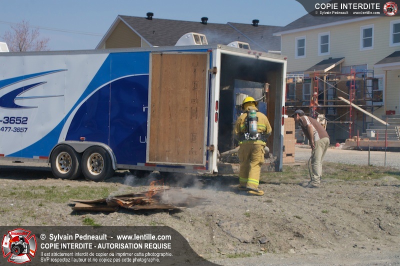 Les 10-35 ont fait appel aux pompiers de Saint-Hyacinthe pour un incendie dans une remorque de construction.