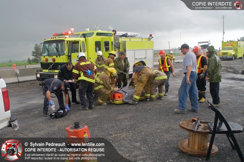 L'unité de sauvetage en espace clos du Service de sécurité incendie de la Ville de Saint-Hyacinthe est intervenue sur un chantier de construction au milieu de l'autoroute 20 à la hauteur de La Présentation (sortie 123) alors qu'un ouvrier a fait une chute. L'homme a été transporté au Centre hospitalier Honoré-Mercier par les paramédics de Saint-Hyacinthe.